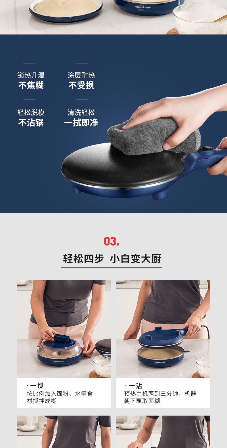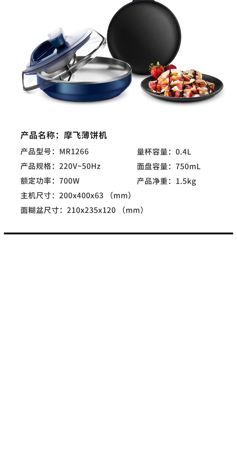 摩飞电器(Morphyrichards) 电饼铛家用烙薄饼机煎饼烙饼锅早餐机MR1266 出厂标配