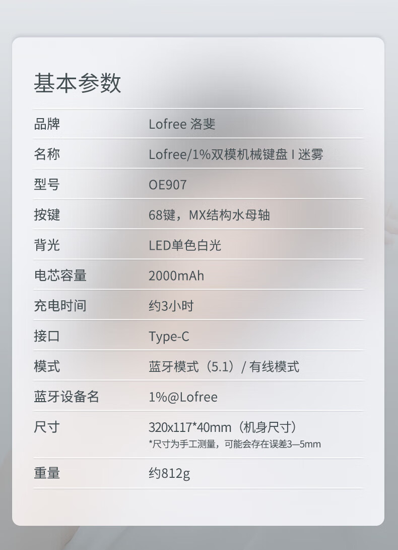 洛斐LOFREE OE907 1%双模机械键盘 迷雾