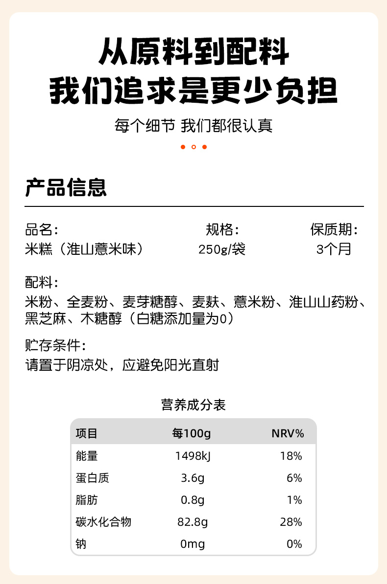 薏米糕无添糖全麦淮山薏米糕低脂糕点特产零食休闲小吃食品早餐