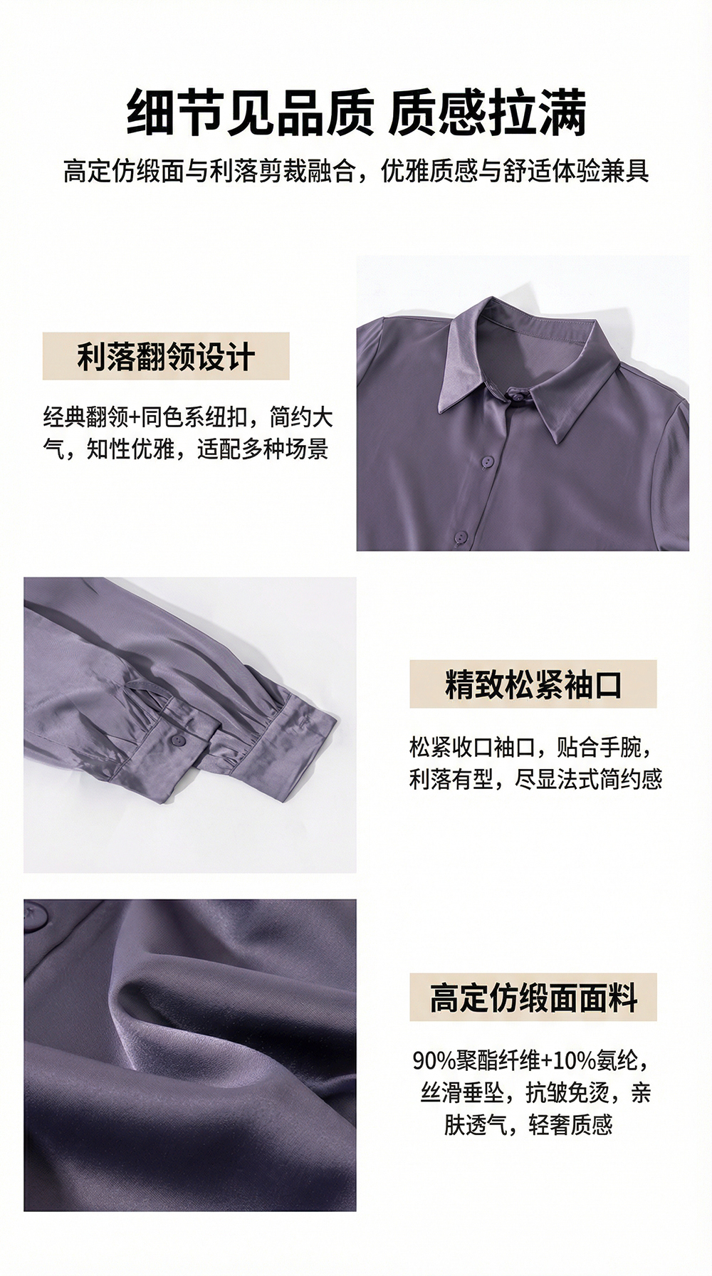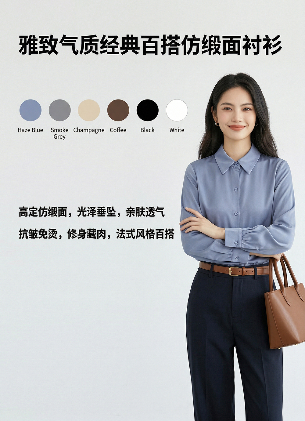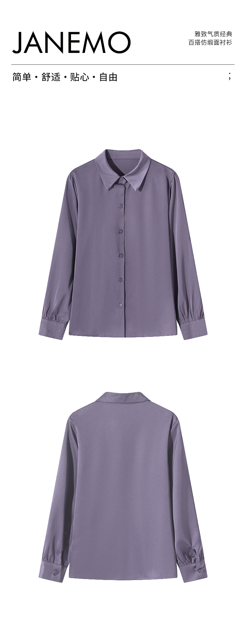 茧墨 雅致气质经典百搭仿缎面衬衫 法式时尚复古休闲通勤优雅知性减龄衬衣