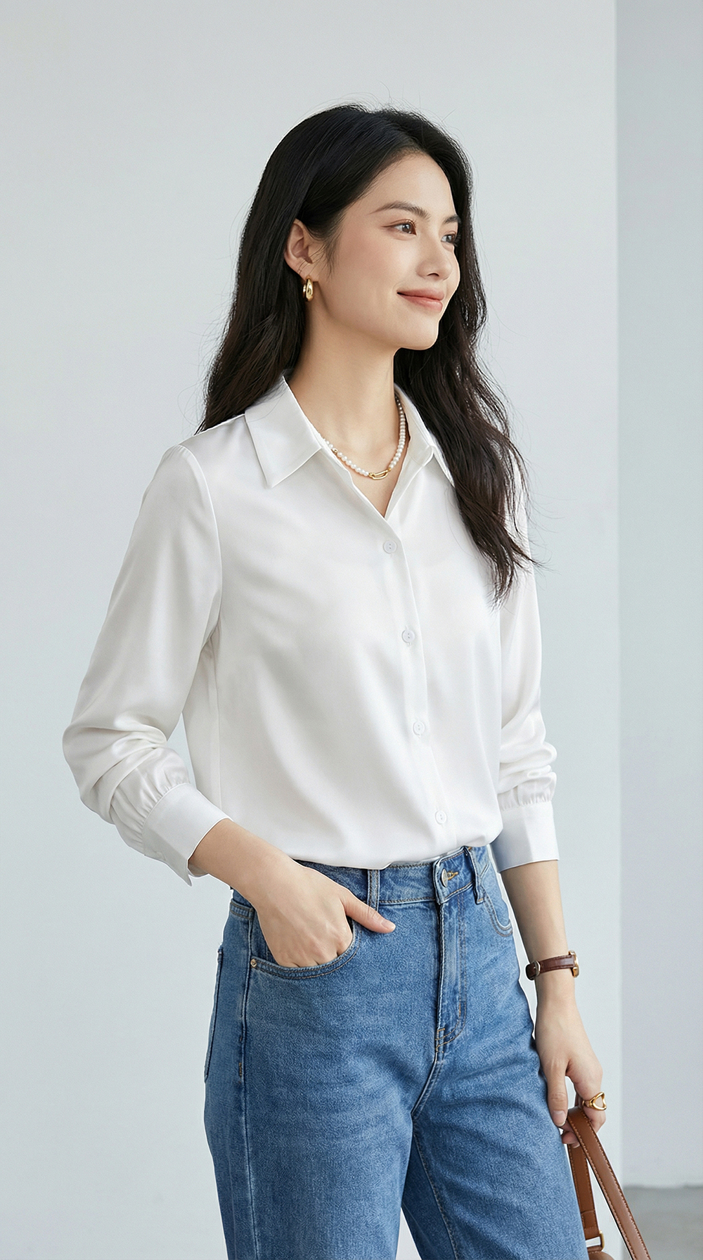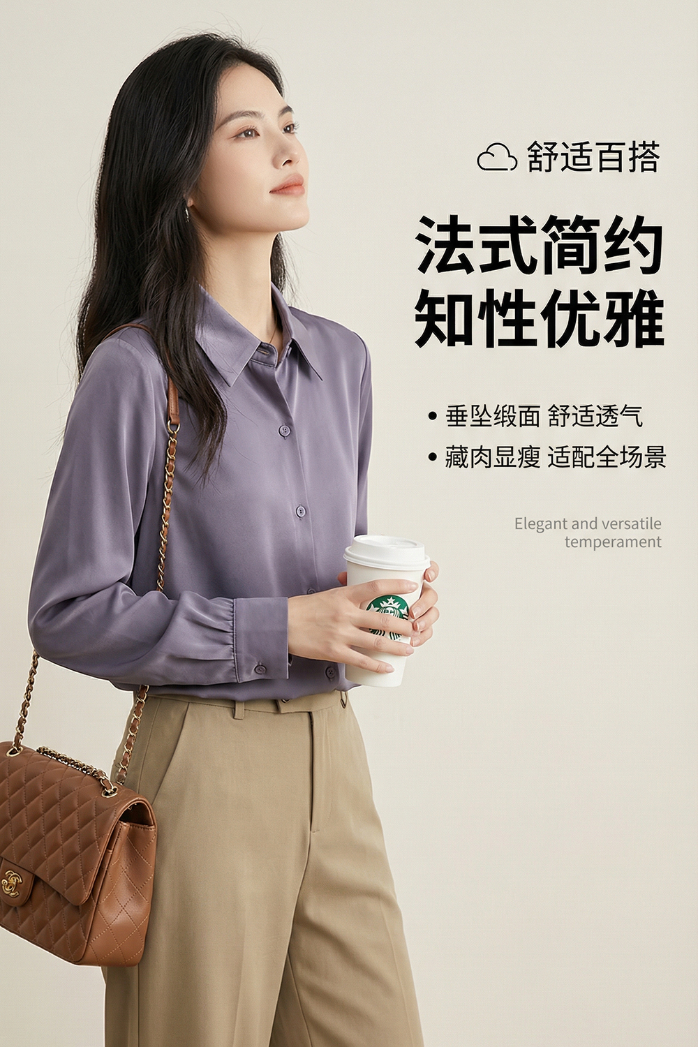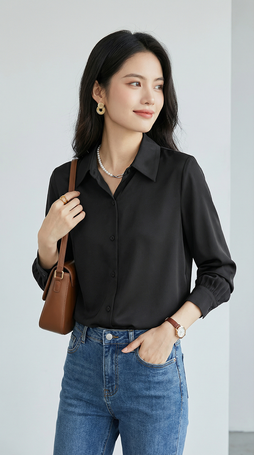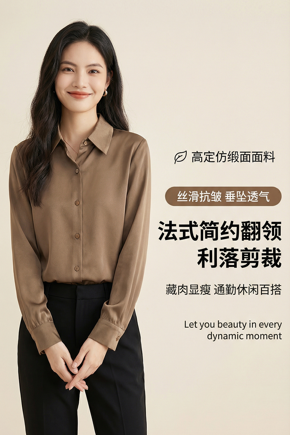 茧墨 雅致气质经典百搭仿缎面衬衫 法式时尚复古休闲通勤优雅知性减龄衬衣