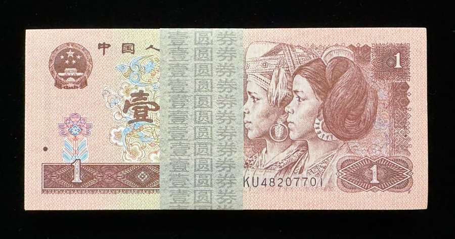 【灰腰条】第四套96版1元整刀100张连号(赠保护盒)