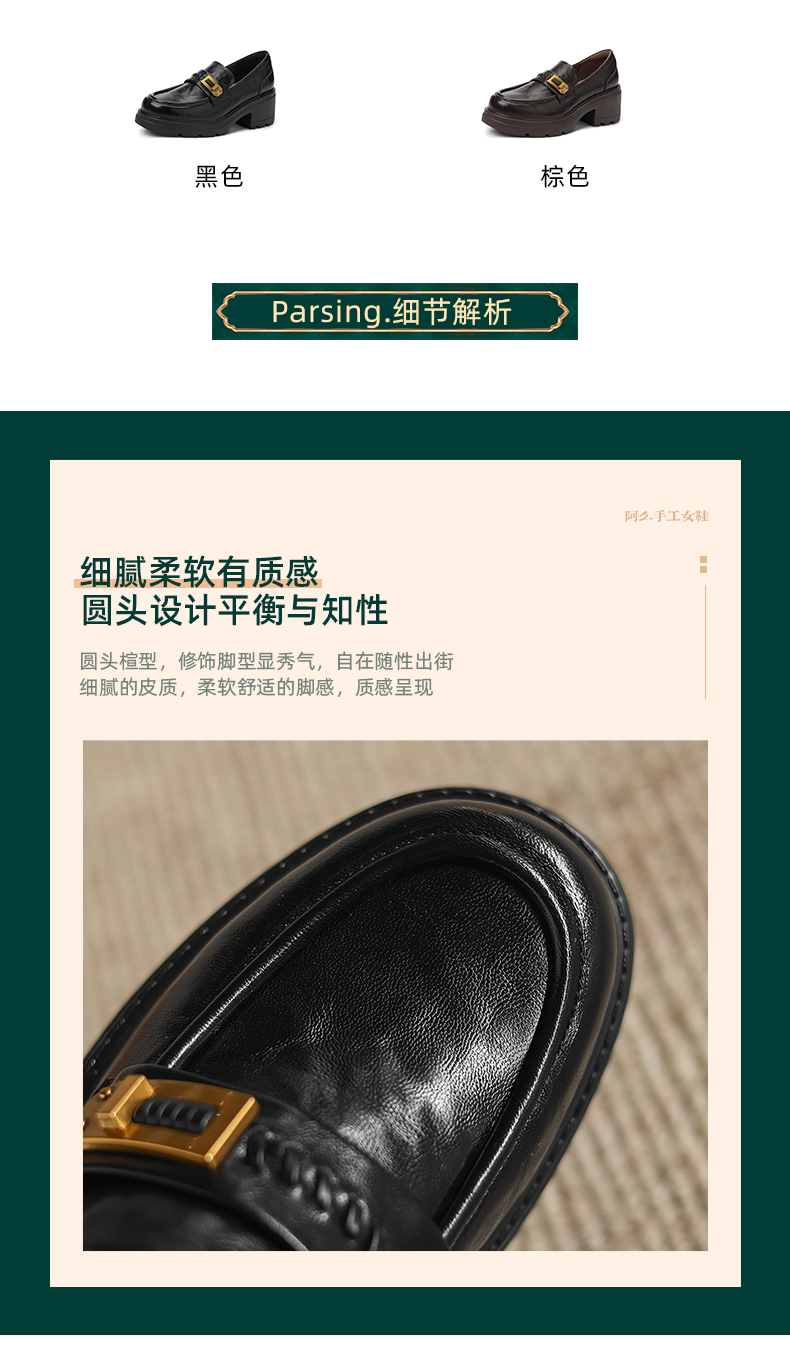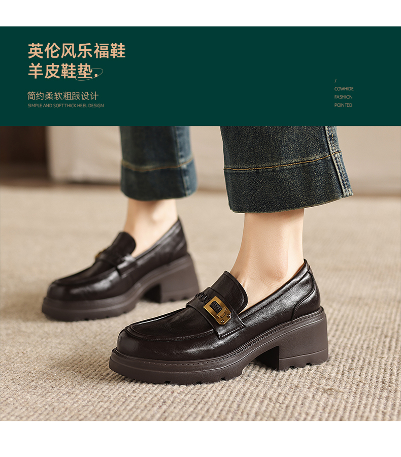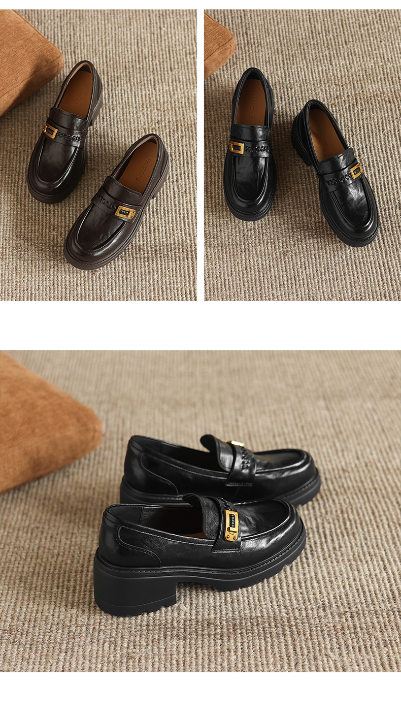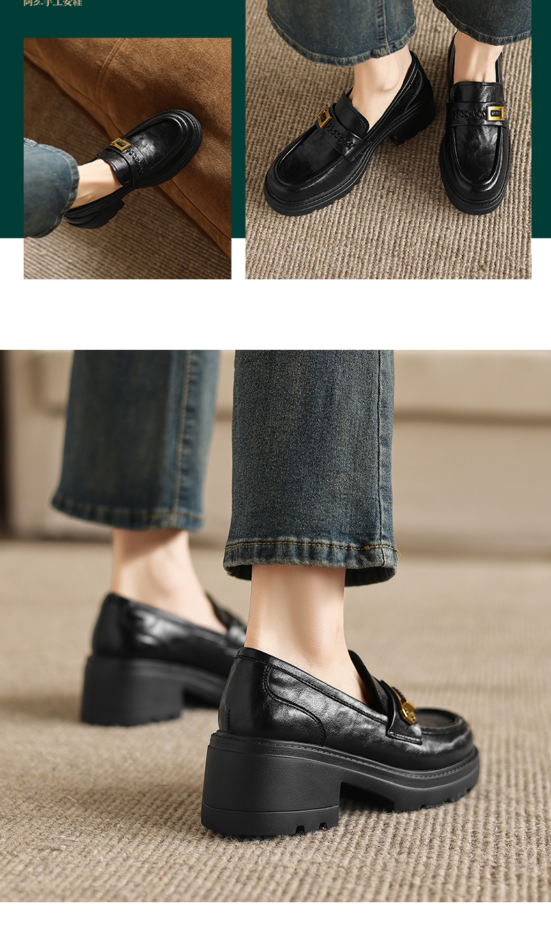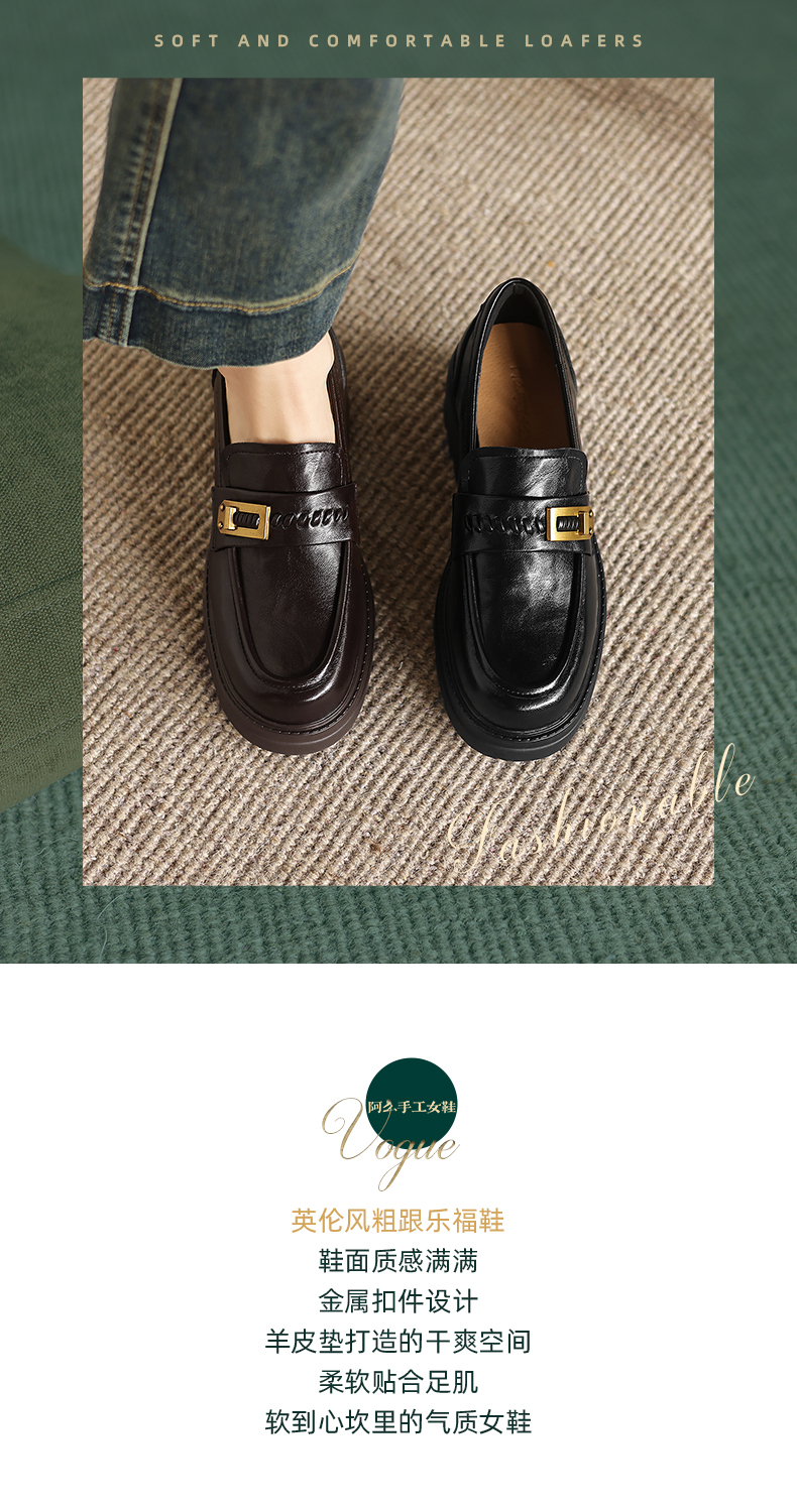 阿么手工女鞋百搭休闲一脚蹬真皮乐福鞋新款复古厚底小皮鞋6.5CM