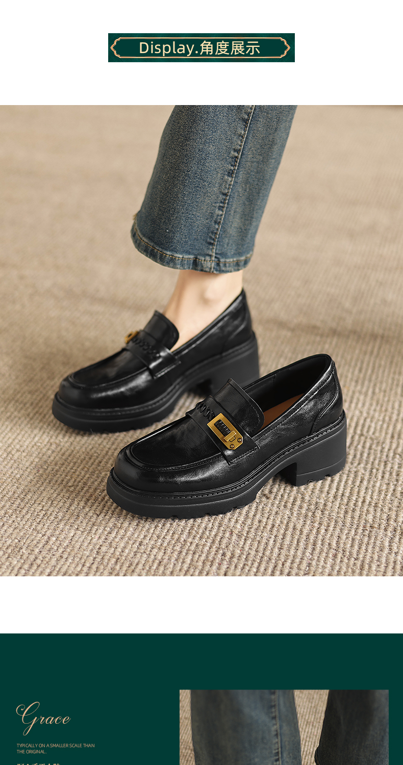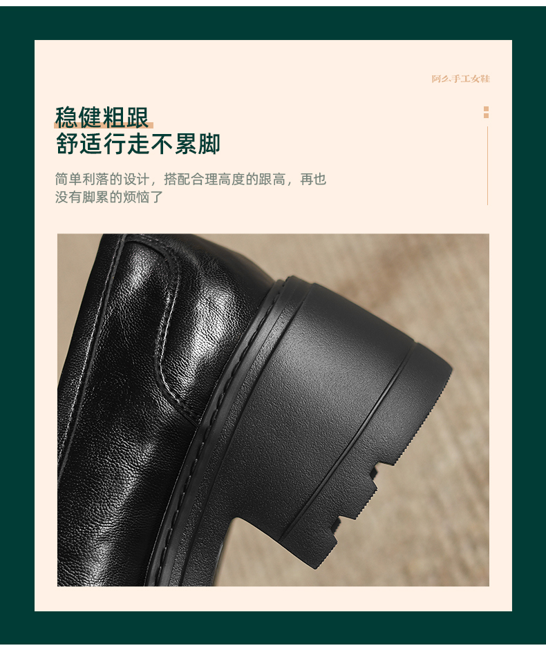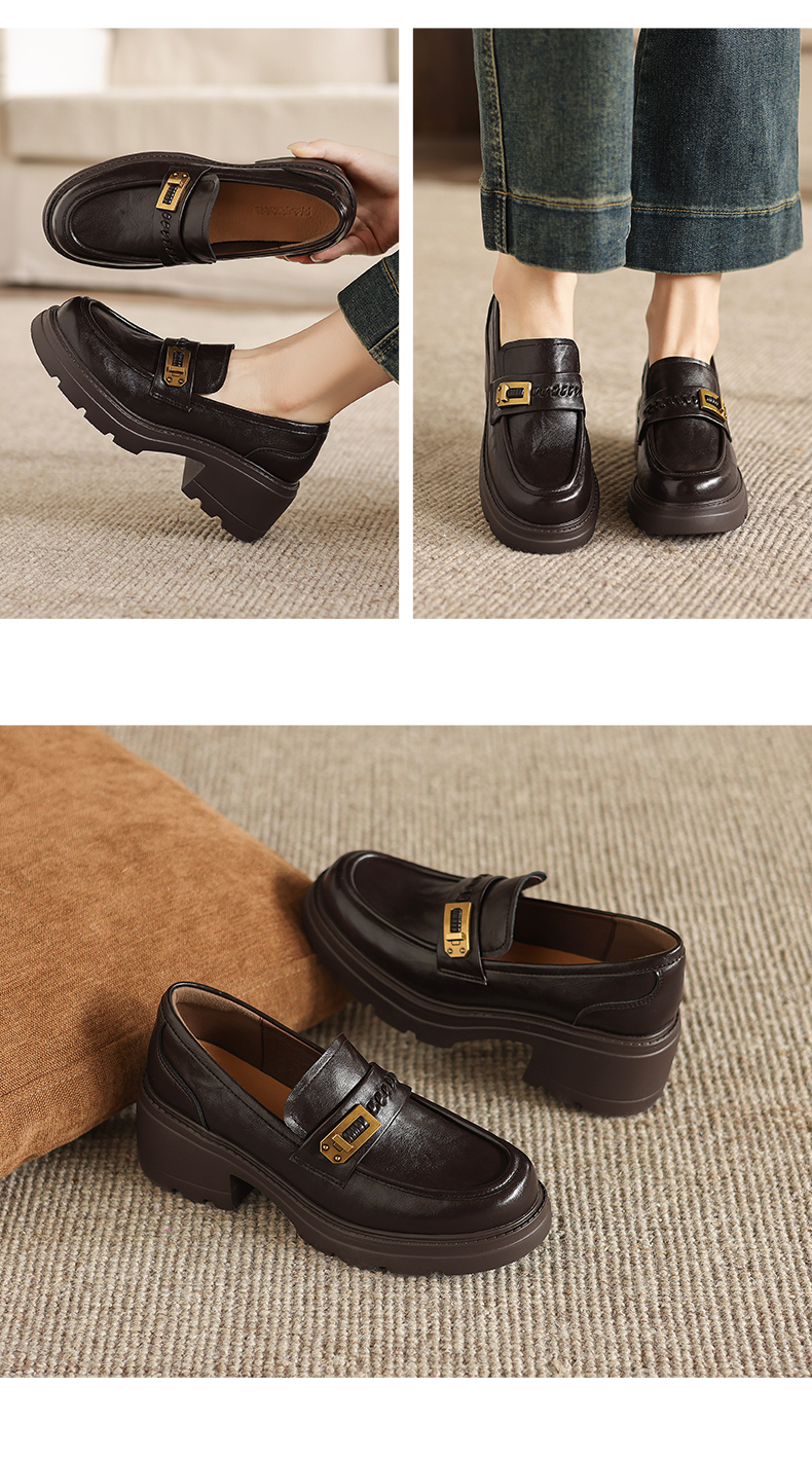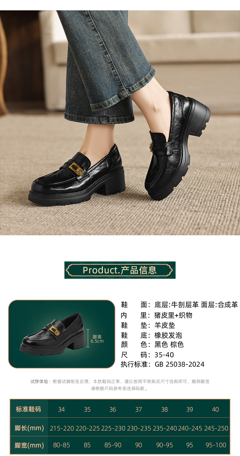 阿么手工女鞋百搭休闲一脚蹬真皮乐福鞋新款复古厚底小皮鞋6.5CM