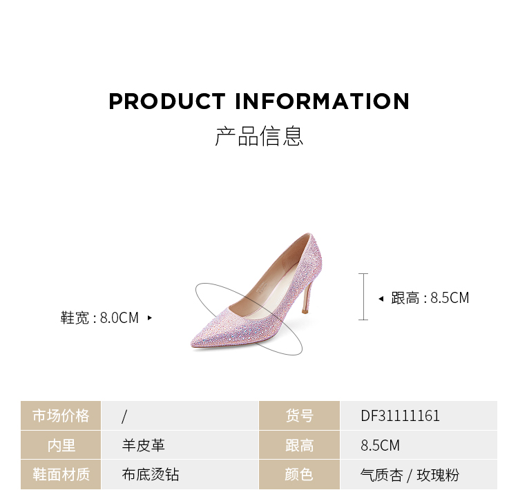 D:FUSE/迪芙斯2023春季新品尖头闪钻水钻高跟鞋DF31111161