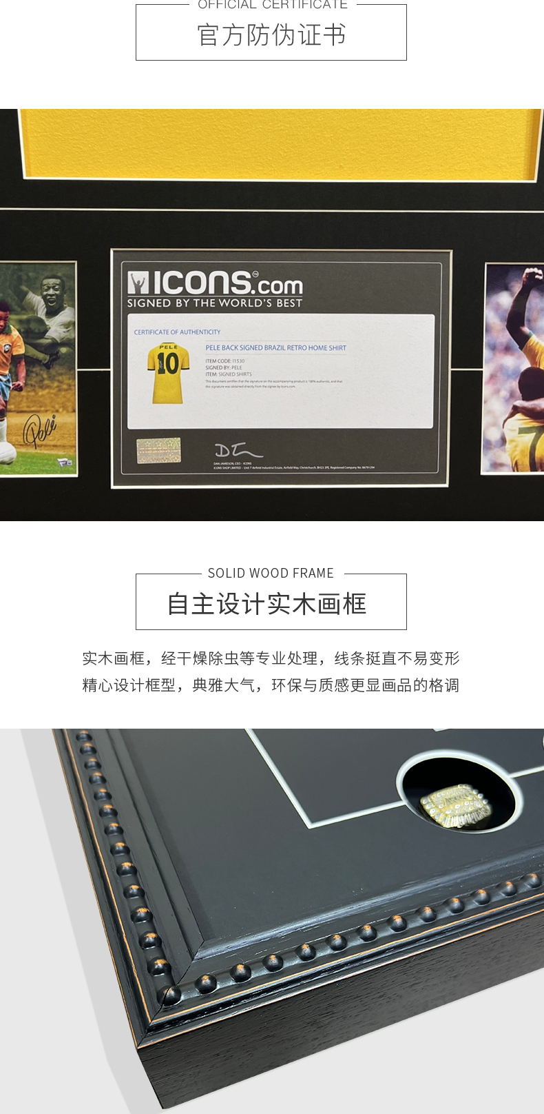 收藏系列 贝利 巴西队10号黄色 亲笔签名球衣 ICONS