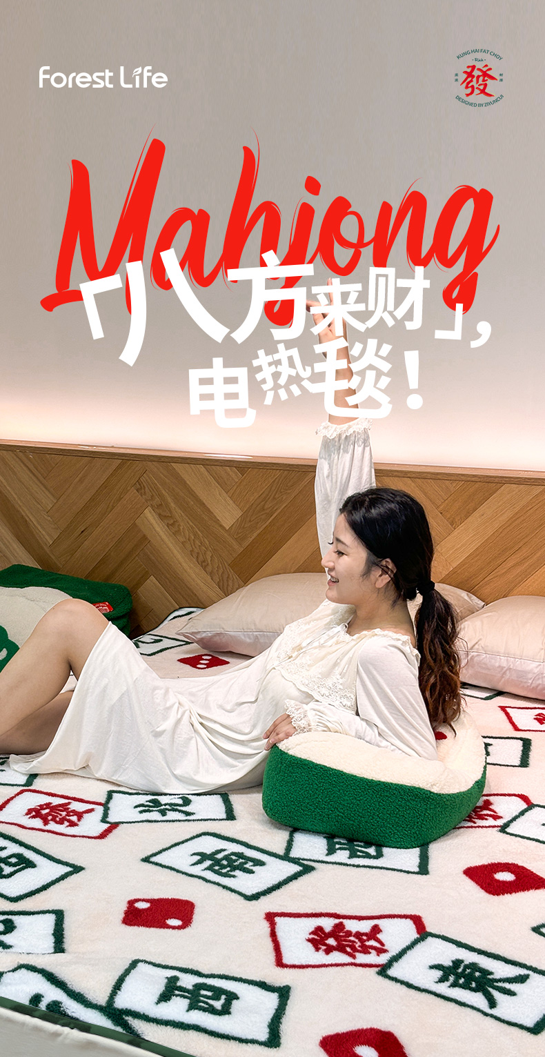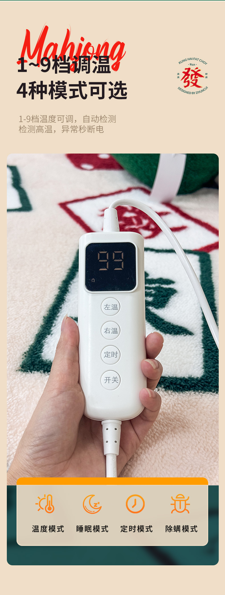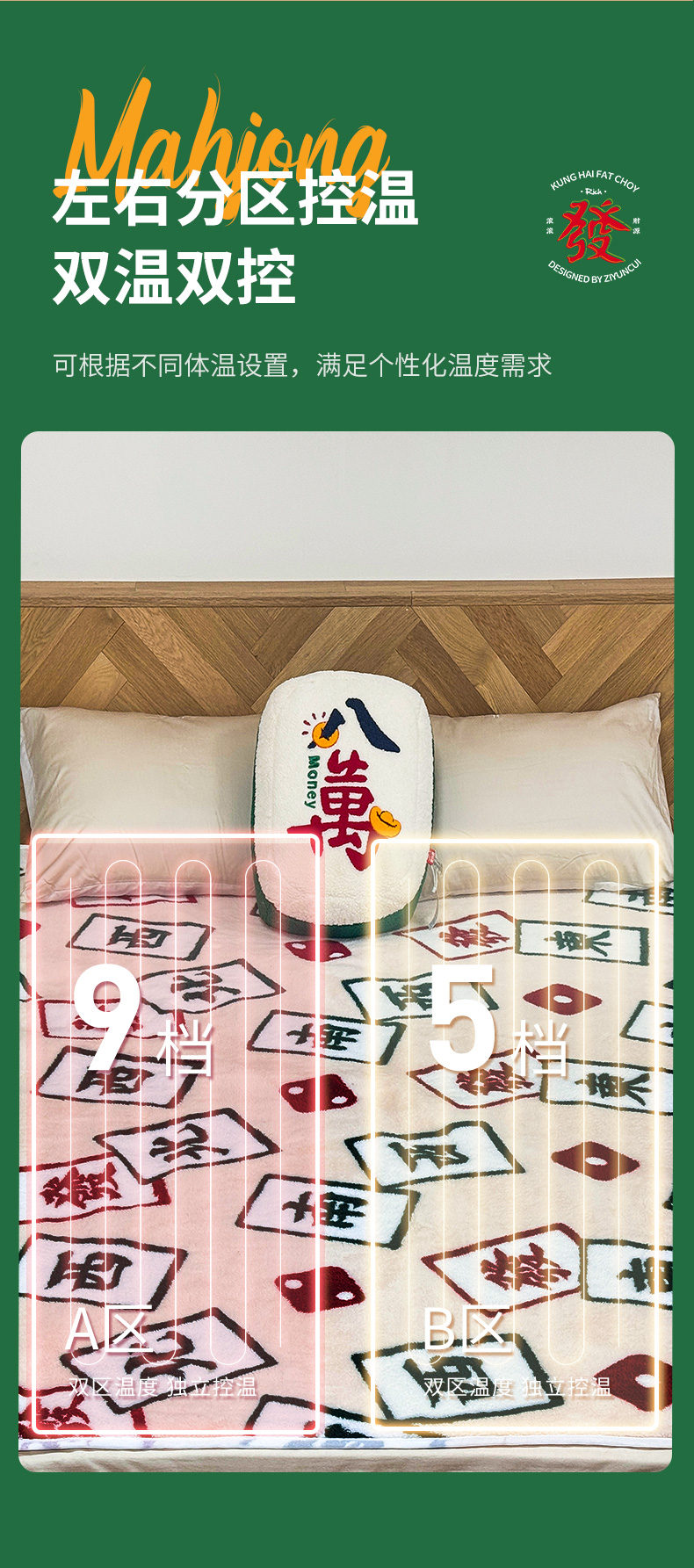 【恭喜發财电热毯】forestlife八方来财电热毯 柔软雪花绒 左右分区控温 高温除螨 9档调温 12h自动断电 可拆卸水洗 机洗/手洗都可