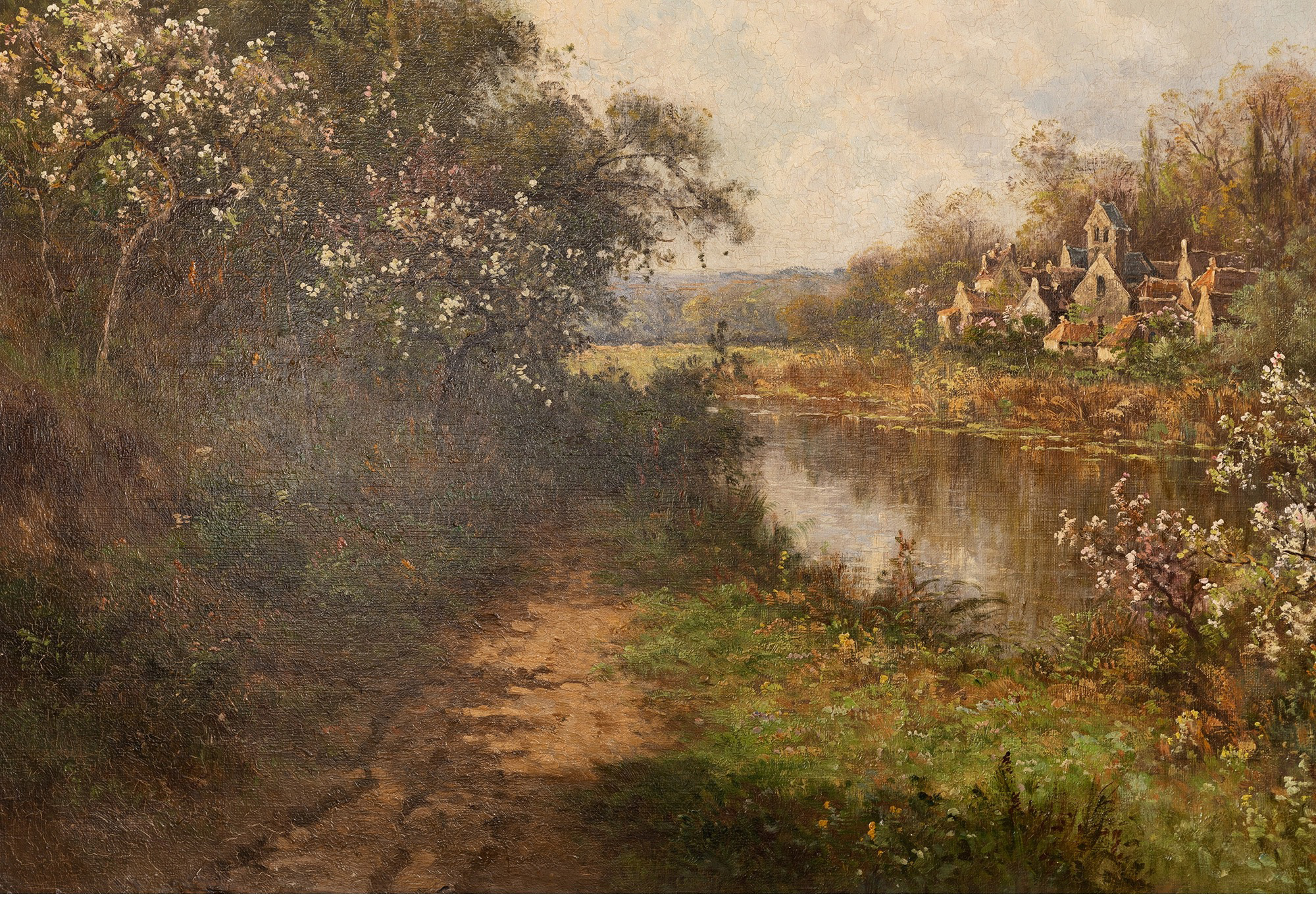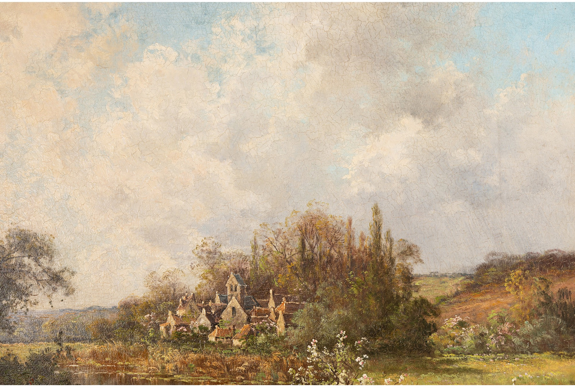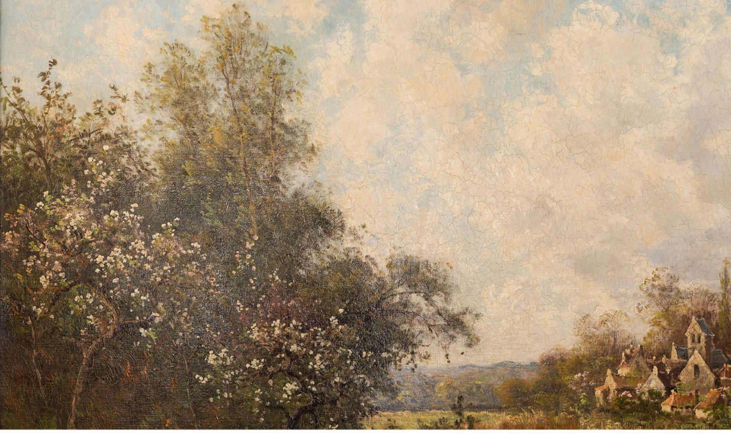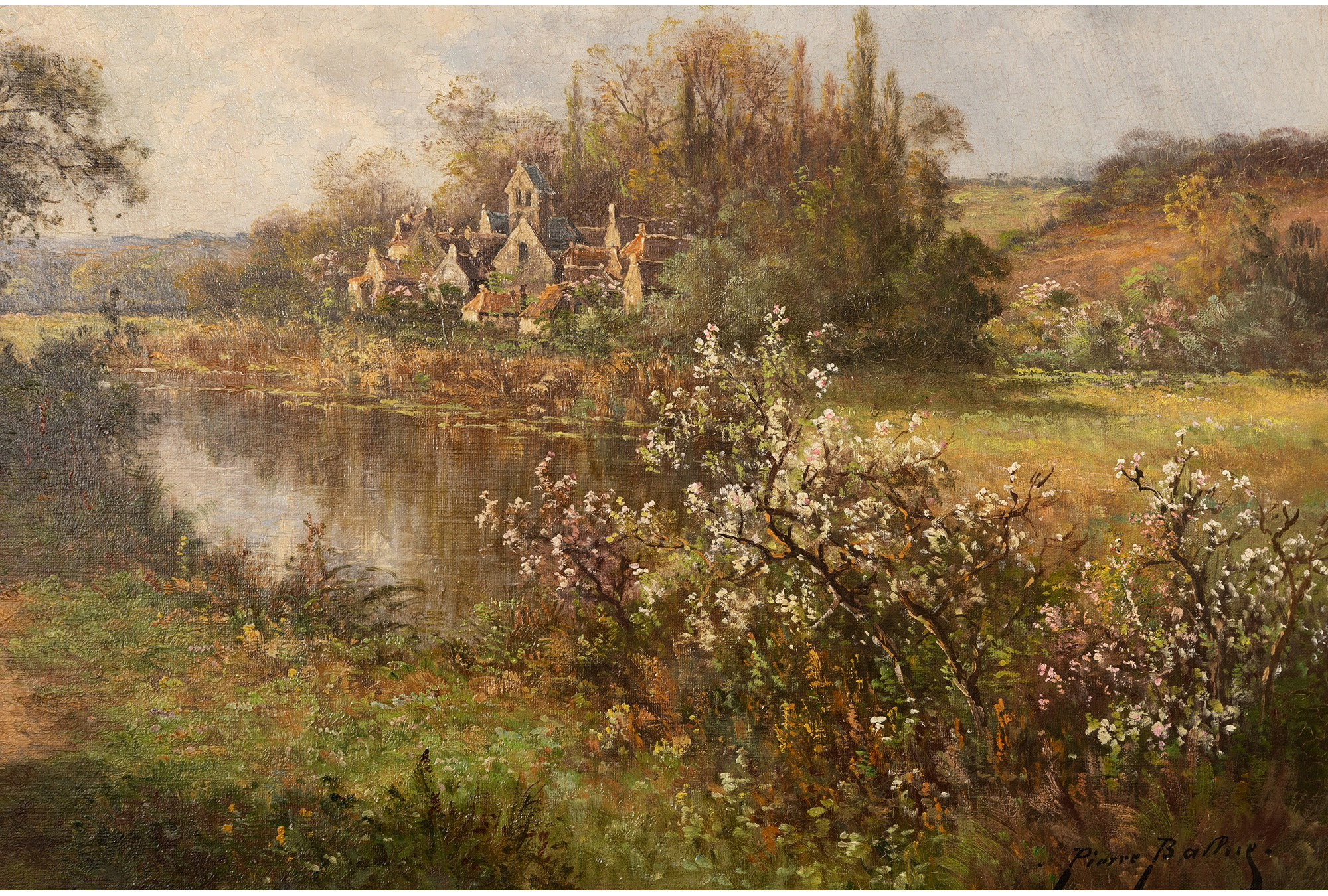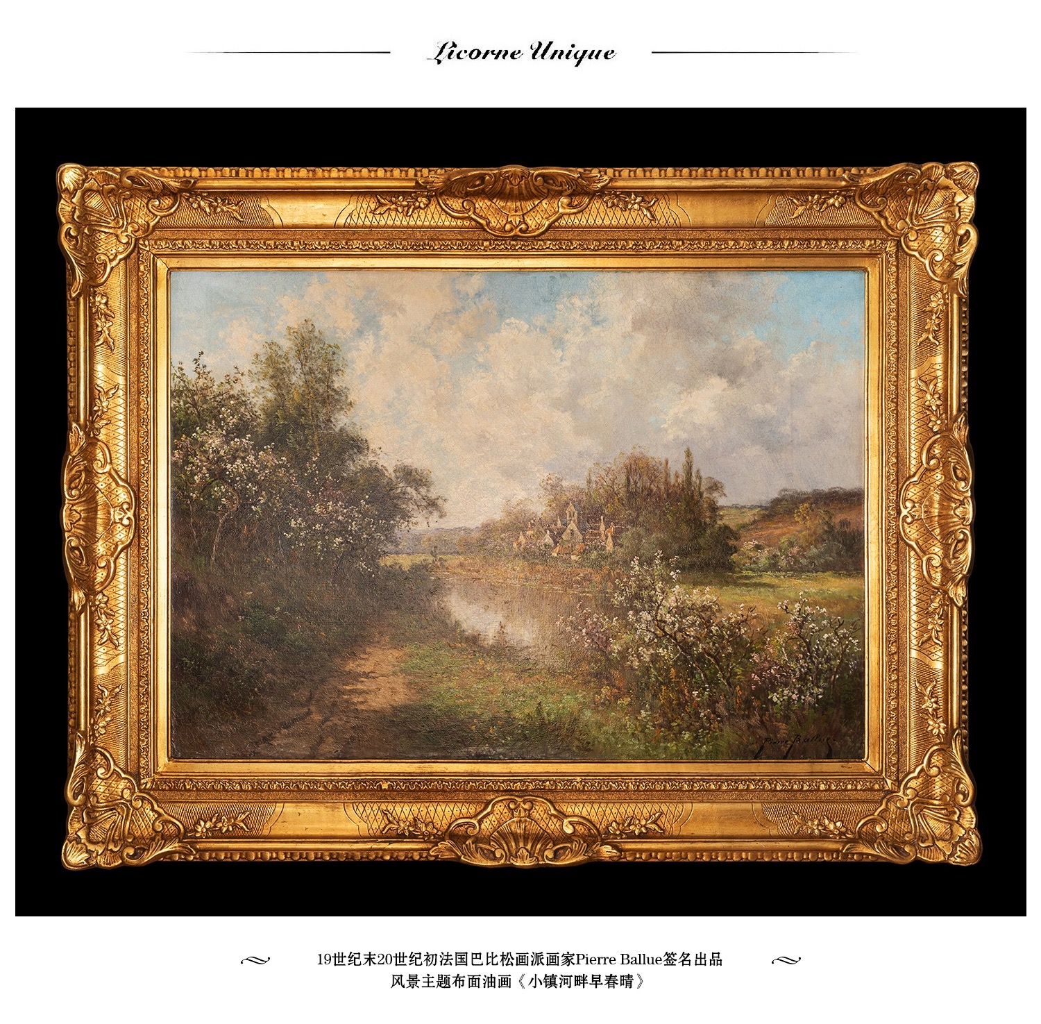 独角鹿西洋古董法国巴比松画派Pierre Ballue签名风景布面油画