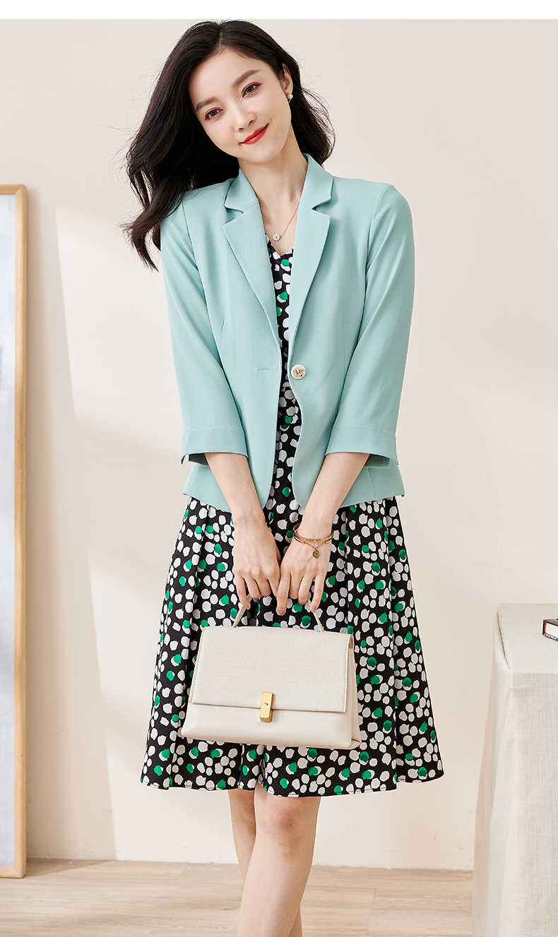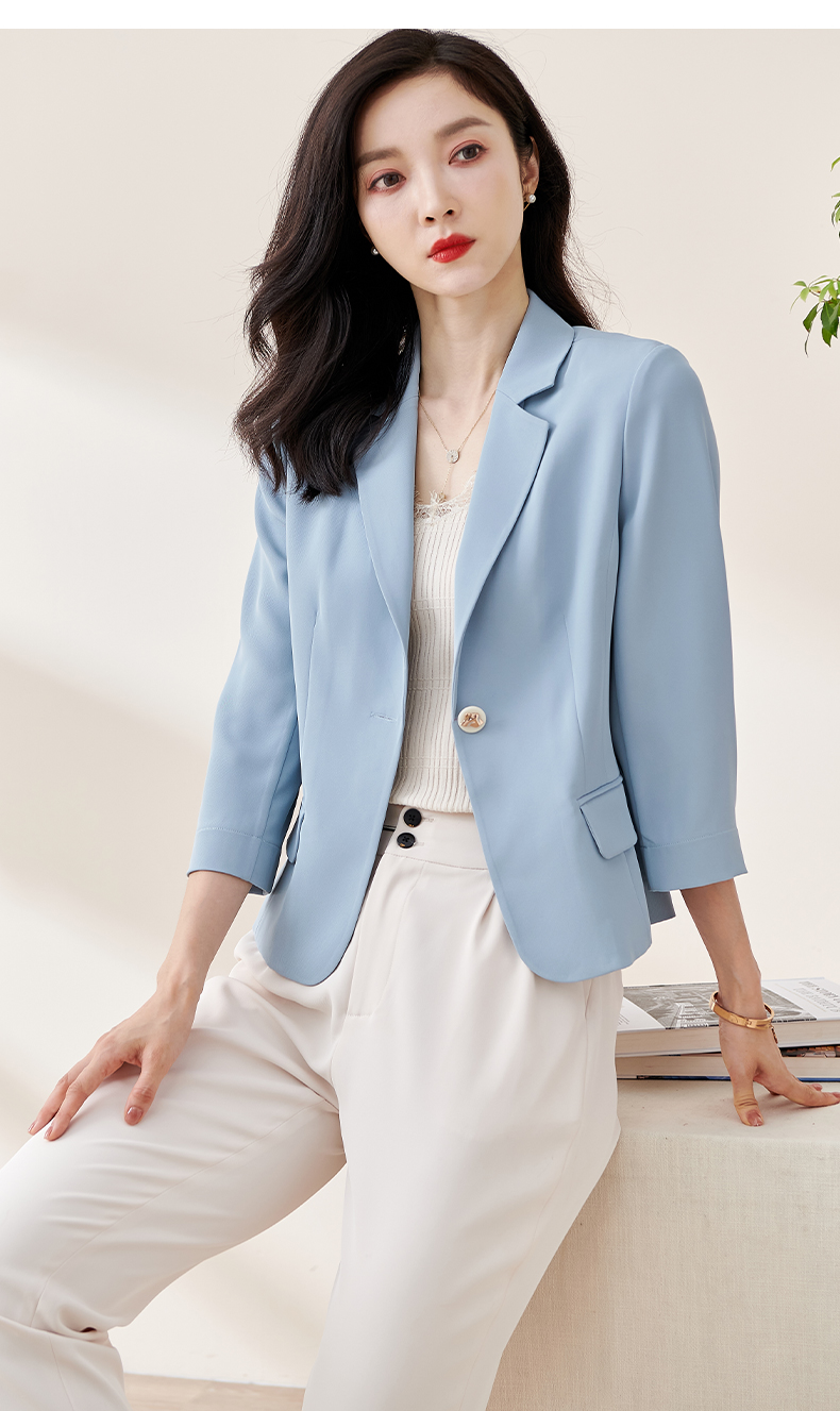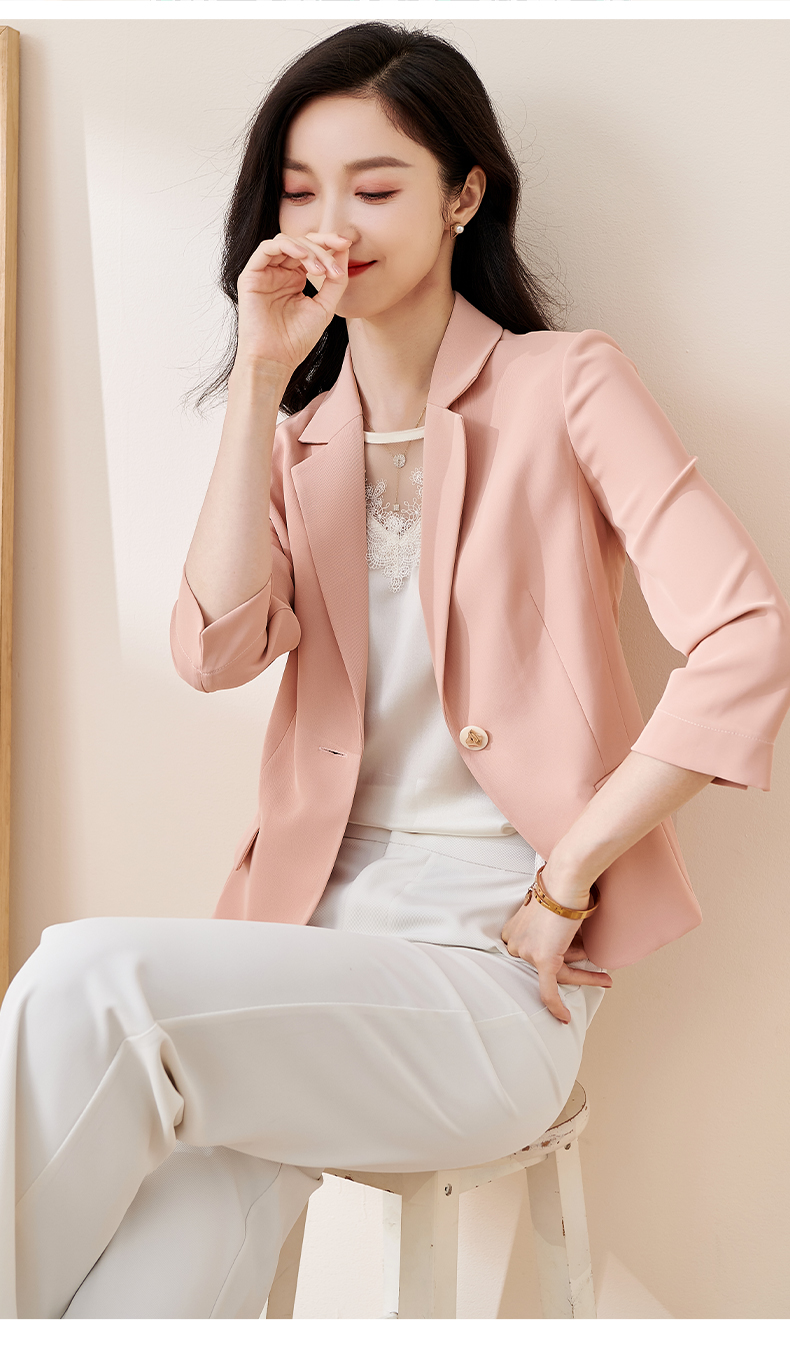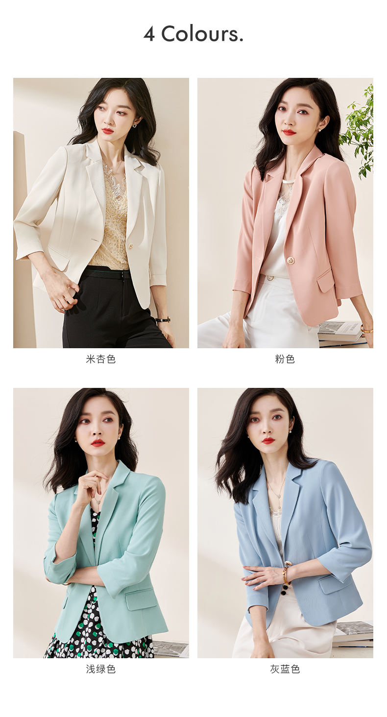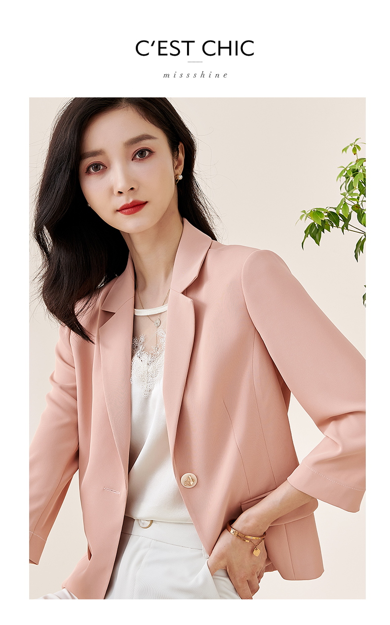 米思阳2025夏季时尚通勤OL修身小西装薄款纯色七分袖外套1499