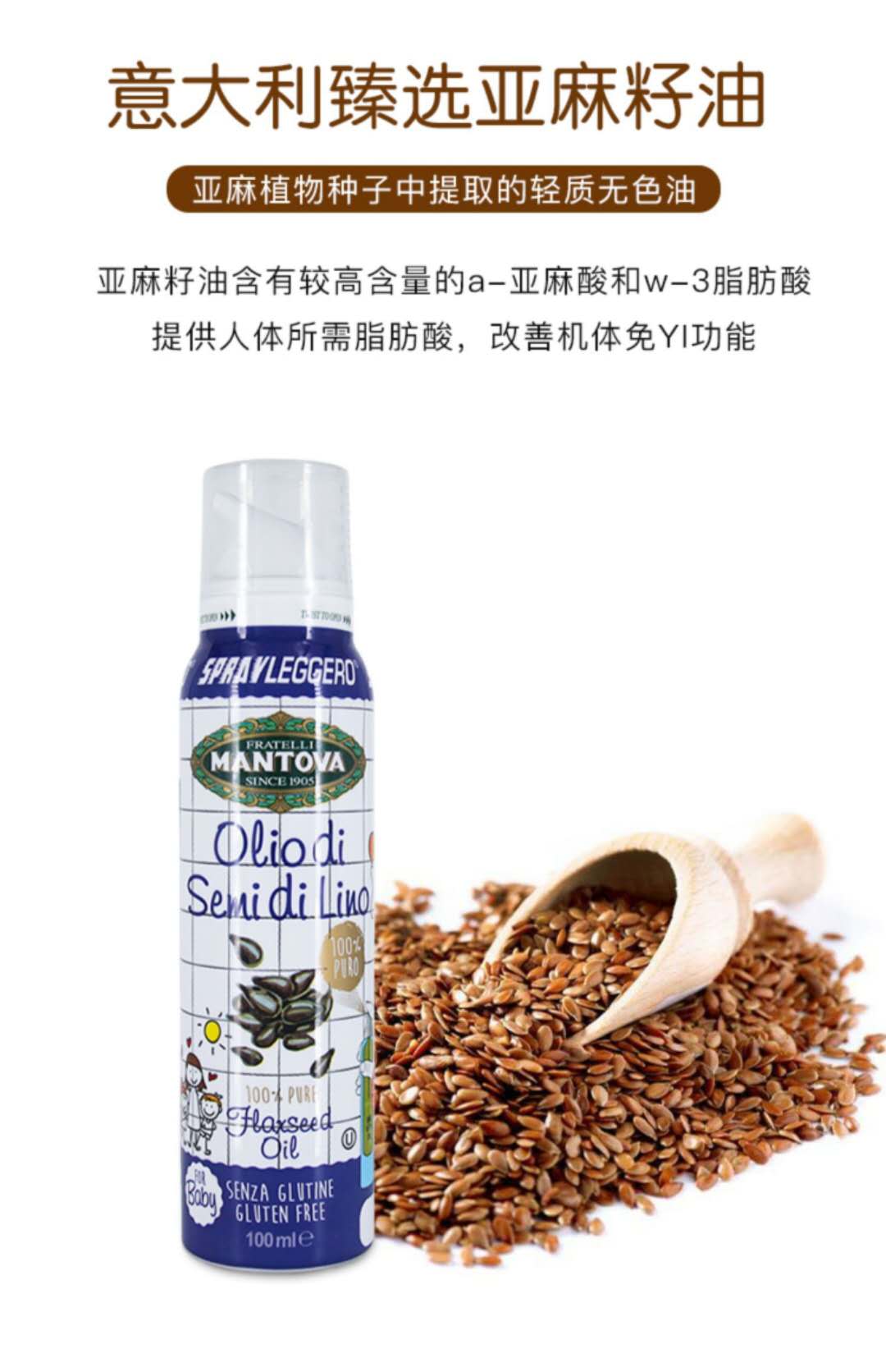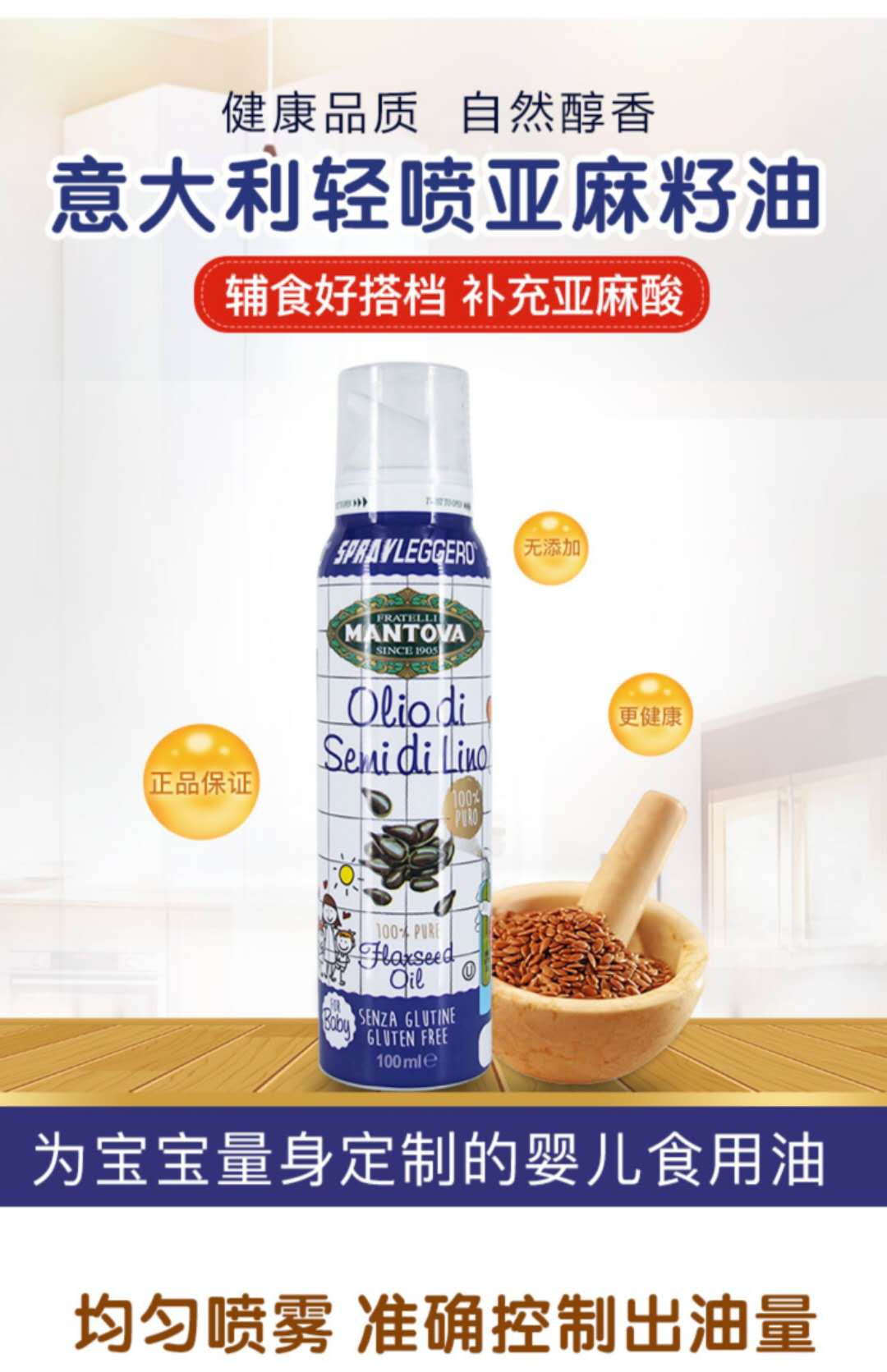 意大利 MANTOVA宝宝轻喷辅食油 亚麻籽油 100ML
