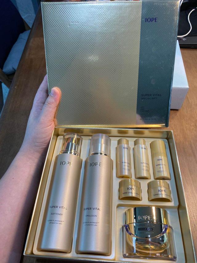 IOPE Super Vital特殊礼品套装3个TRAVEL EXCLUSIVE总抗衰老系列使用含有抗氧化能量的“ TRAVEL EXCLUSIVE”超级类黄酮,为疲倦的皮肤提供活力和营养IOPE超级生命柔软剂|改善皱纹的功能性化妆品| 150 ml.IOPE超级抗皱功能性化妆品| 150 ml.IOPE超级抗皱霜|亮白/减少皱纹功能性化妆品| 50 ml.IOPE超级抗皱柔软剂(用于礼品)|减少皱纹的功能性化妆品| -18ml.IOPE超级抗皱 乳液|改善皱纹的功能性化妆品| -18 ml.IOPE超级精华液|美白/改善皱纹的功能性化妆品| 10毫升IOPE超级眼霜(用于呈现)|亮白/改善皱纹的功能性化妆品 | 5毫升IOPE超级生命精华霜(用于展示)|美白/改善皱纹的功能性化妆品|:5毫升植物成分卷柏类黄酮:紧致,抗氧化护理使用顺序:柔软剂→安瓿→乳液→血清→眼霜→乳霜