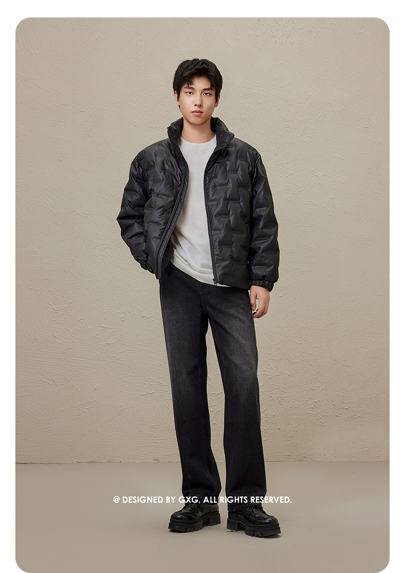 GXG男装 冬季热卖GXG男士纯色休闲百搭保暖立领短款羽绒服男外套鸭绒