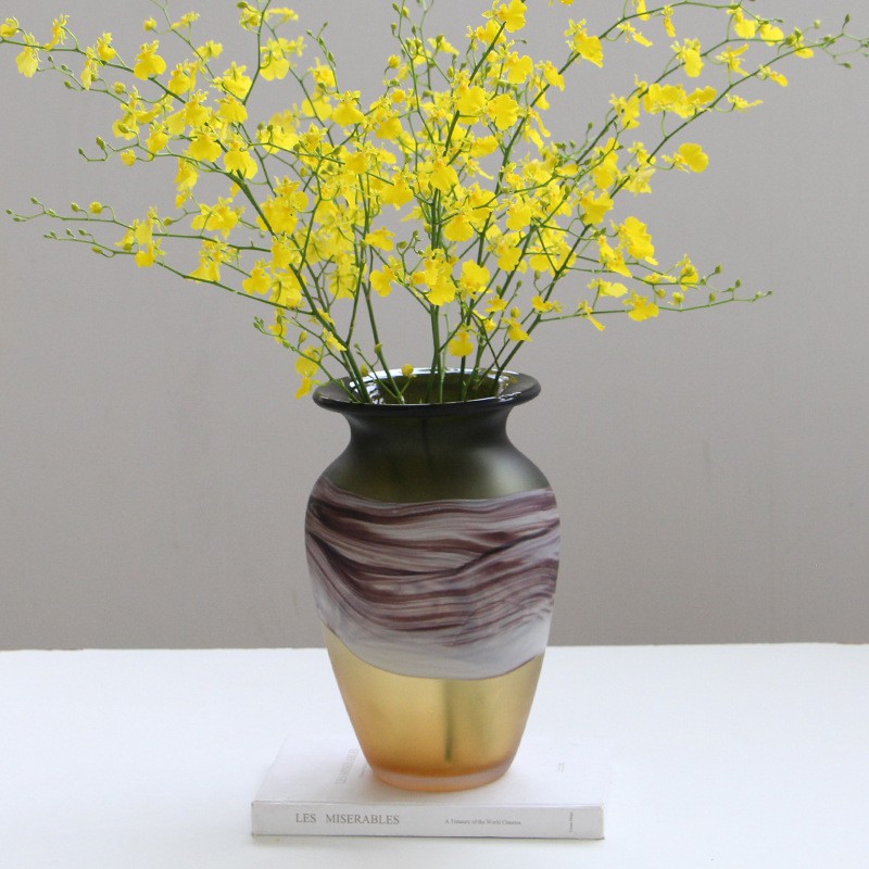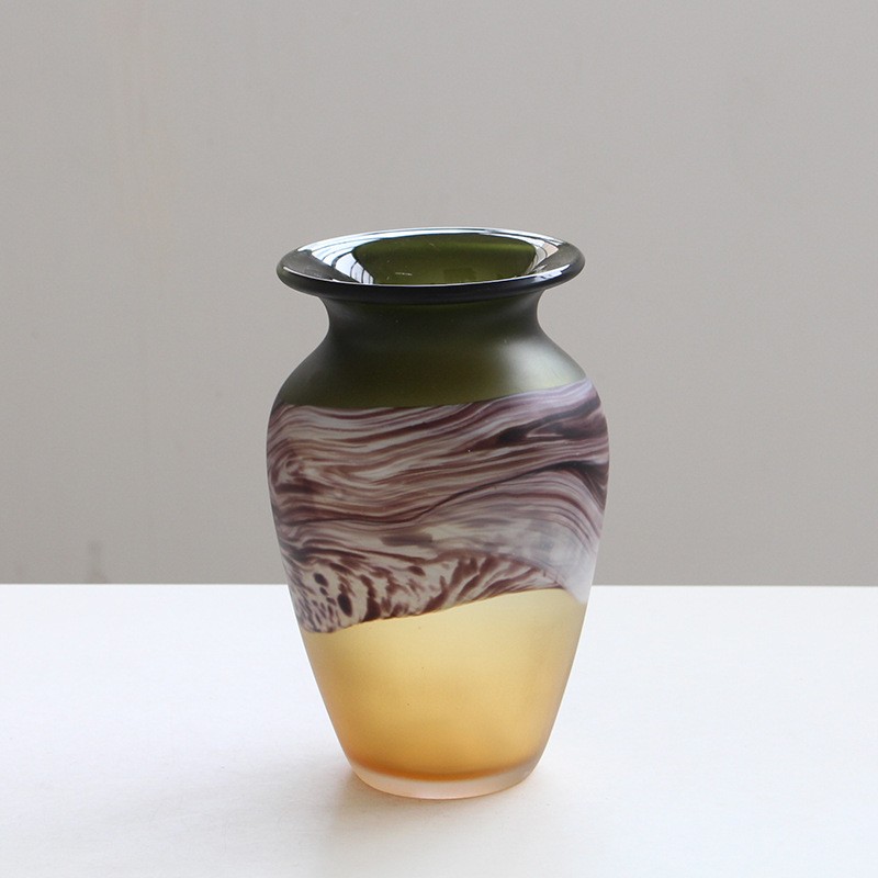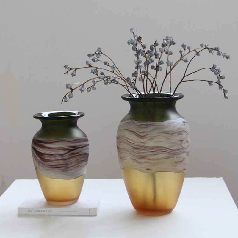轻奢哑光新中式渐变手作创意琉璃花瓶水培玻璃插花花器客厅摆件
