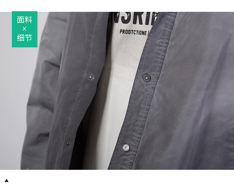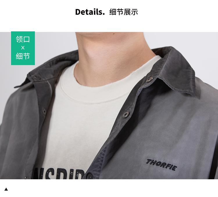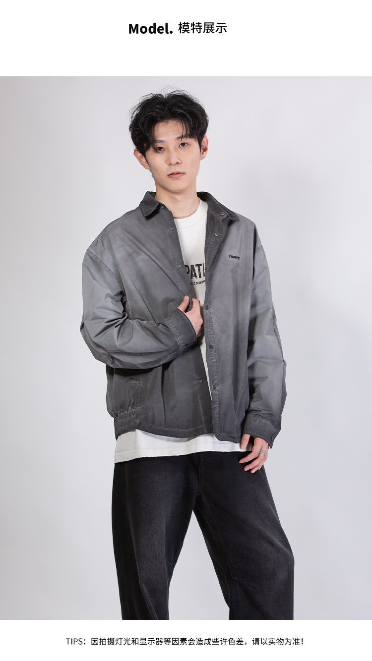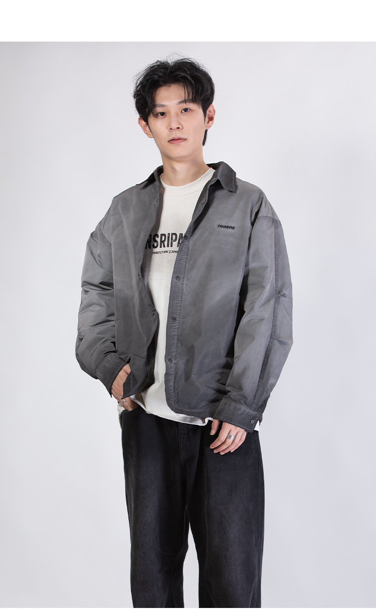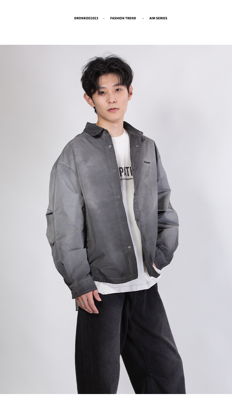 DRONKOO 2025 翻领左胸刺绣字母领袖下摆喷色洗水中厚衬衣外套