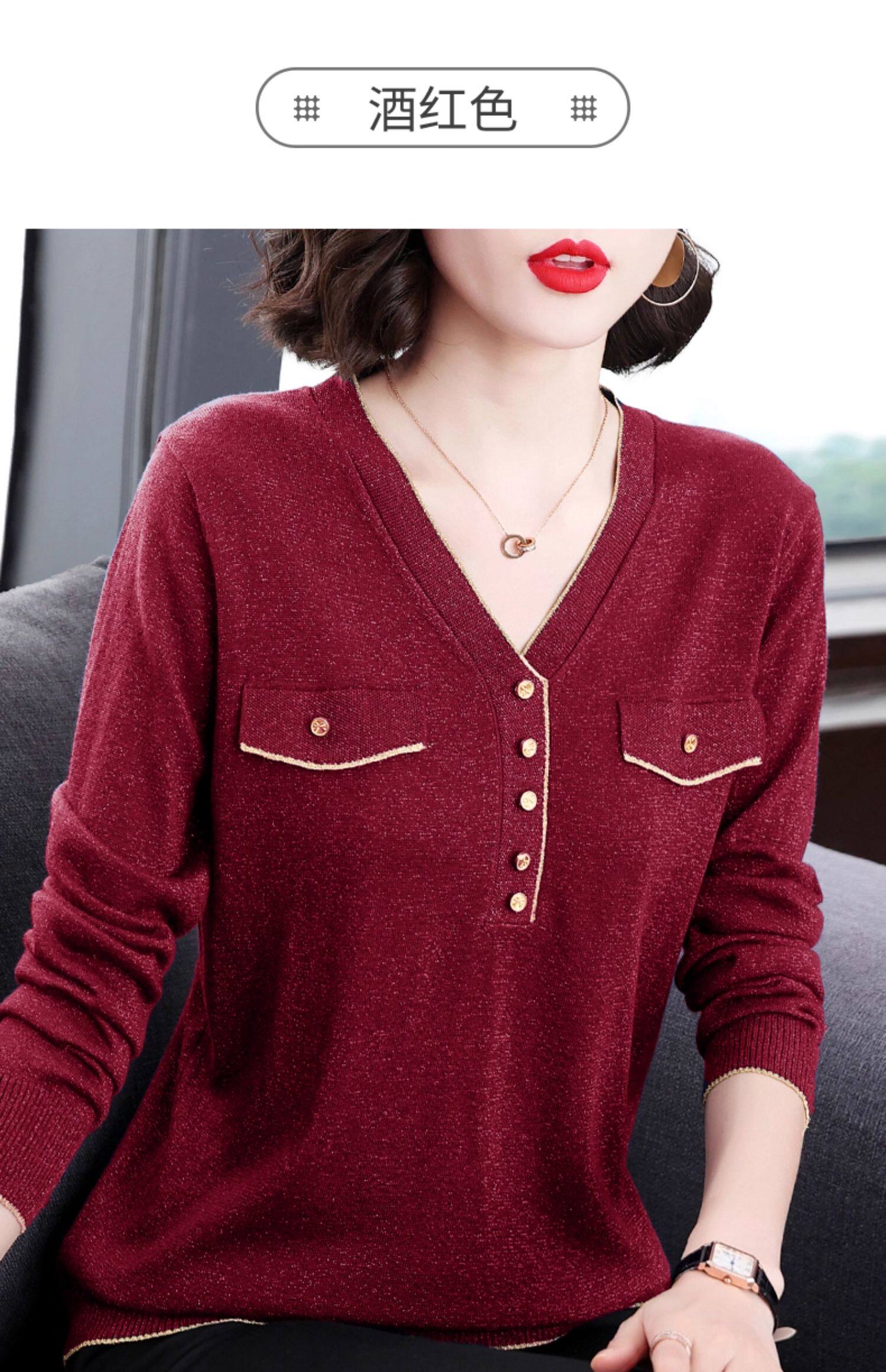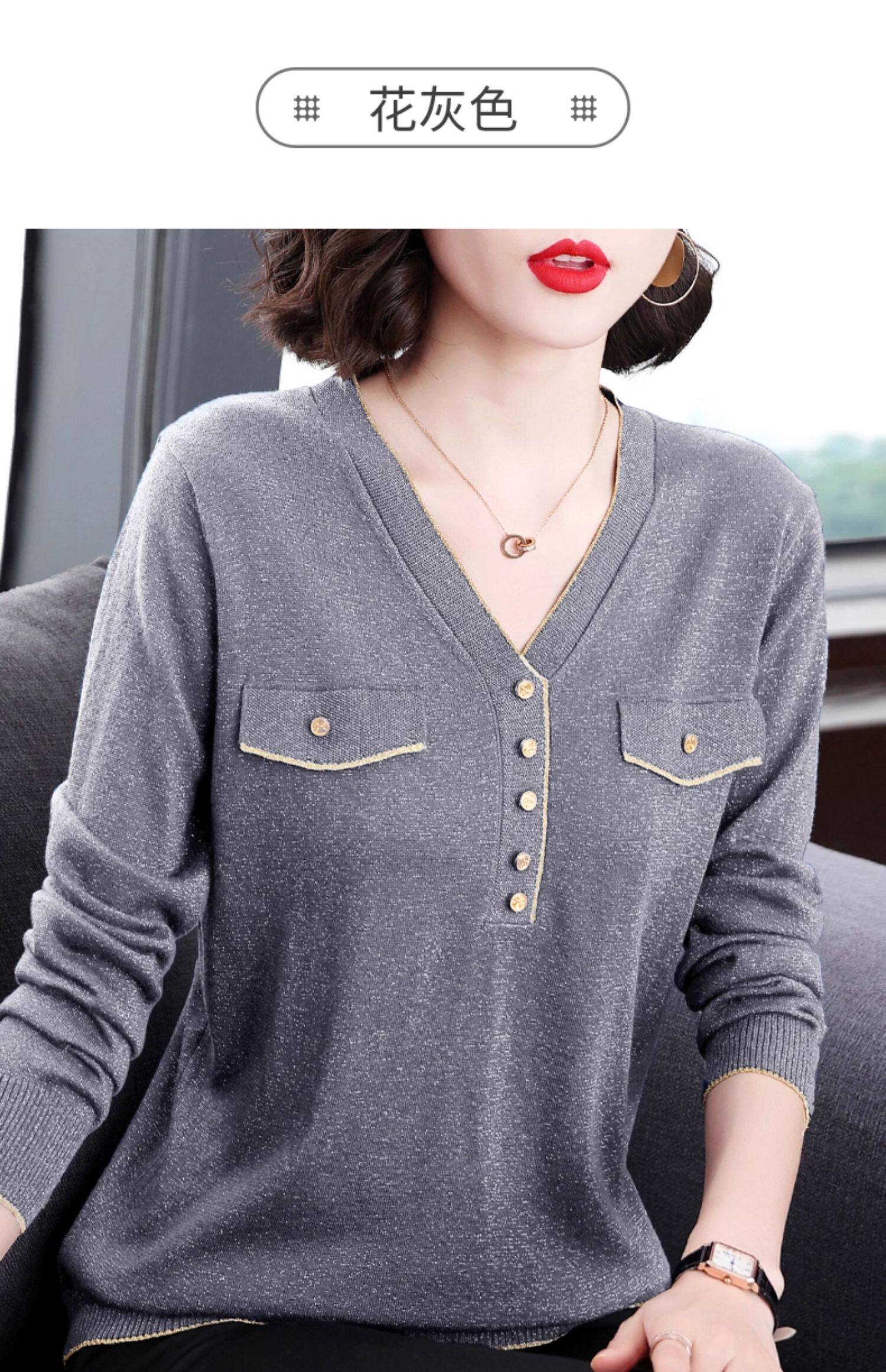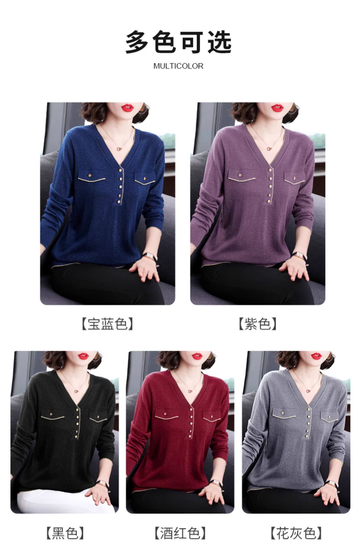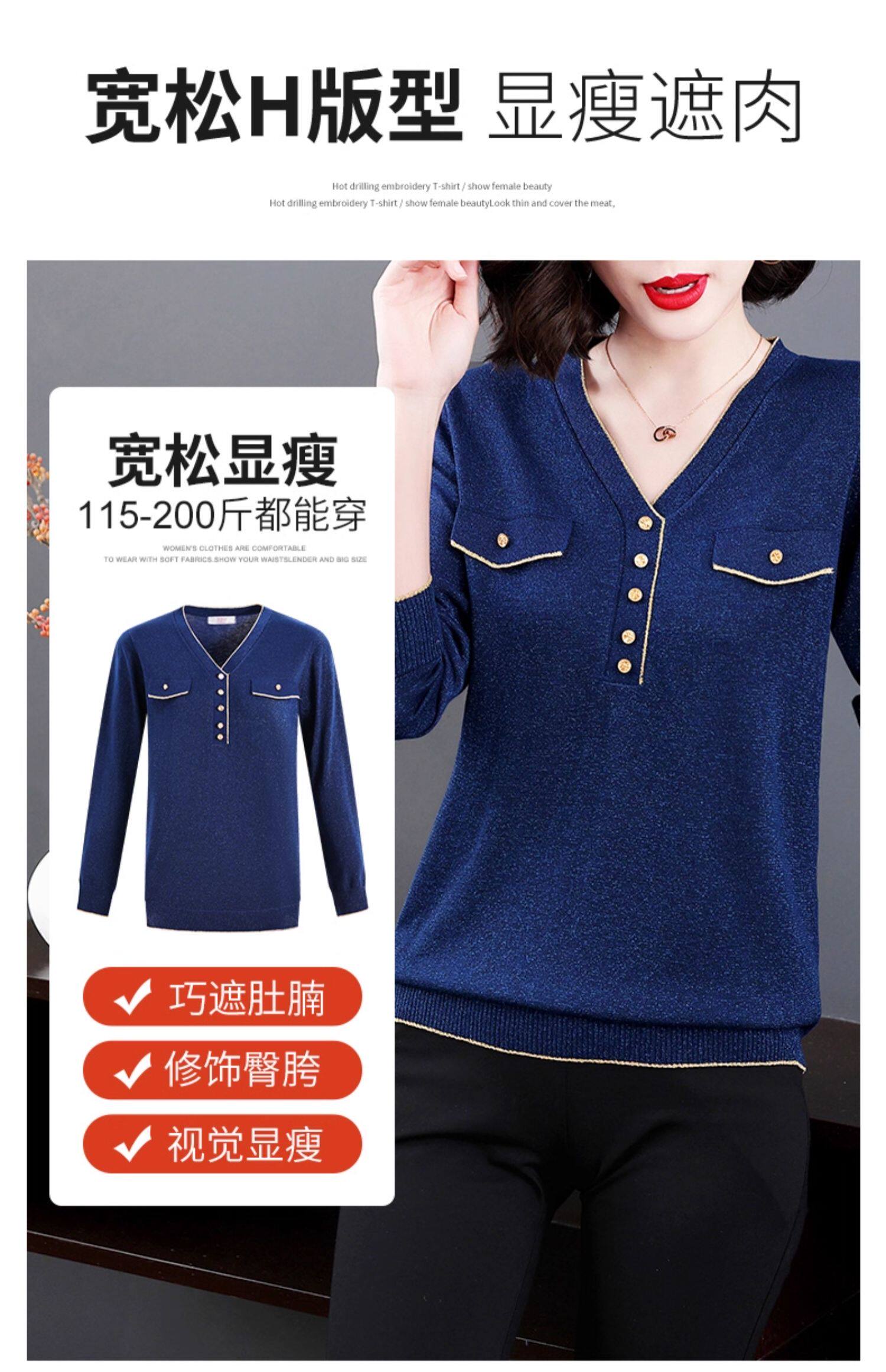 春装2025年新款针织衫长袖上衣女妈妈大码打底衫时尚洋气V领毛衣