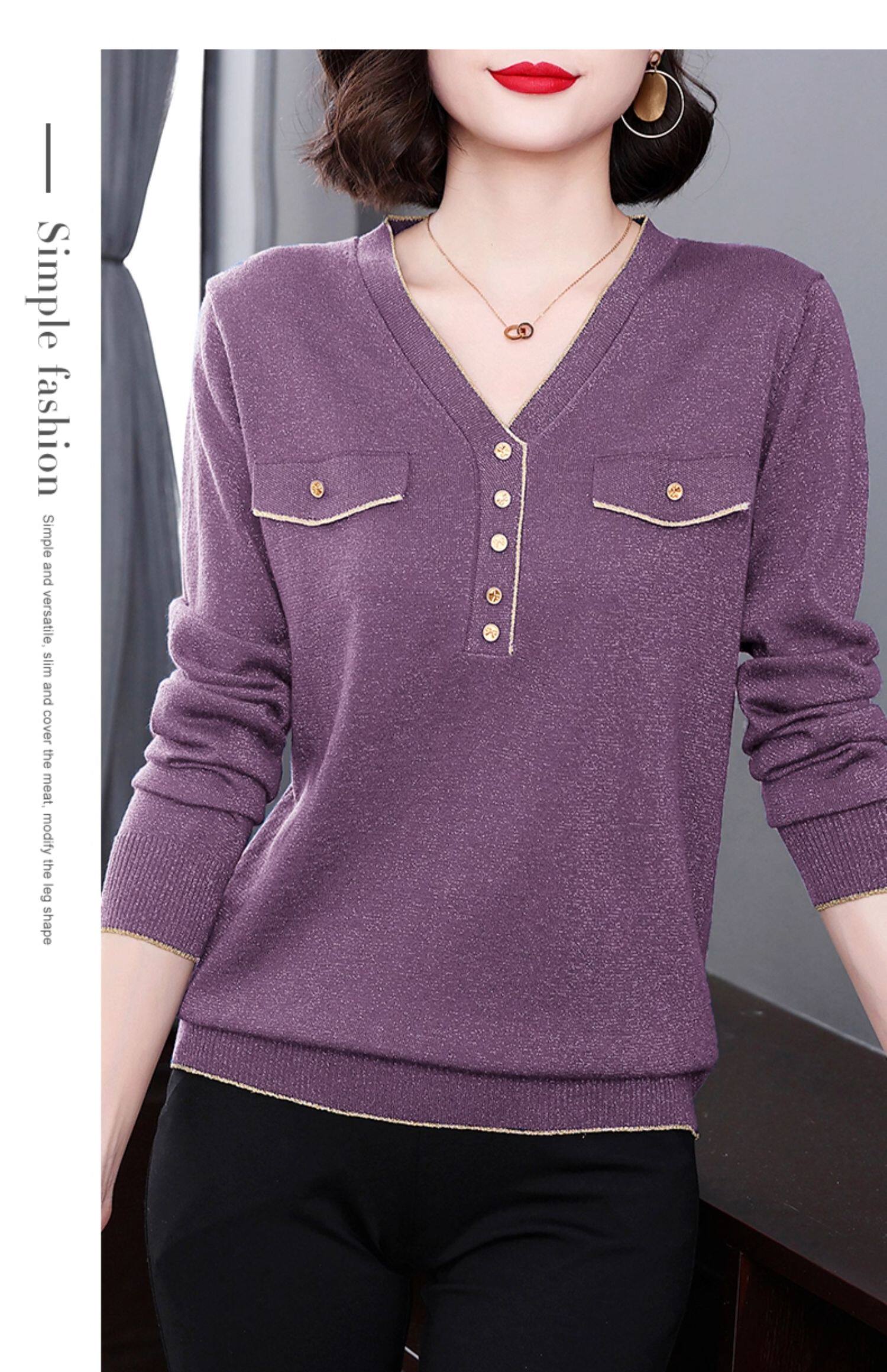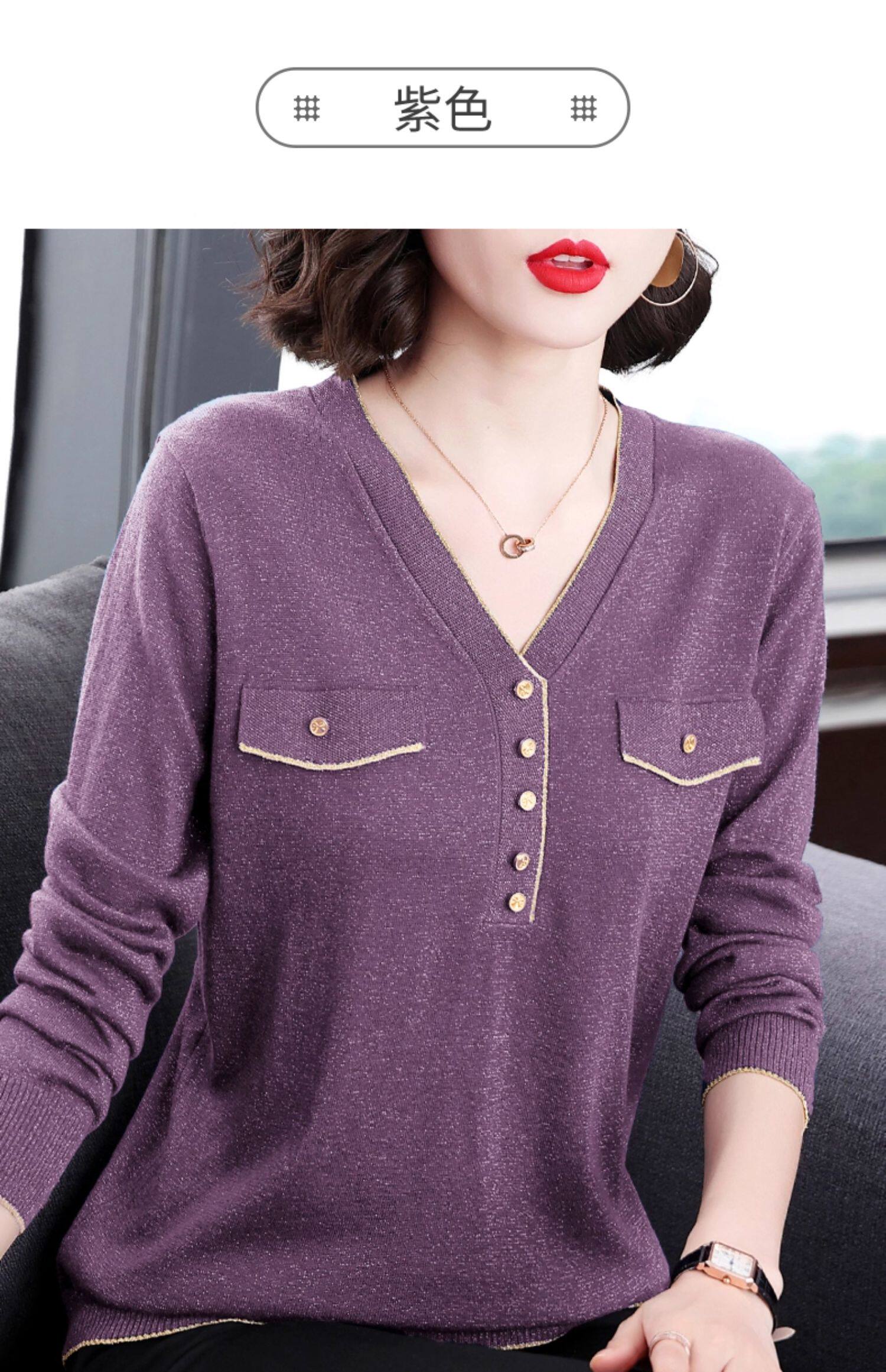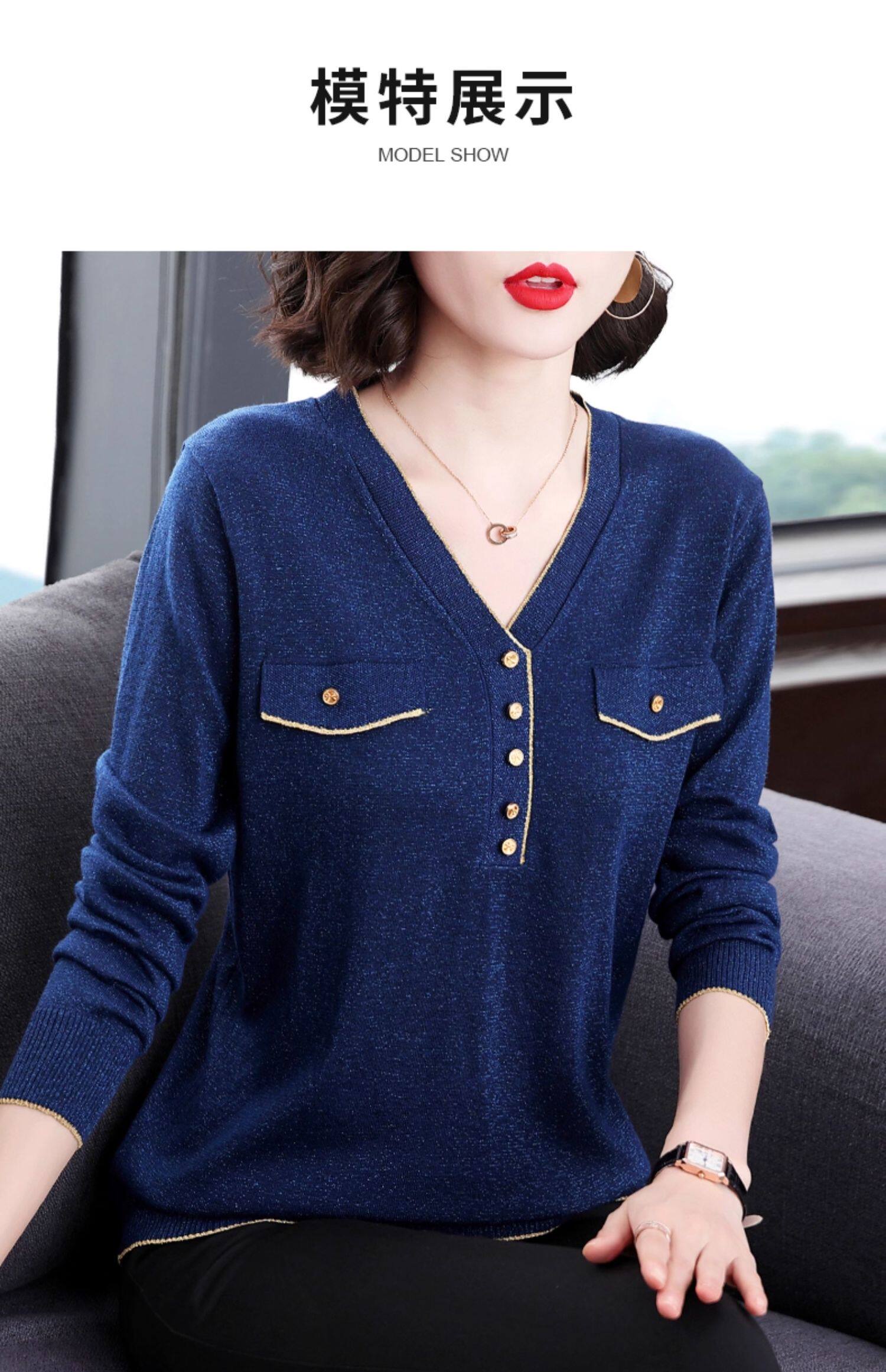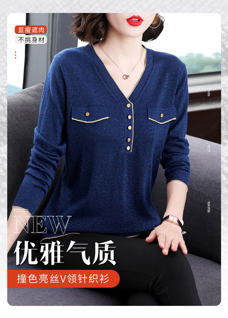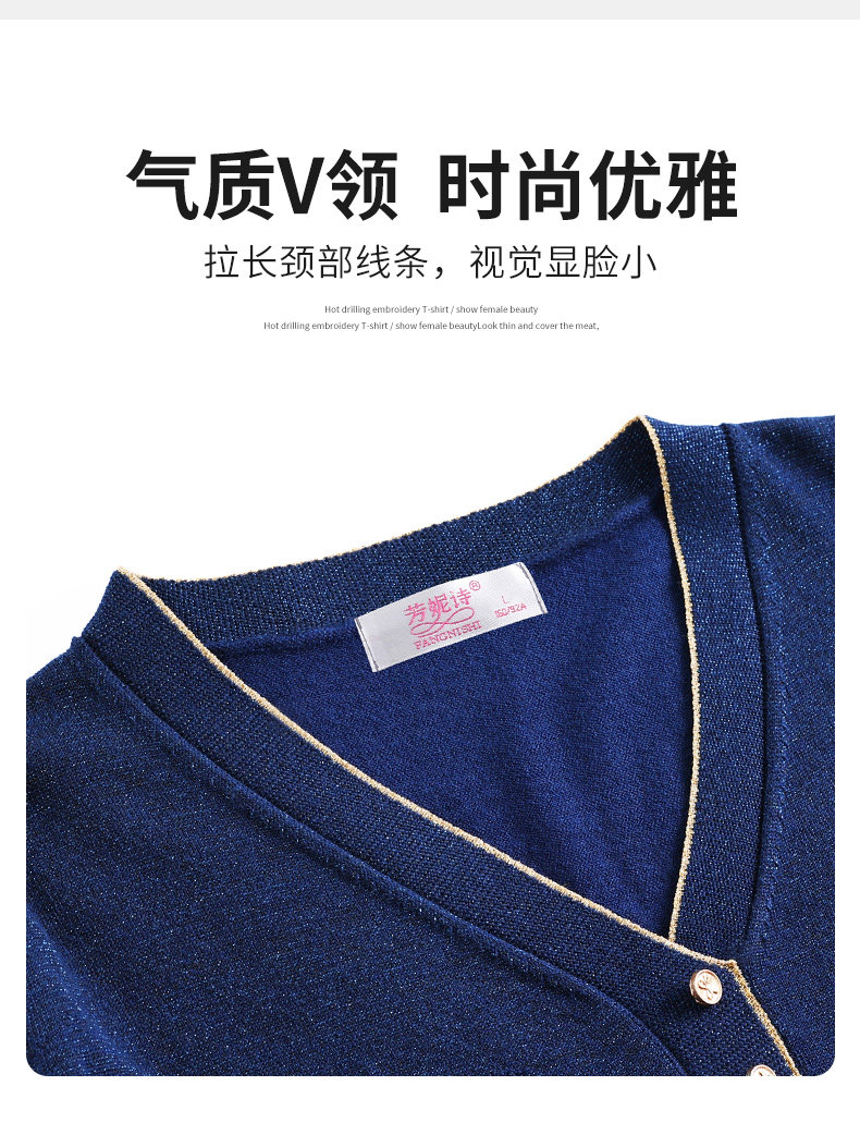 春装2025年新款针织衫长袖上衣女妈妈大码打底衫时尚洋气V领毛衣