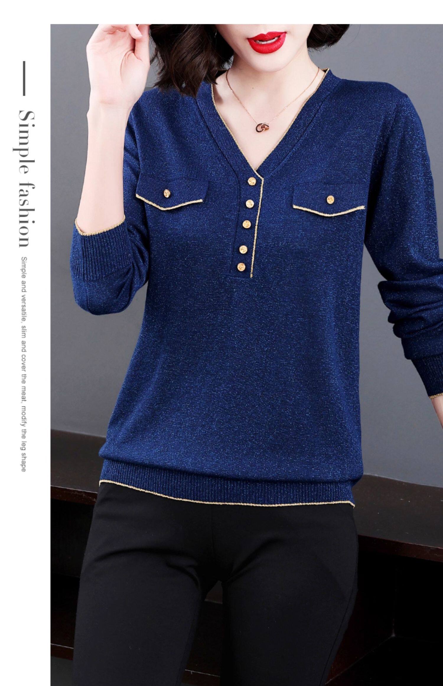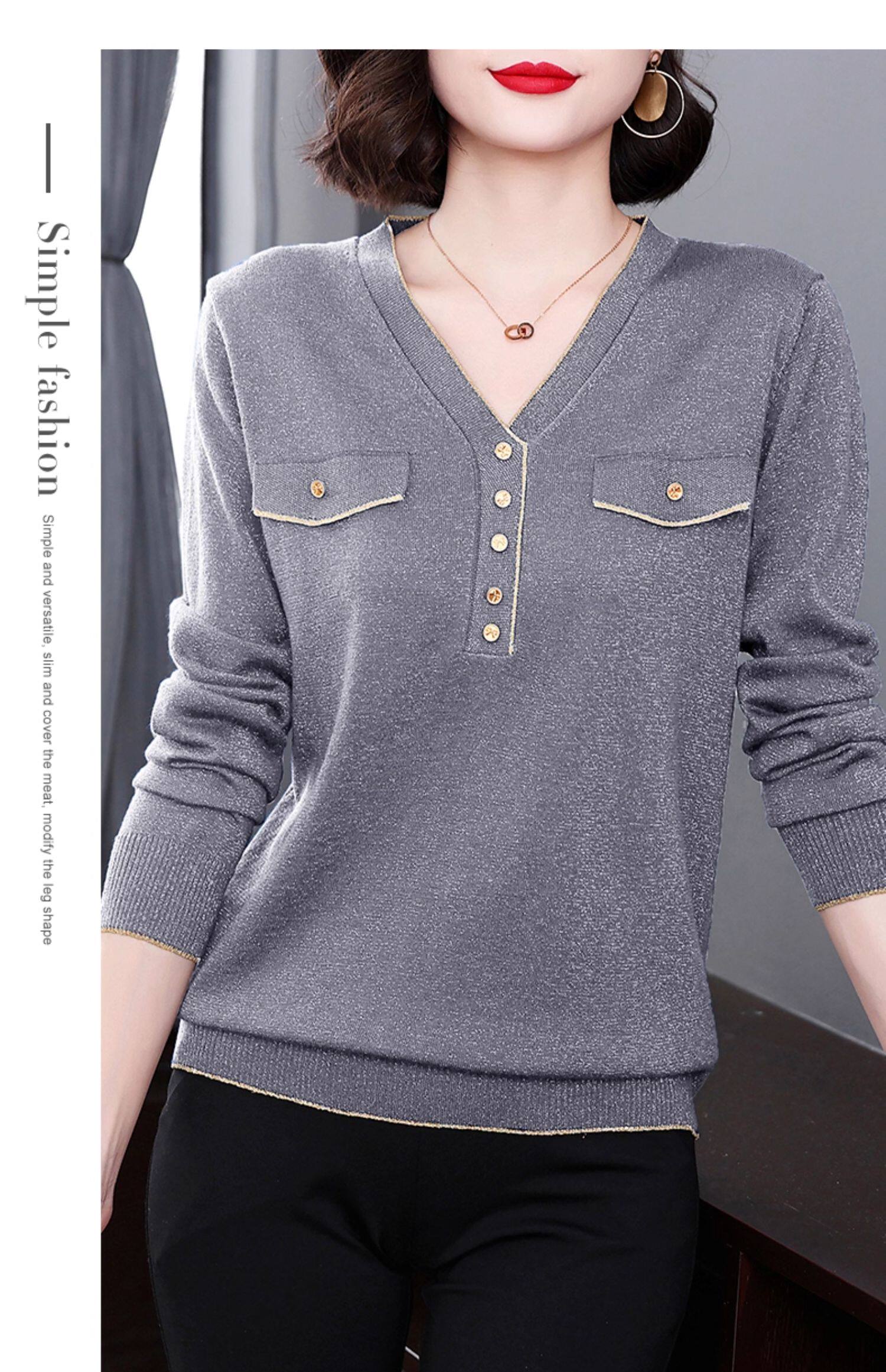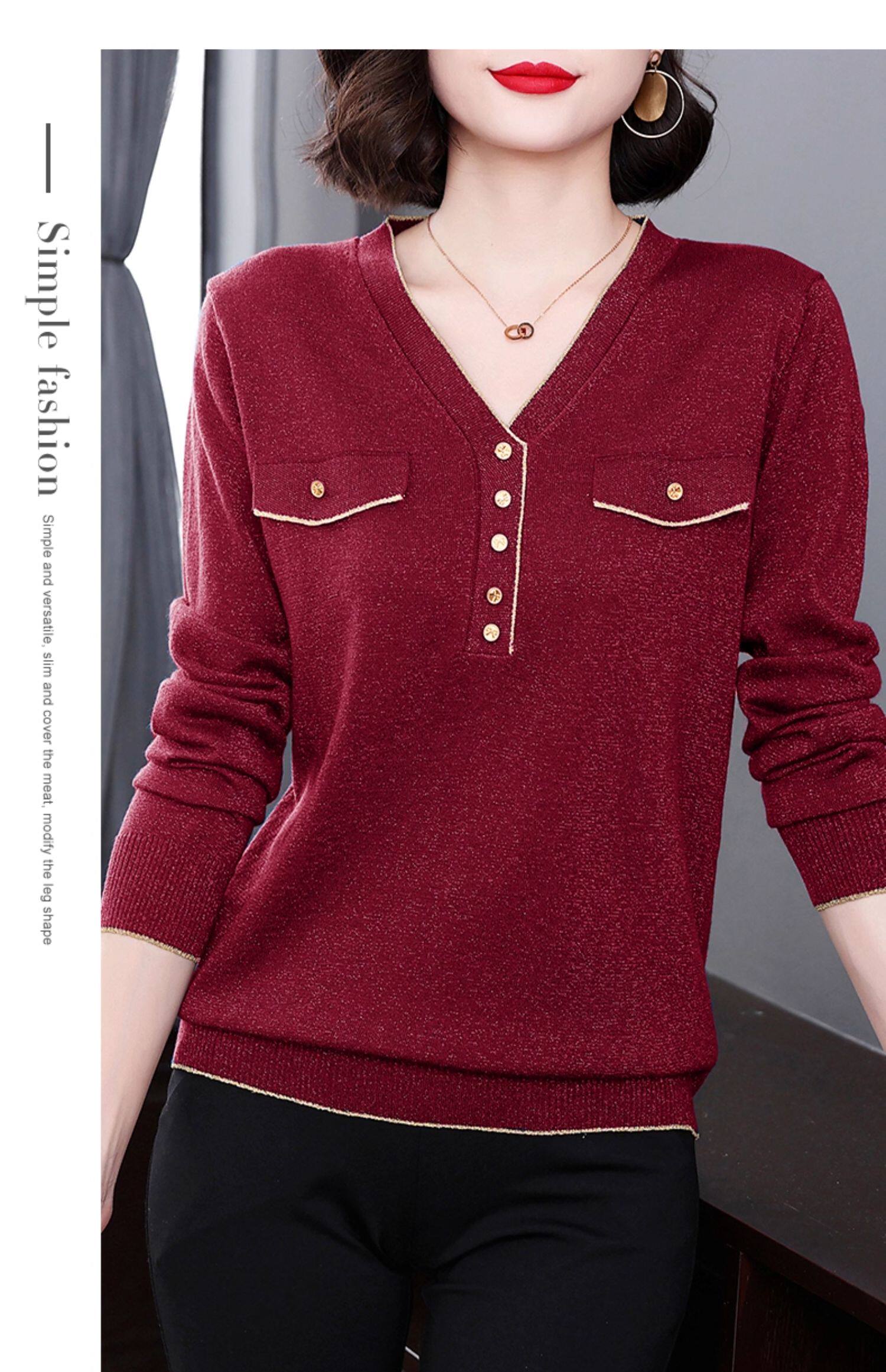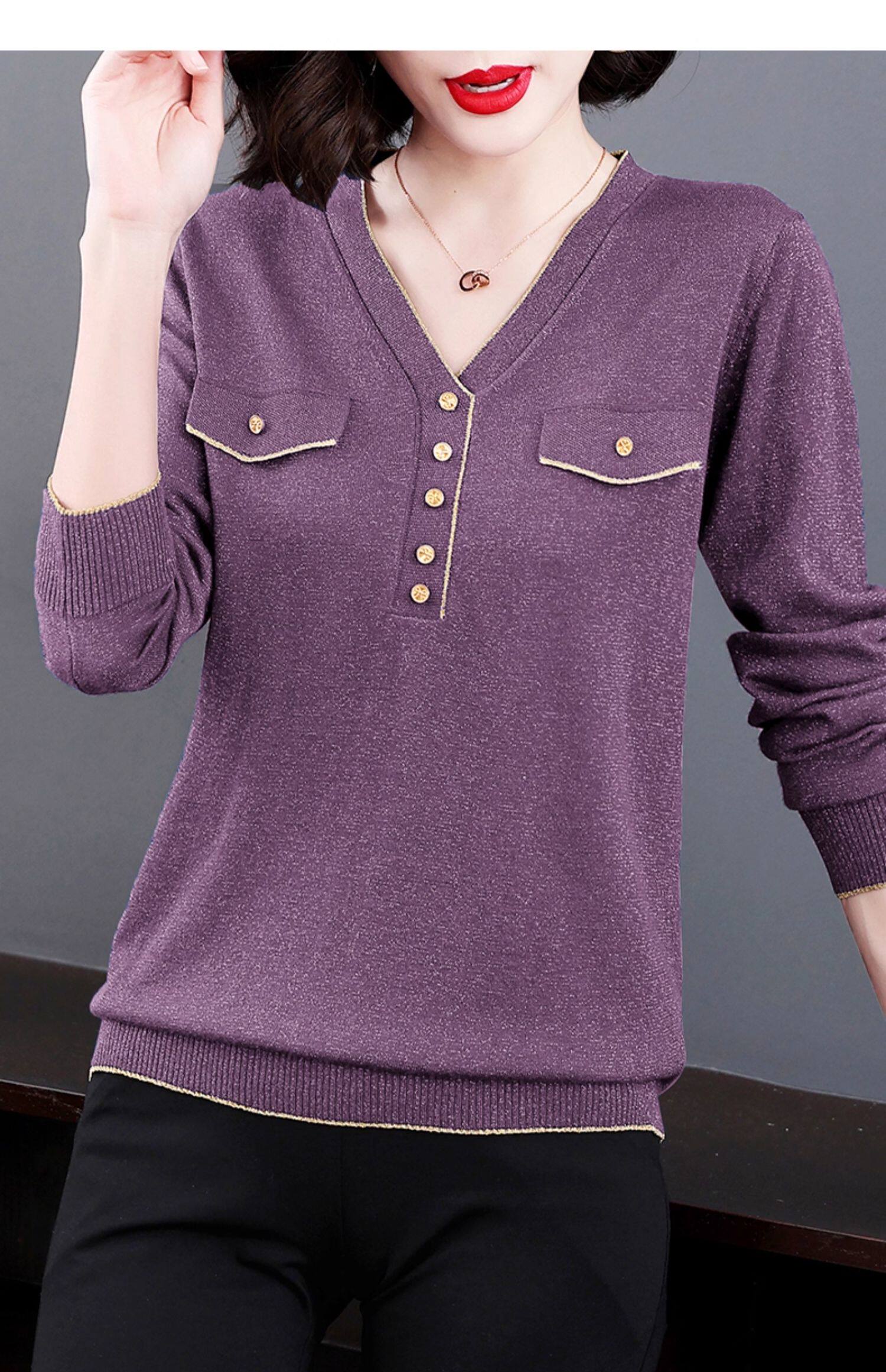 春装2025年新款针织衫长袖上衣女妈妈大码打底衫时尚洋气V领毛衣