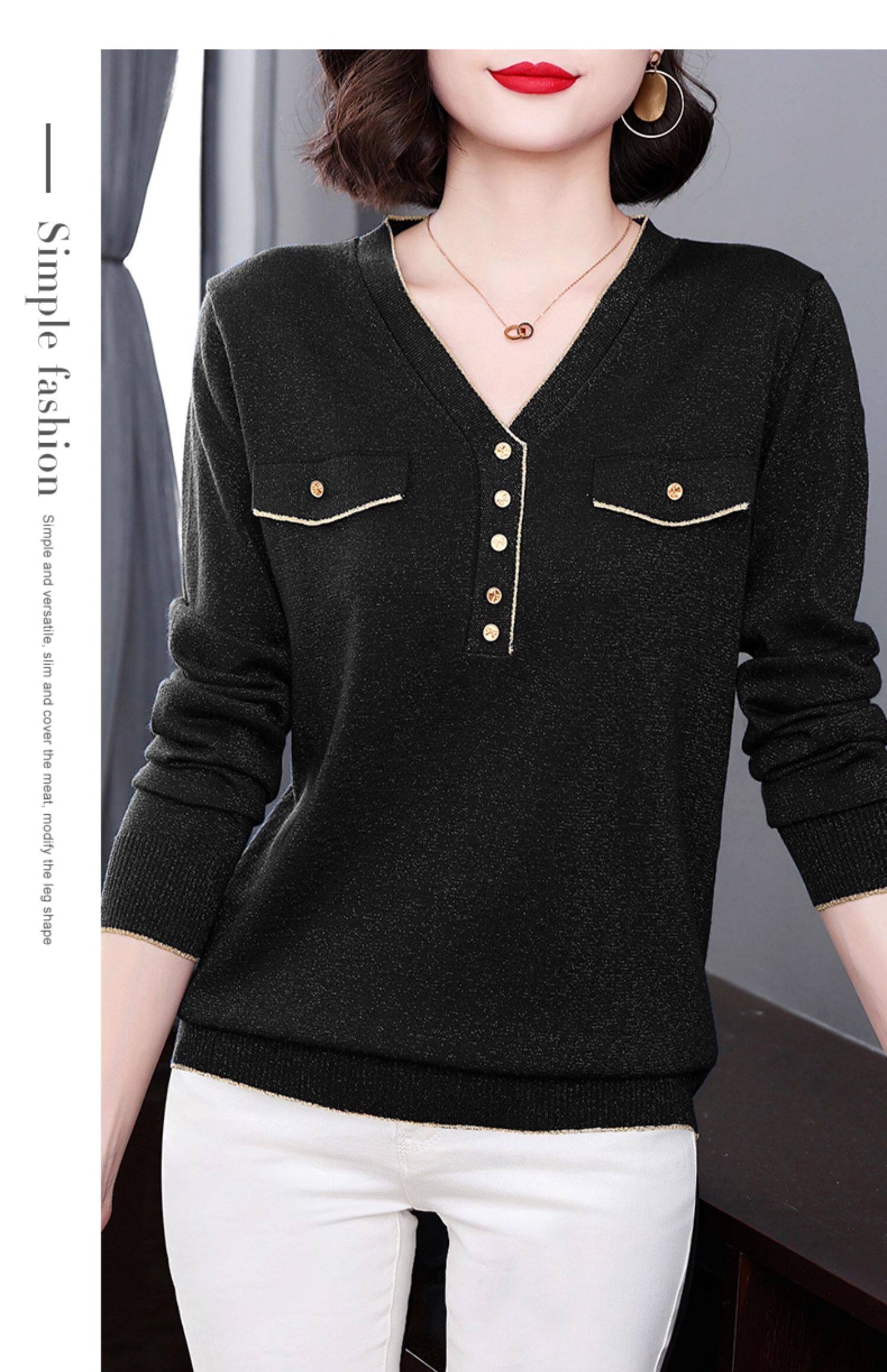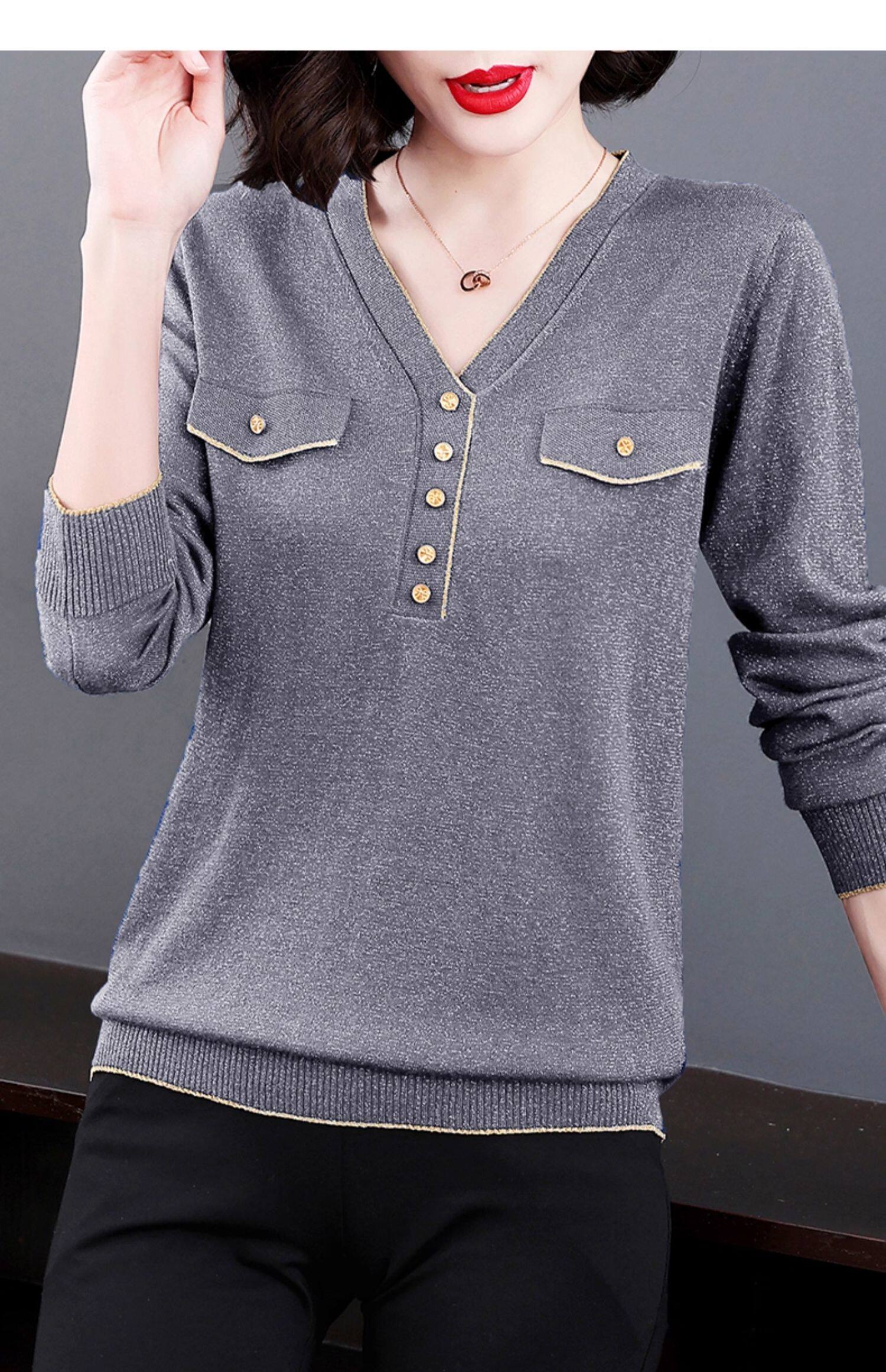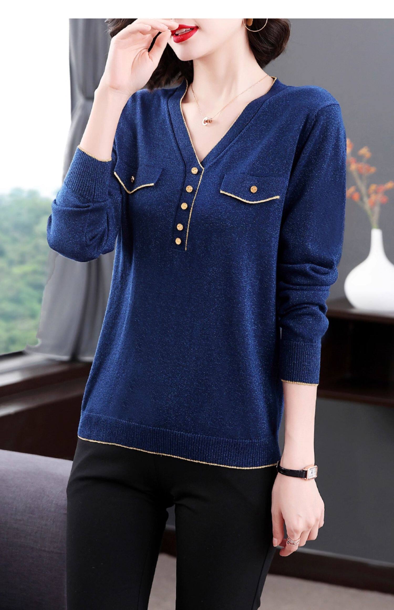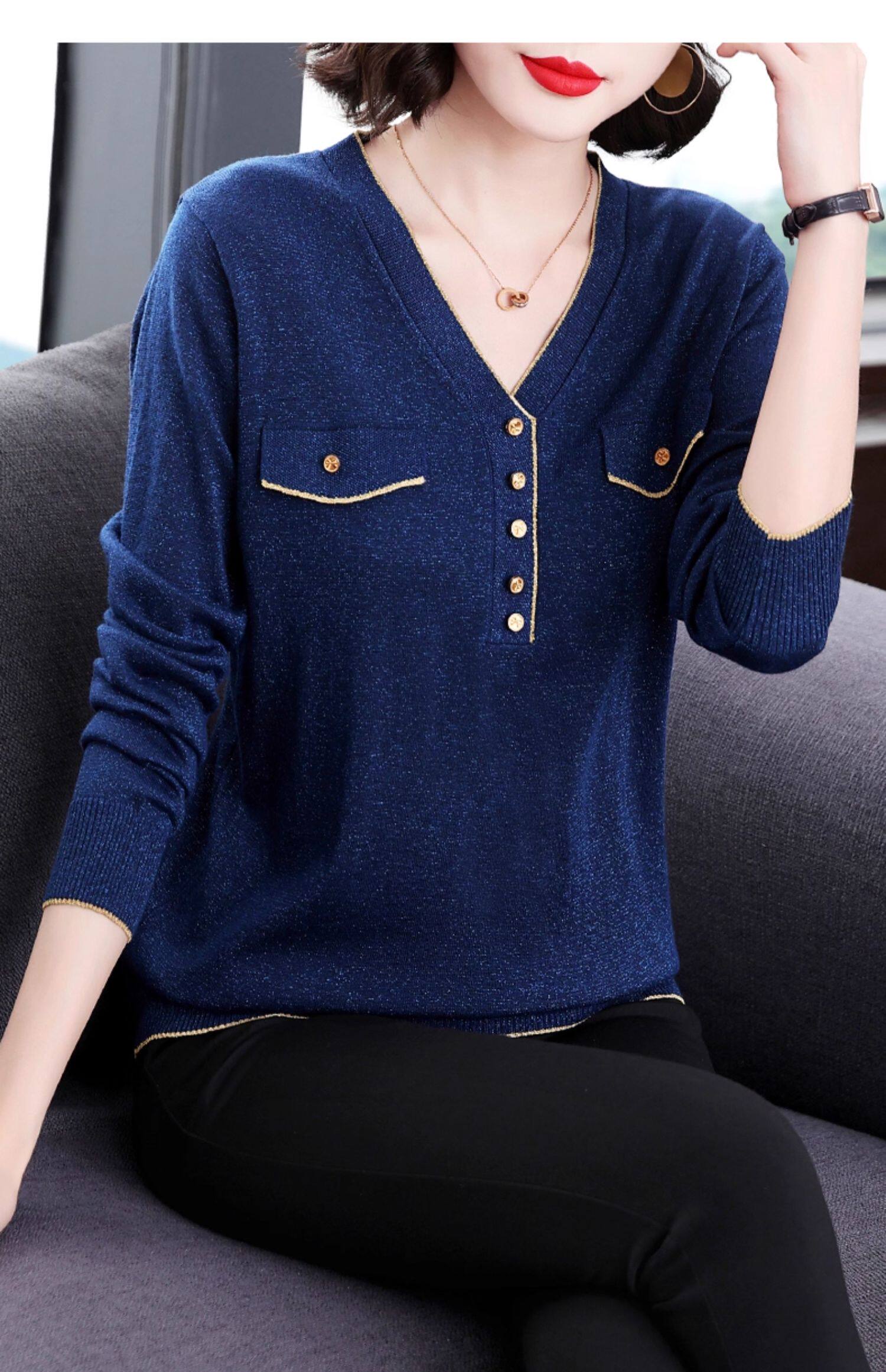 春装2025年新款针织衫长袖上衣女妈妈大码打底衫时尚洋气V领毛衣