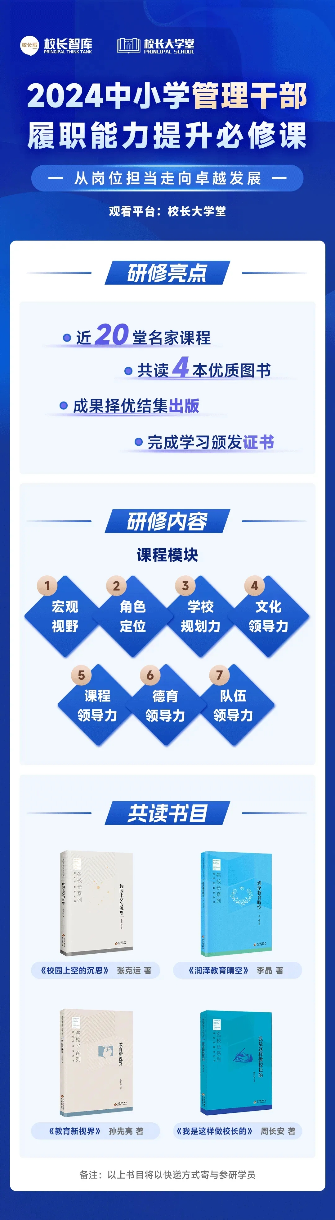2024中小学管理干部履职能力提升必修课 从岗位担当走向卓越发展 近20堂名家课程 共读4本优质图书