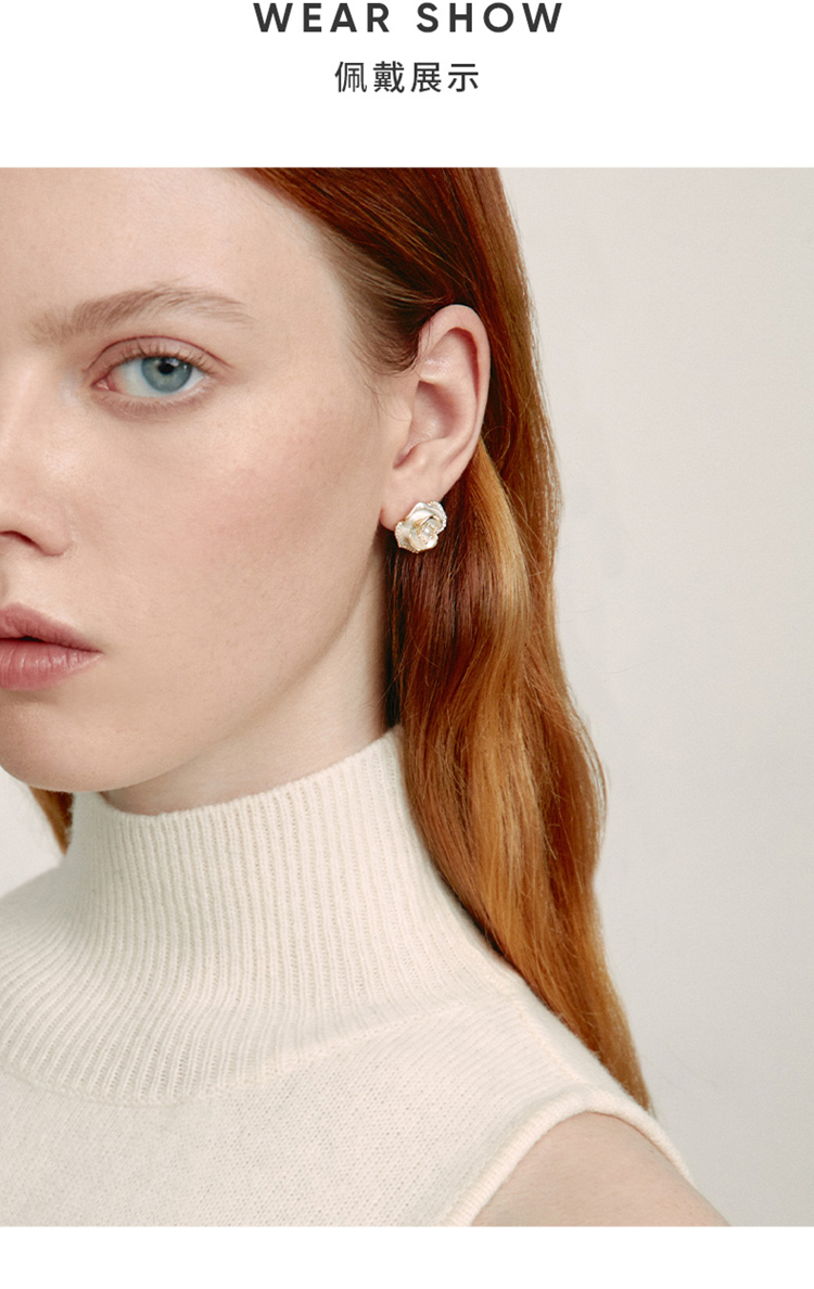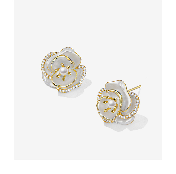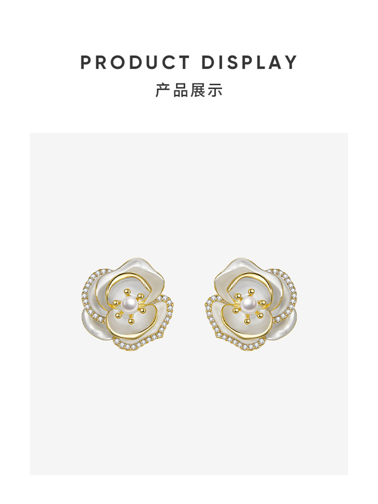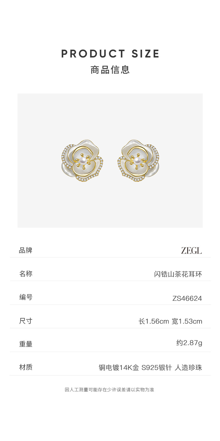 ZEGL法式山茶花朵人造珍珠耳环女高级感秋冬复古耳钉925银针耳饰