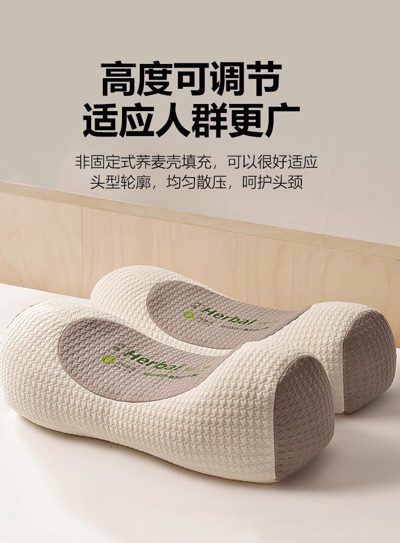 「草本立体护颈枕」荞麦枕头枕芯护颈椎助睡眠圆柱热敷三角枕个装成人用硬高枕荞麦枕床上用品