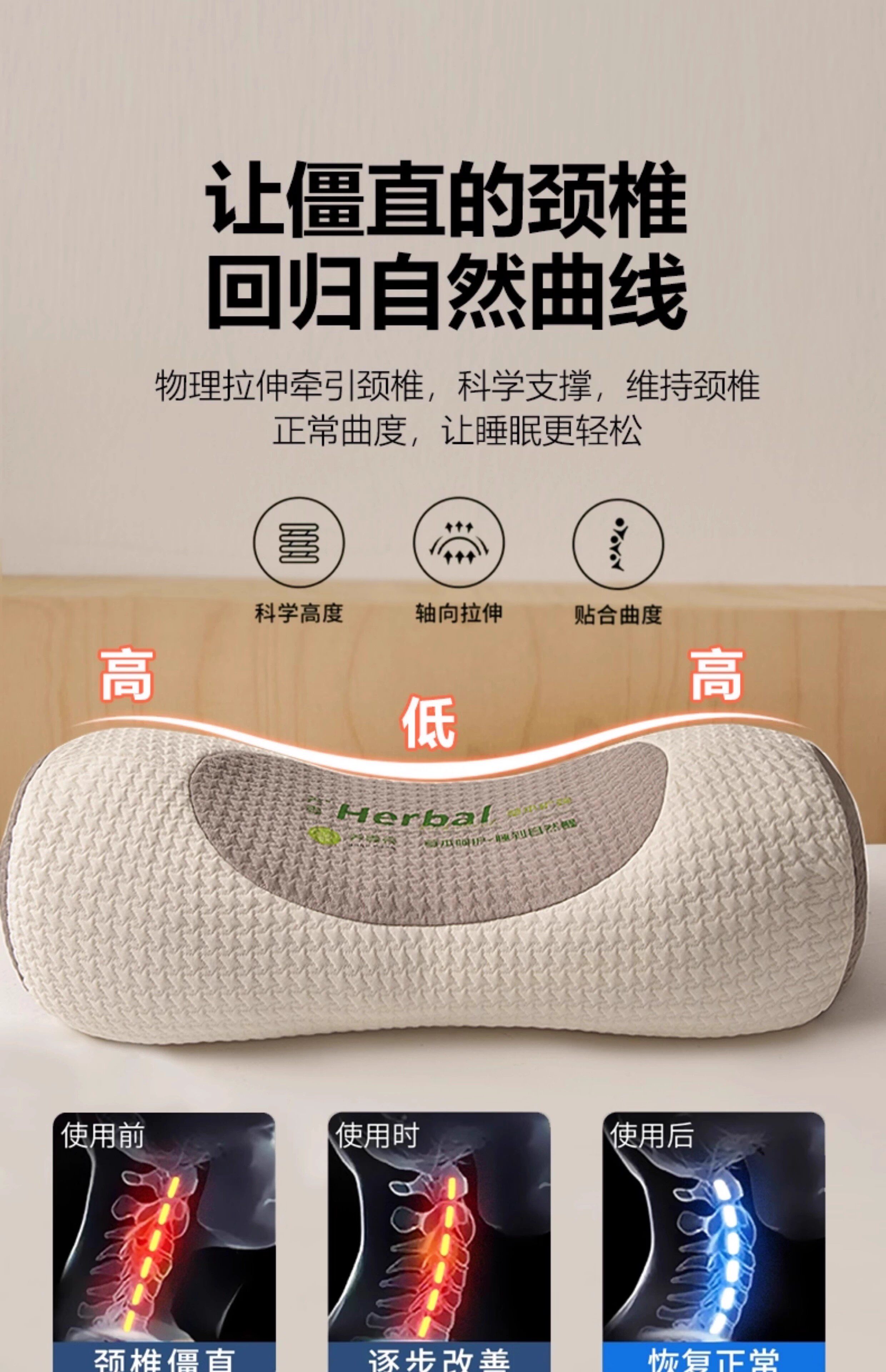 「草本立体护颈枕」荞麦枕头枕芯护颈椎助睡眠圆柱热敷三角枕个装成人用硬高枕荞麦枕床上用品 商品图1