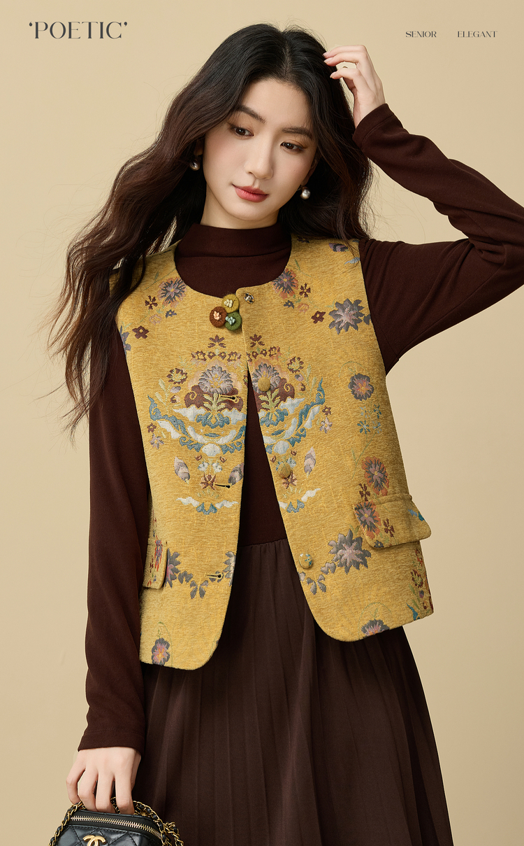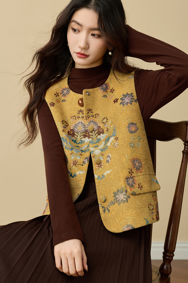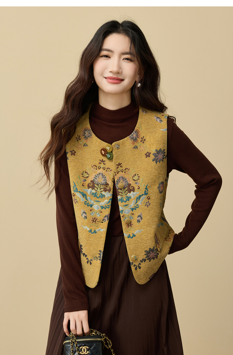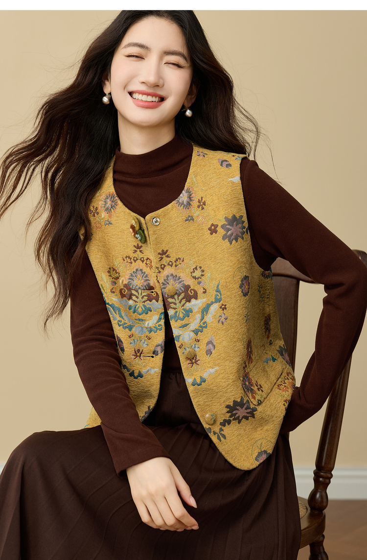 【周四狂欢价】熙世界【雅韵东方】新中式国风金黄色马甲背心女秋冬无袖坎肩上衣