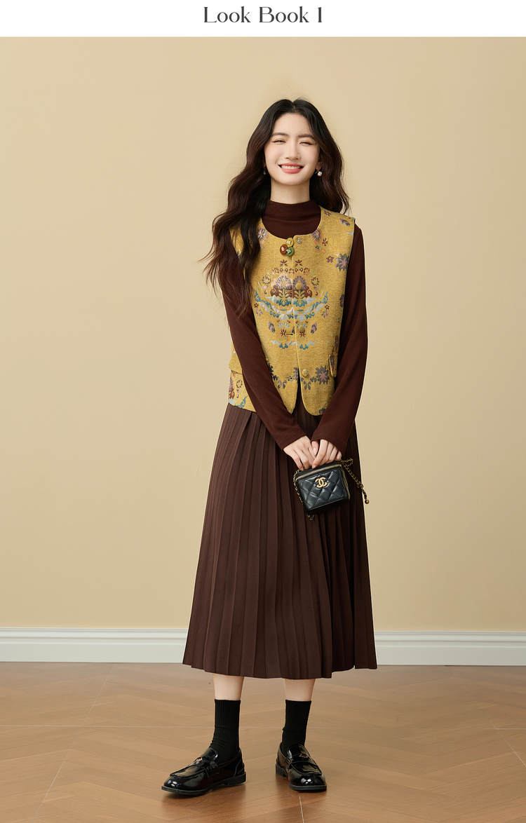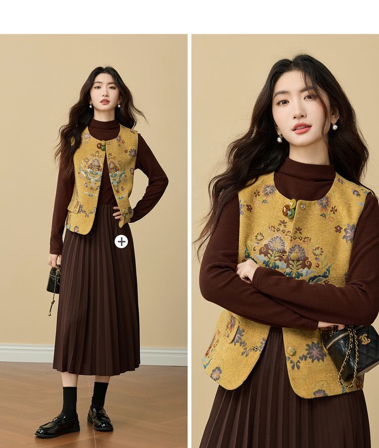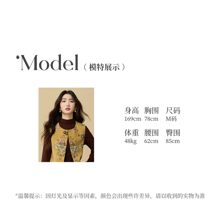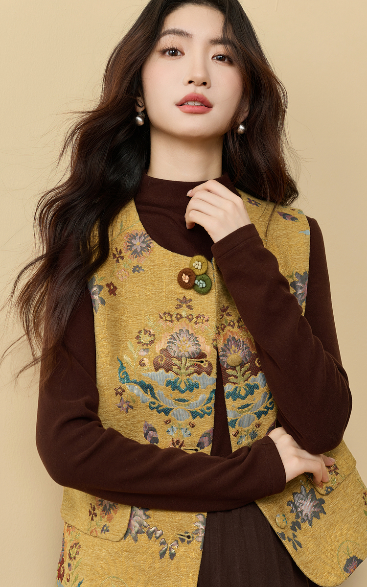 【周四狂欢价】熙世界【雅韵东方】新中式国风金黄色马甲背心女秋冬无袖坎肩上衣