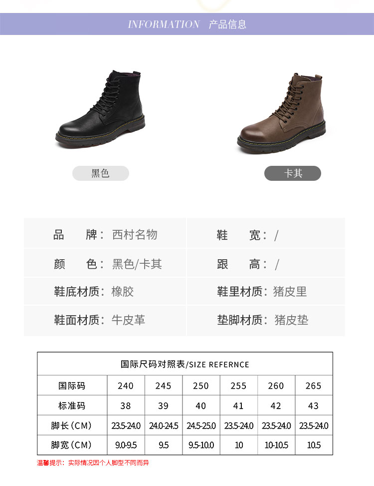 西村2021年新专柜同款英伦百搭潮流男靴休闲靴高帮马丁靴男鞋X11DU43551