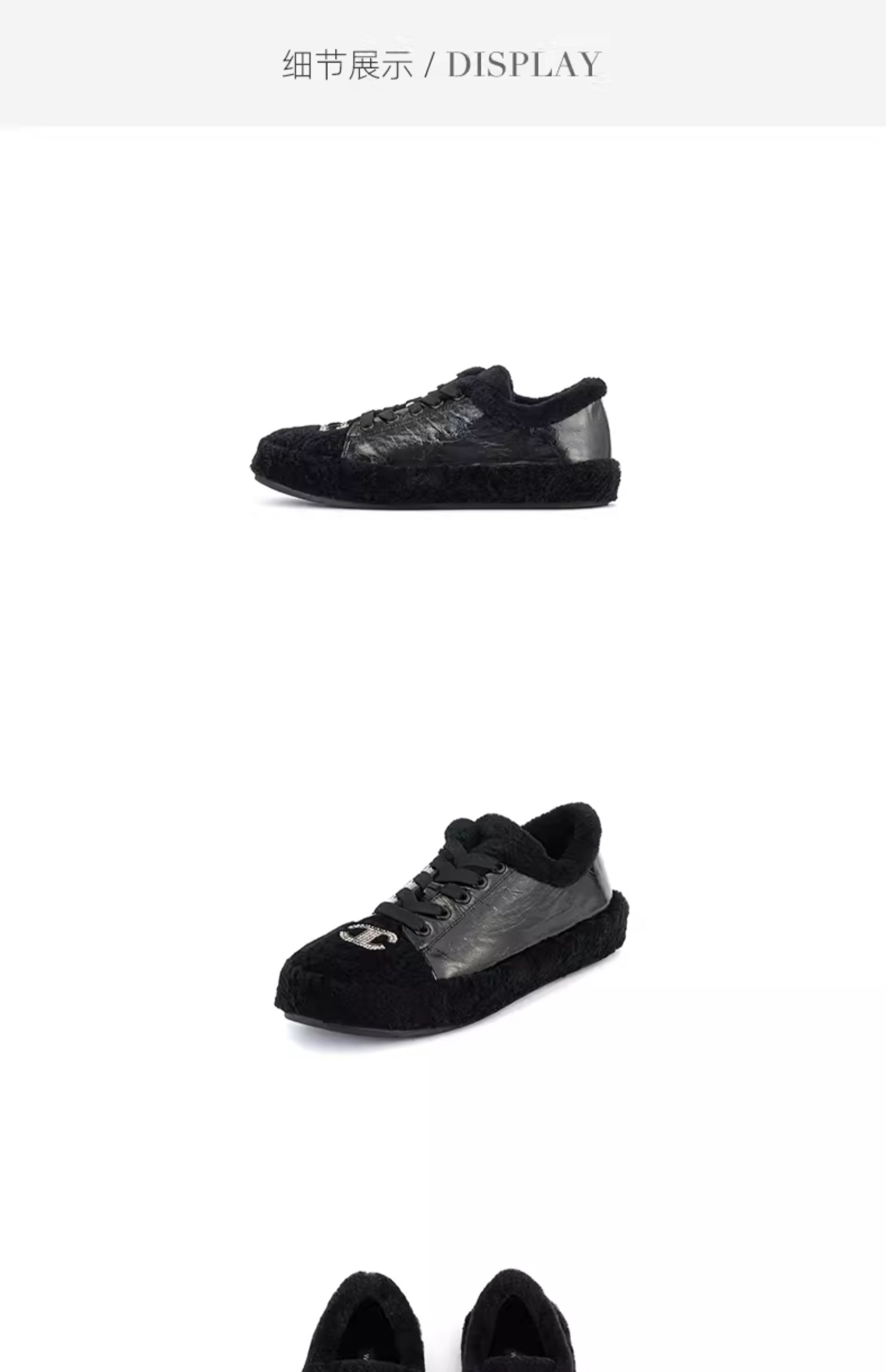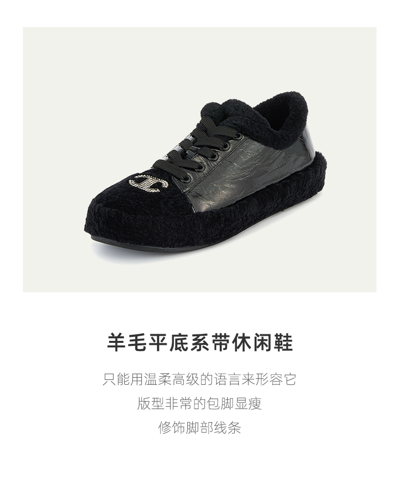 westory2023秋冬新款羊毛平底系带毛毛鞋加绒加厚保暖棉鞋女W23DM83801