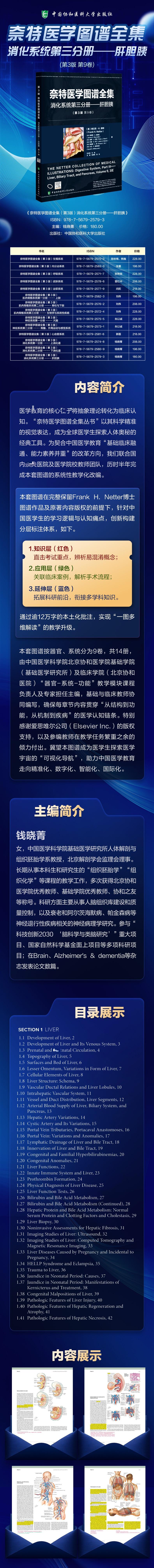 《奈特医学绘图图集》(第3版)(始于1948年,奈特博士与CIBA制药(诺华制药前身)合作的单卷本,后拓展为多卷套“绿皮书”)共 9 卷(14 分册),以简明扼要、高度直观的方式,呈现了各器官系统的基础科学和临床医学知识。这套书籍包含精妙绝伦的教学插图,体现了近期新的医学内容。每卷都是在来自加州大学、宾夕法尼亚大学、梅奥诊所、克利夫兰诊所等各领域的教学和医疗专家编辑团队的指导下进行修订,将解剖学、生理学、病理学等基础学科的核心概念,与临床实践中常见的疾病问题、医疗诊断和手术治疗相融合。本图集延续了经典的奈特艺术风格,新增并更新了插图,辅以现代影像图片,使医学概念变得生动鲜活——这部不朽之作也由此成为学生、临床医生和教育工作者不可或缺的宝贵资源。• 本系列是诞生于1989年并聚焦于解剖学的《奈特人体解剖学》的奠基石和绘图资源库。• 以器官系统为导向,提供基础医学和临床医学的高度直观的图解介绍......