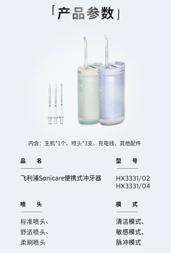 飞利浦Sonicare便携式水牙线 HX3331/02
