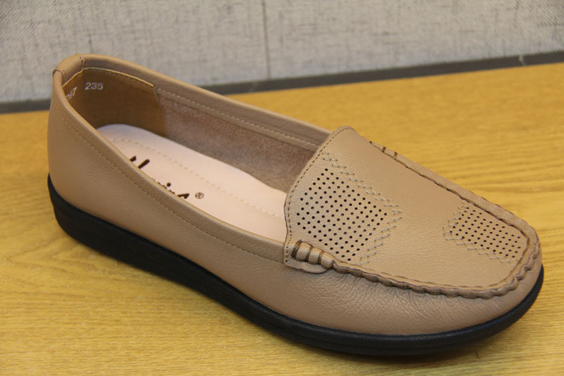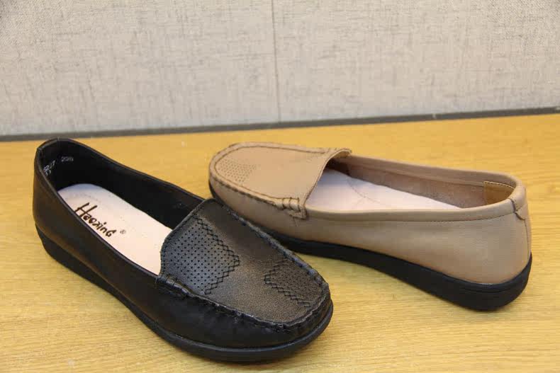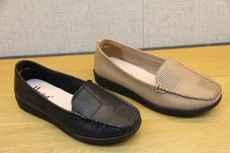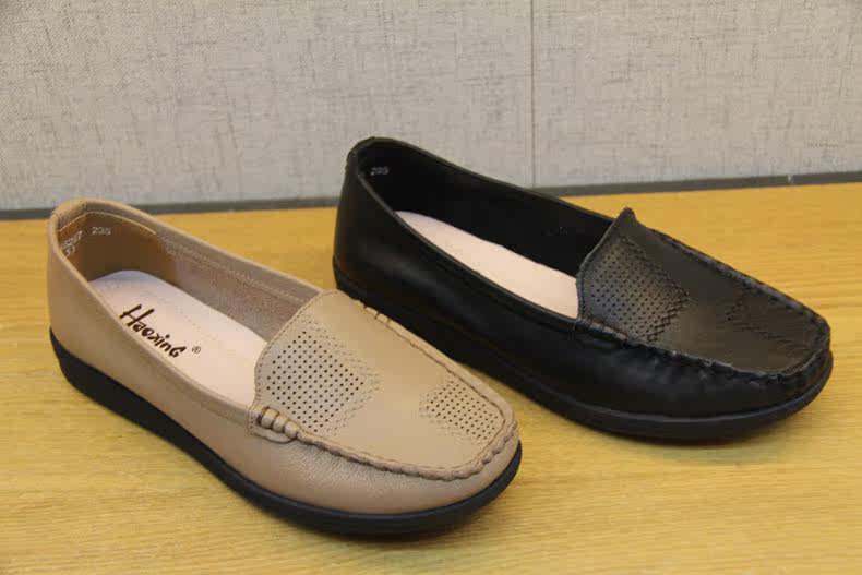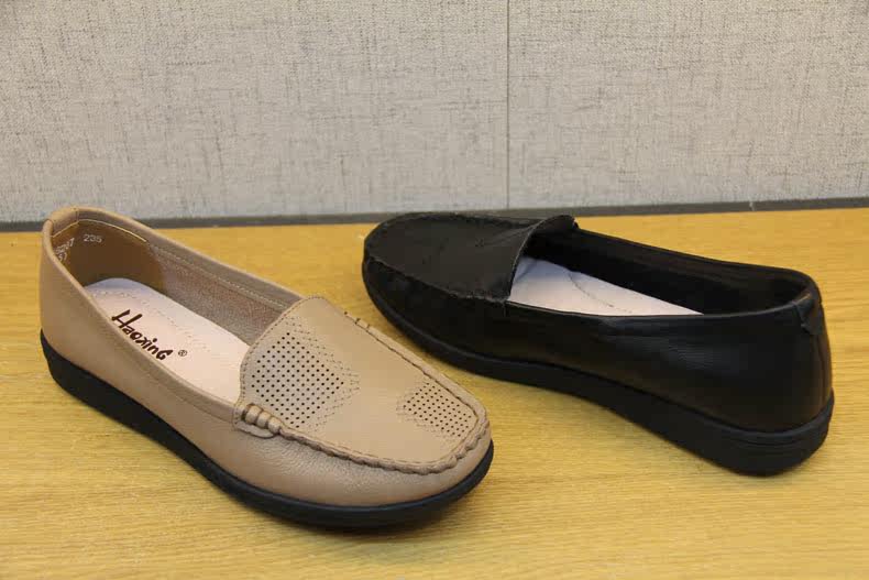 豪行秋款20346287真皮豆豆鞋透气软底女护士鞋平底舒适一脚蹬女鞋