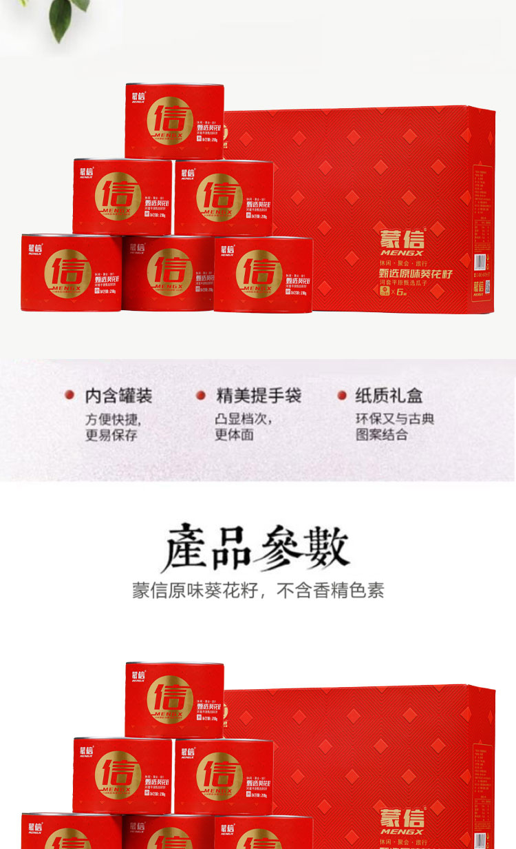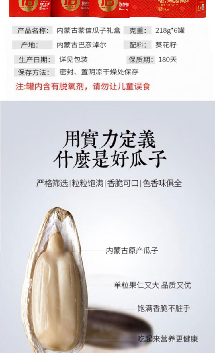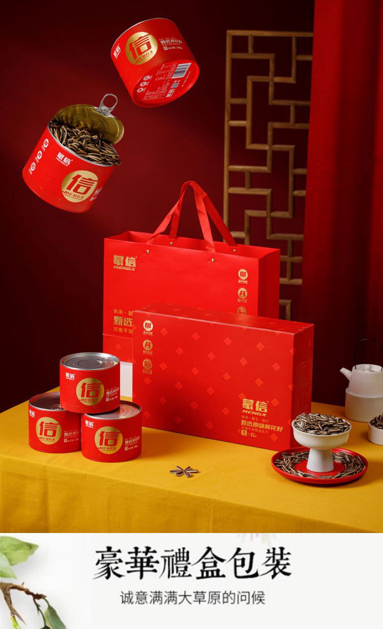 蒙信 原味葵花籽 218g*6罐 礼盒装 河套平原甄选葵花籽