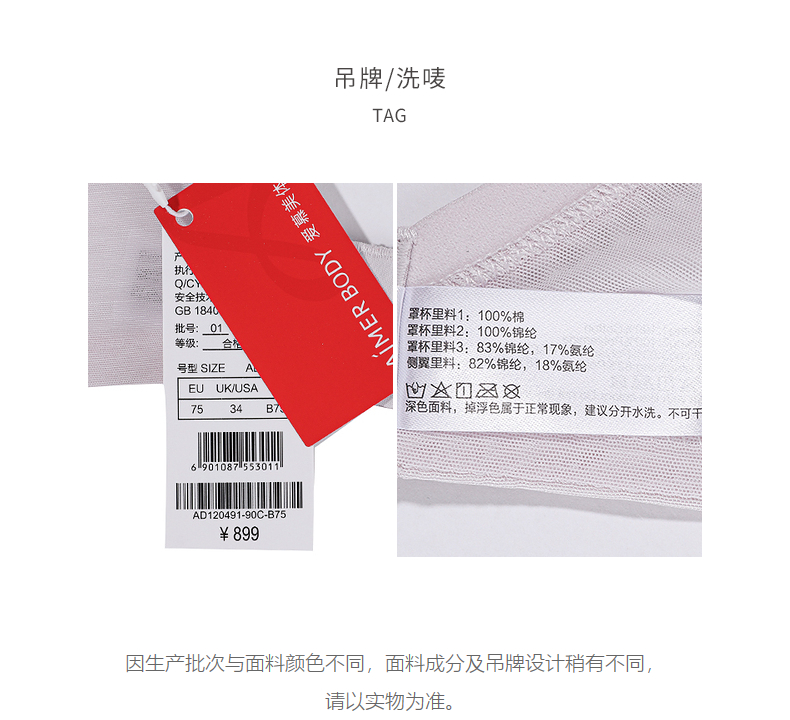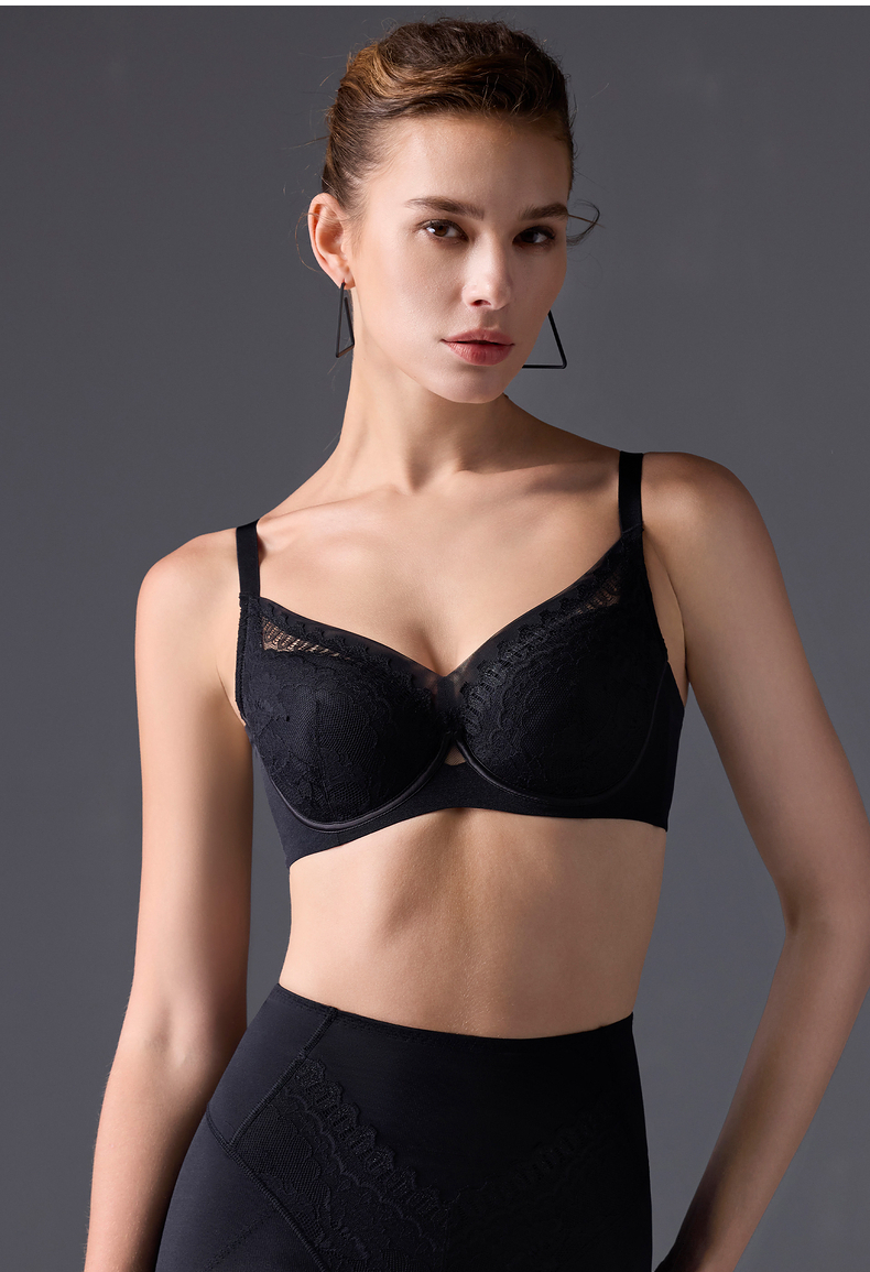 爱慕美体简塑内衣女3/4软钢圈无纺布大胸显小蕾丝文胸