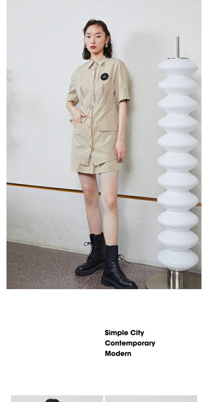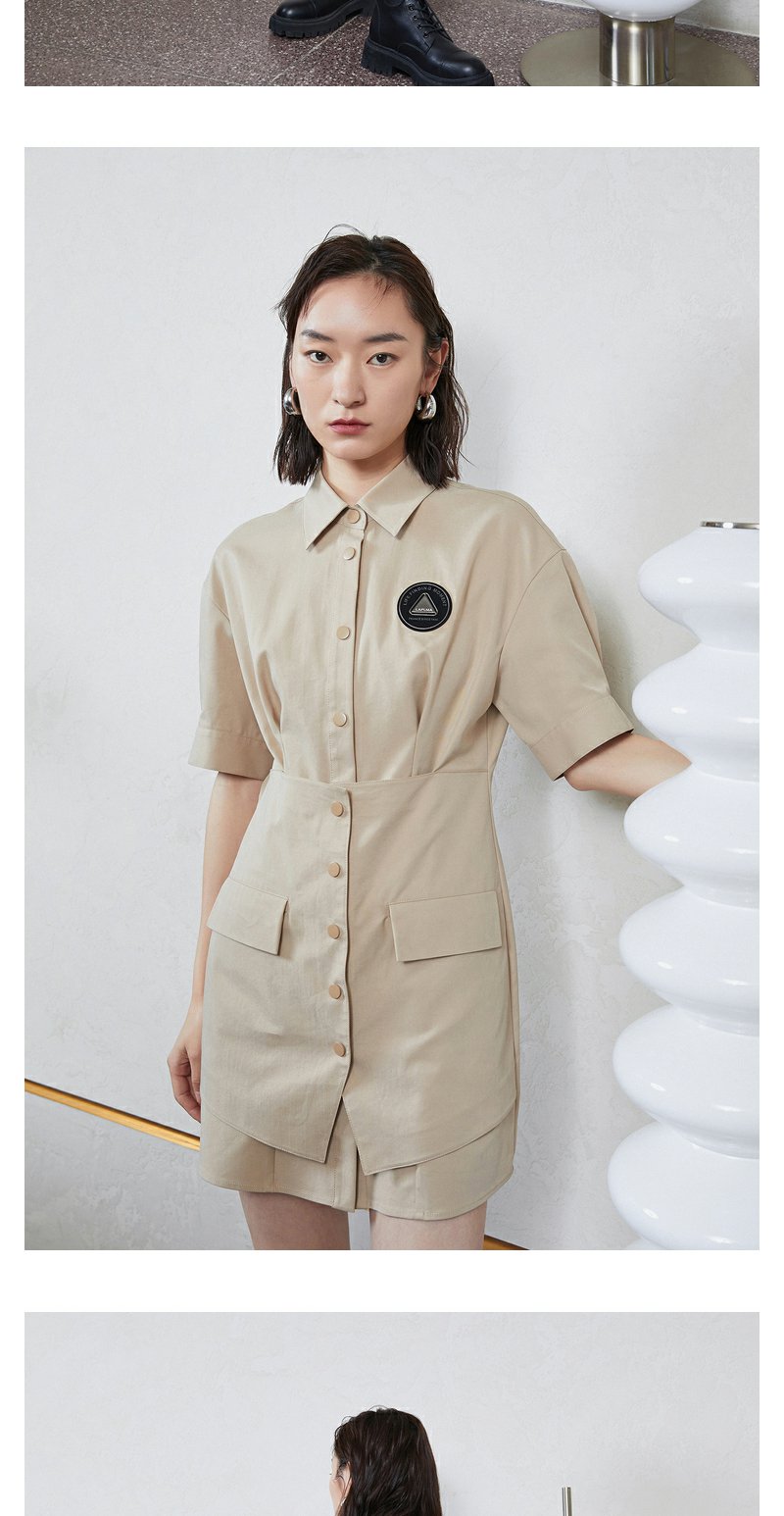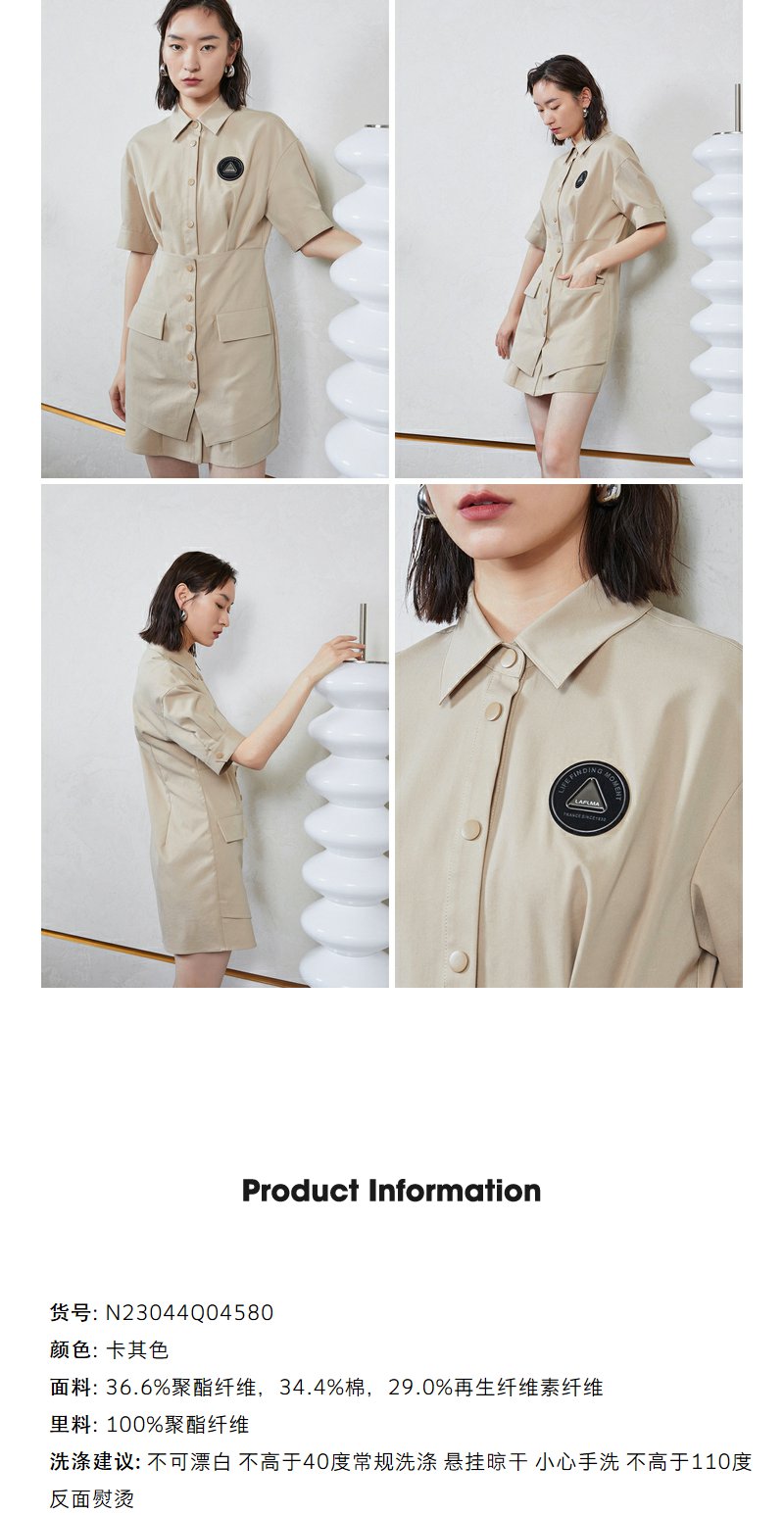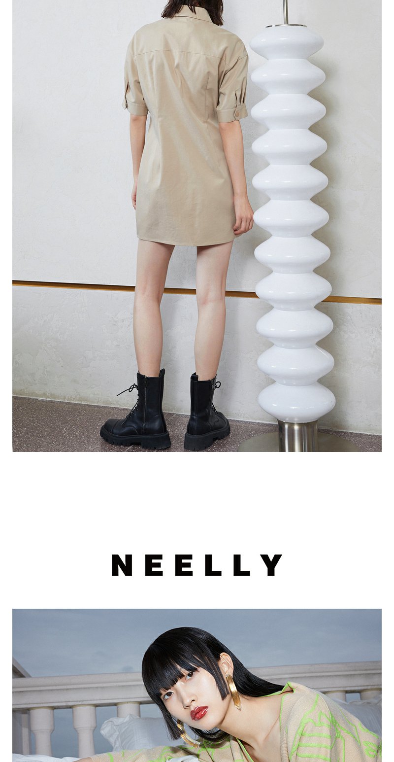 NEELLY纳俪商场同款工装风甜酷飒假两件徽章拼接口袋衬衫连衣裙N23044Q04580