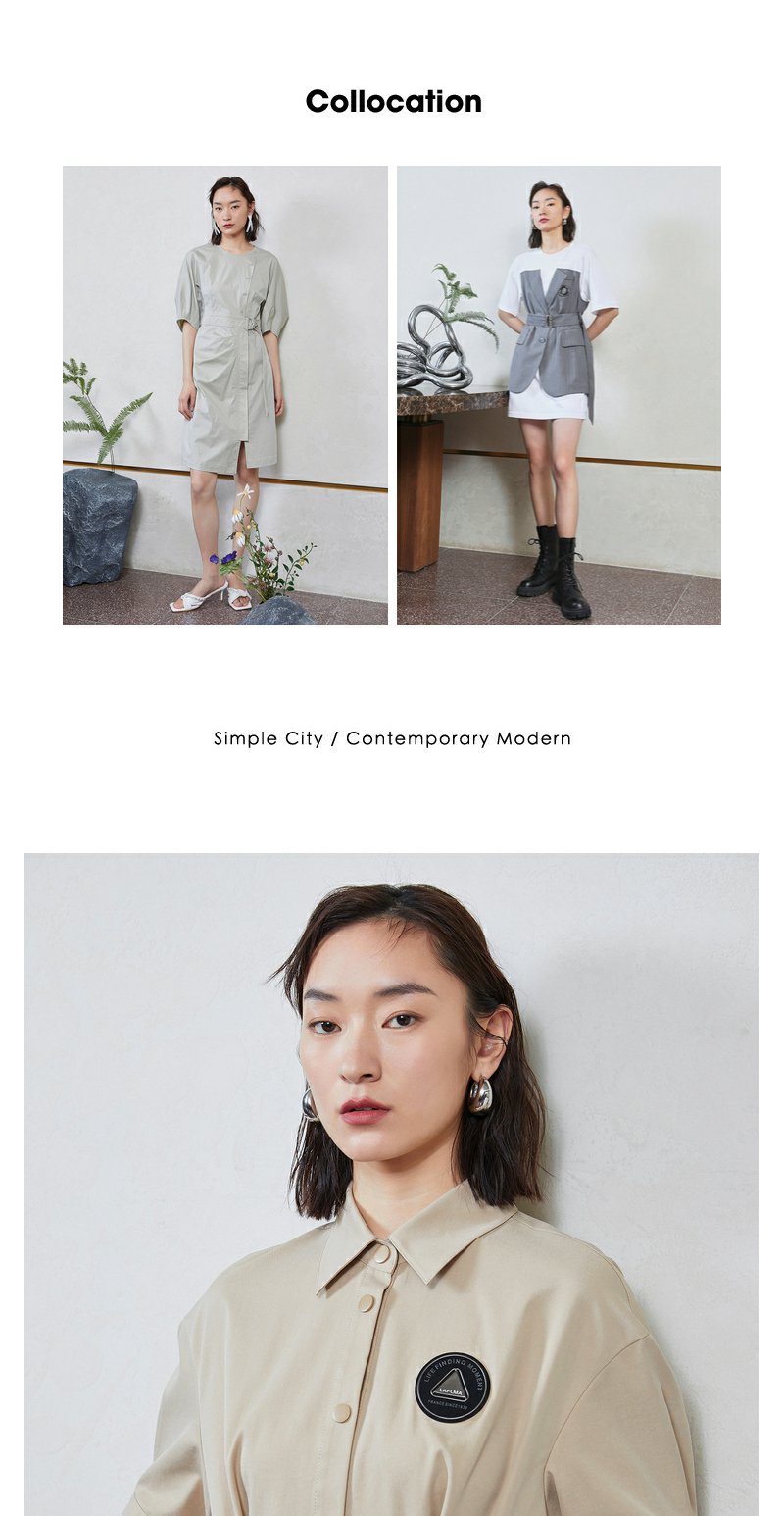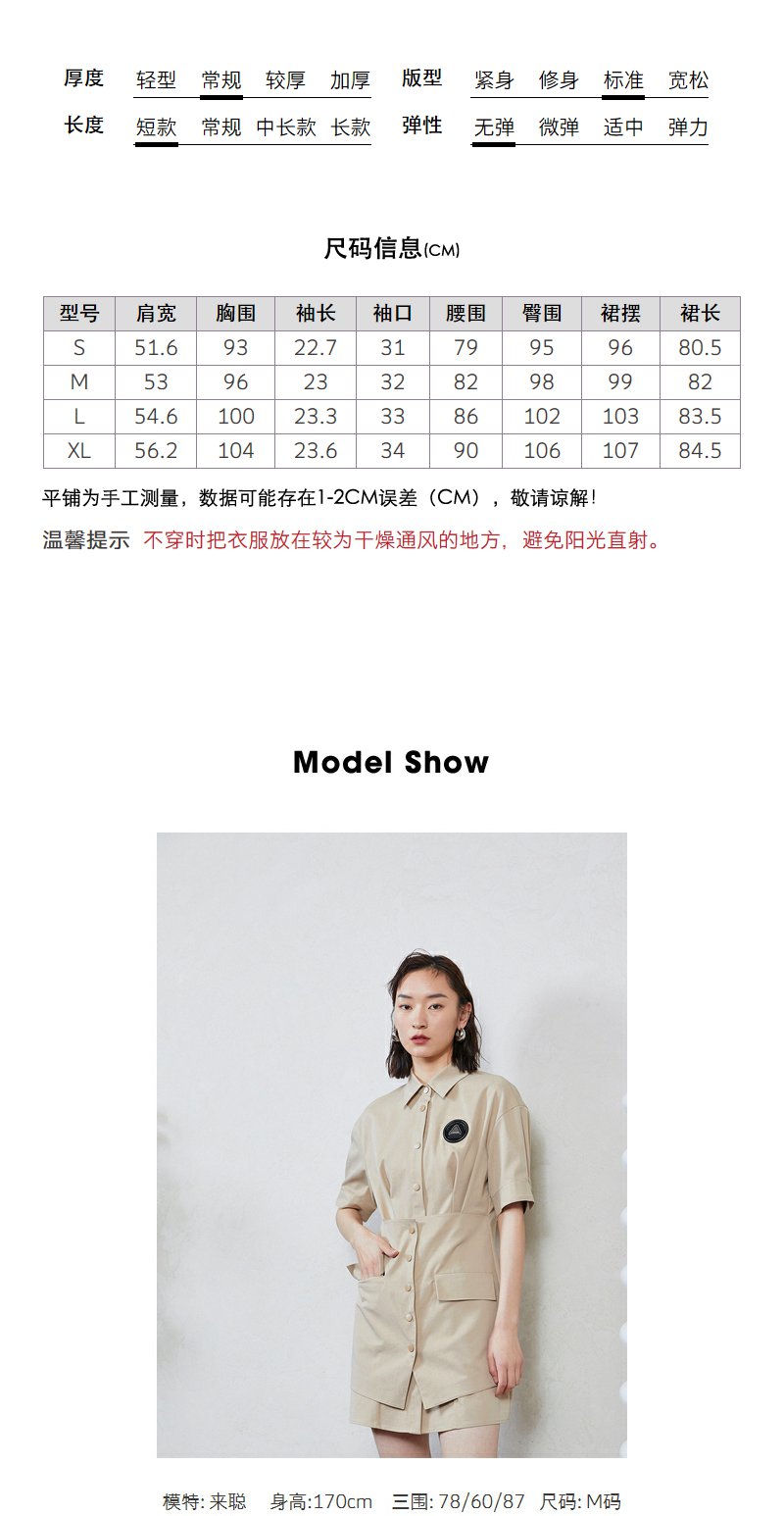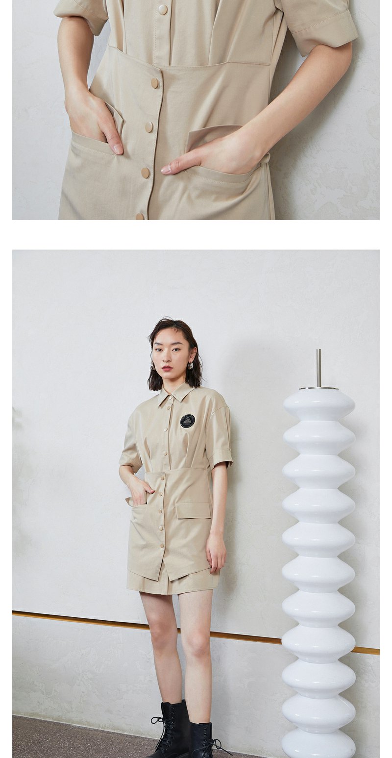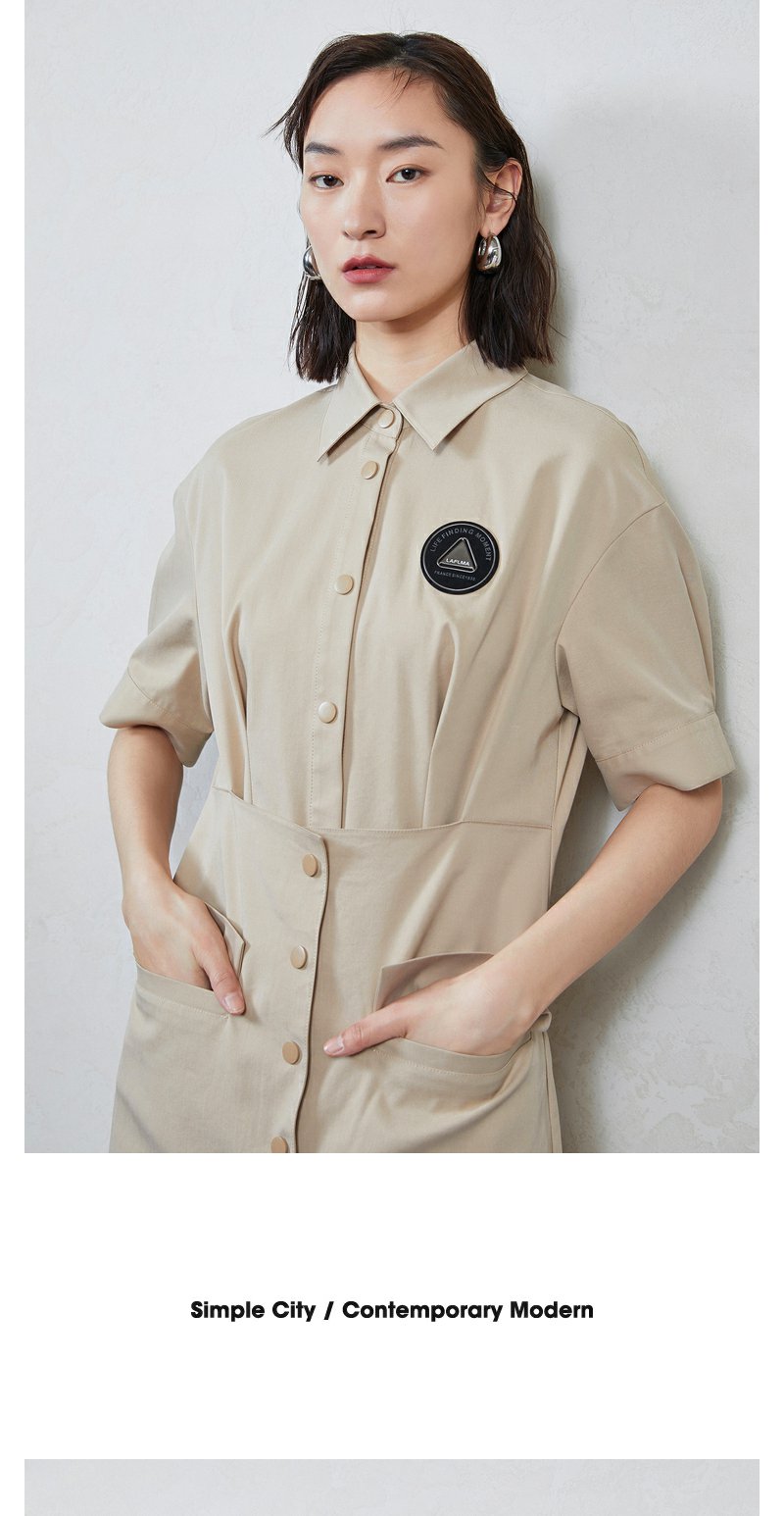 NEELLY纳俪商场同款工装风甜酷飒假两件徽章拼接口袋衬衫连衣裙N23044Q04580