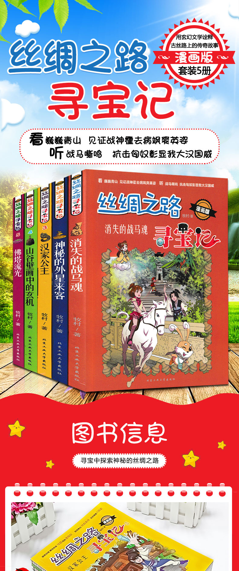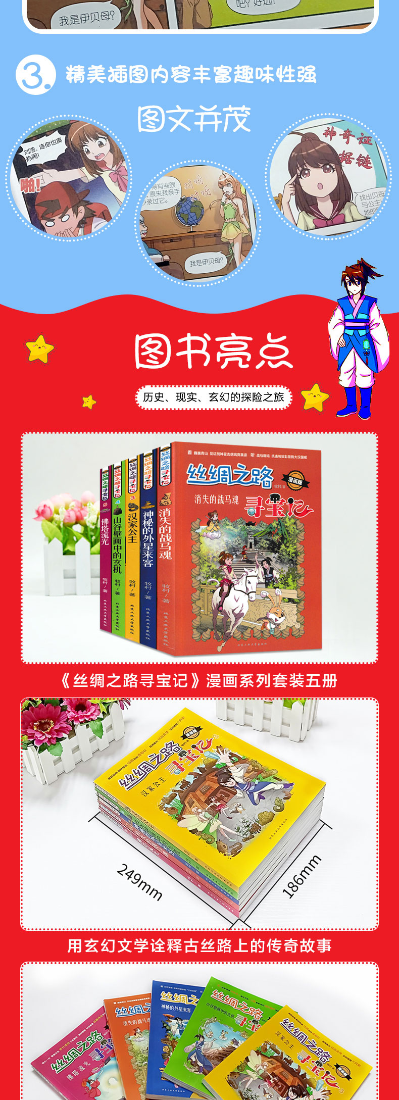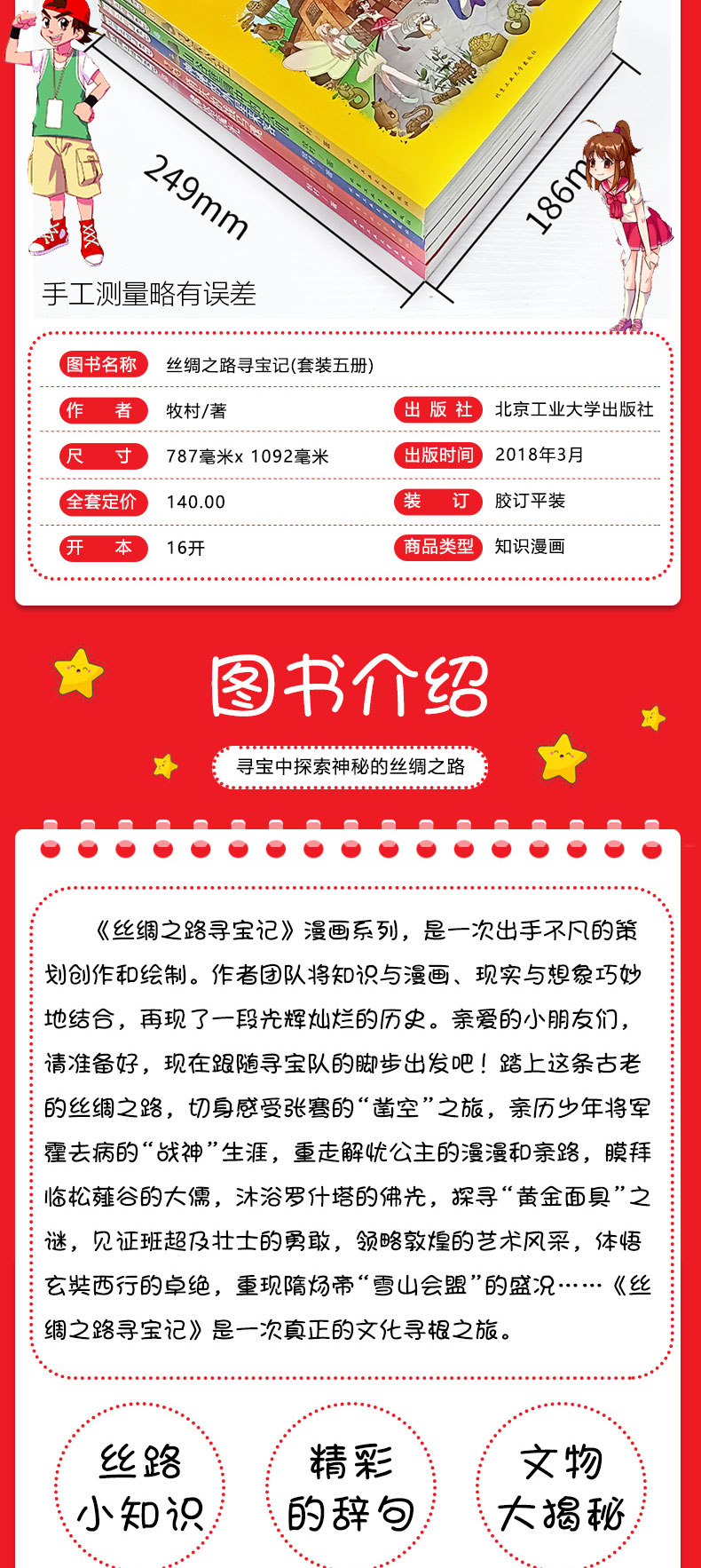 【优惠套装】正版赠长袜子皮皮 丝绸之路寻宝记全5册大中华寻宝记系列全套少儿百科全书漫画故事书小学生课外阅读书籍儿童读物百问百答儿童文学