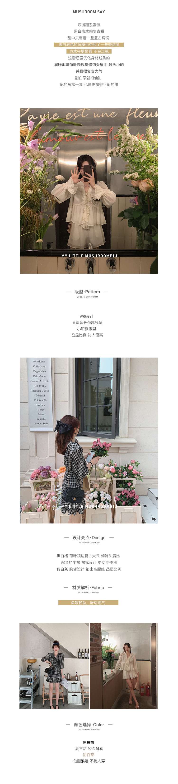金蘑菇菇【韩综恋爱系套装】浪漫甜系百搭复古休闲高级感两件套