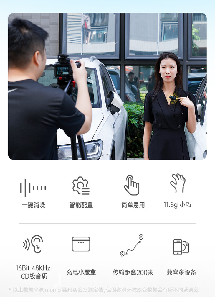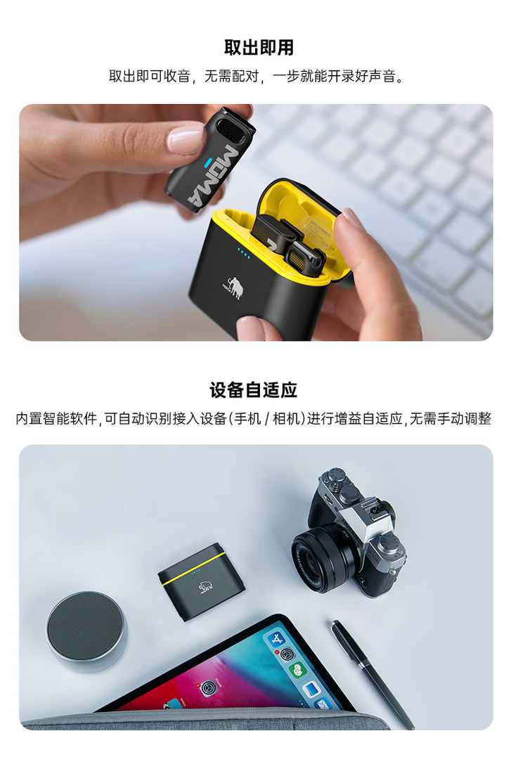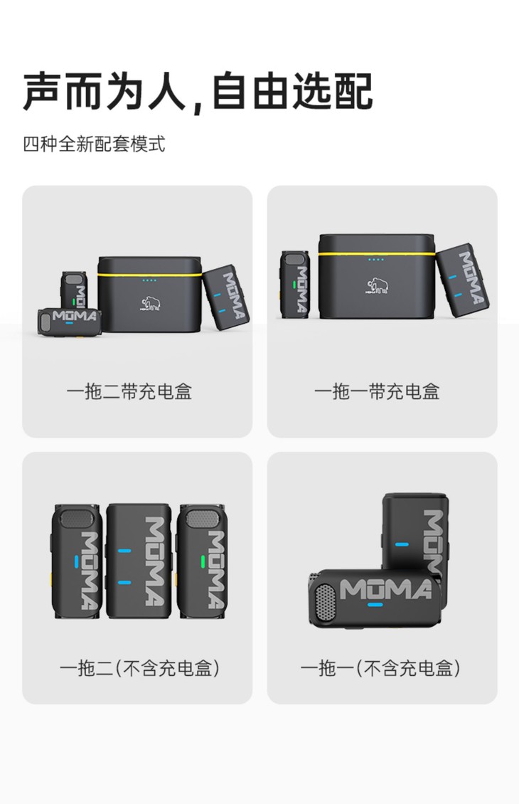 狼族优选丨猛玛(MOMA)无线麦克风领夹麦克风猛犸larkm1一拖二小蜜蜂vlog采访户外直播录音手机单反收音麦 LARK M1