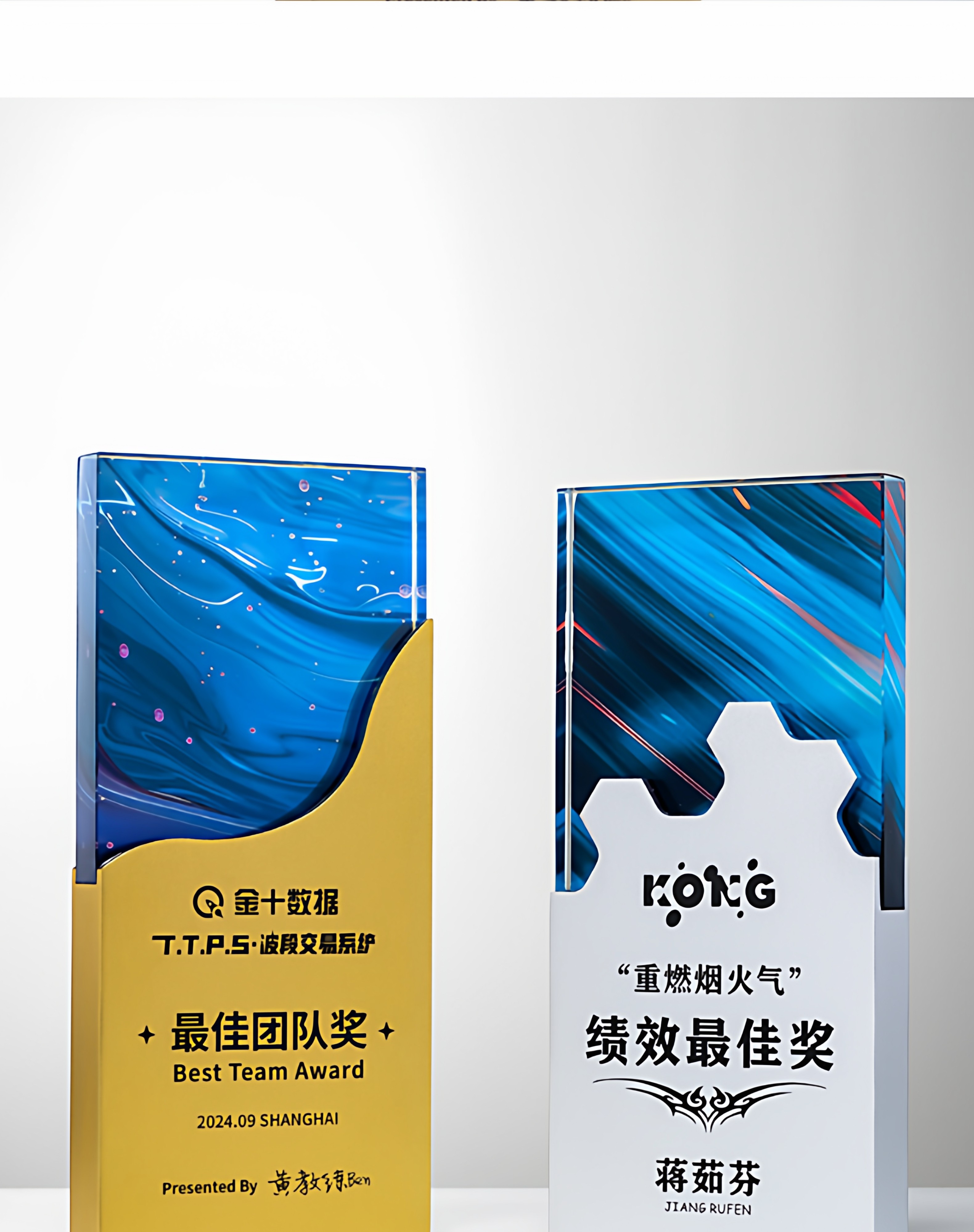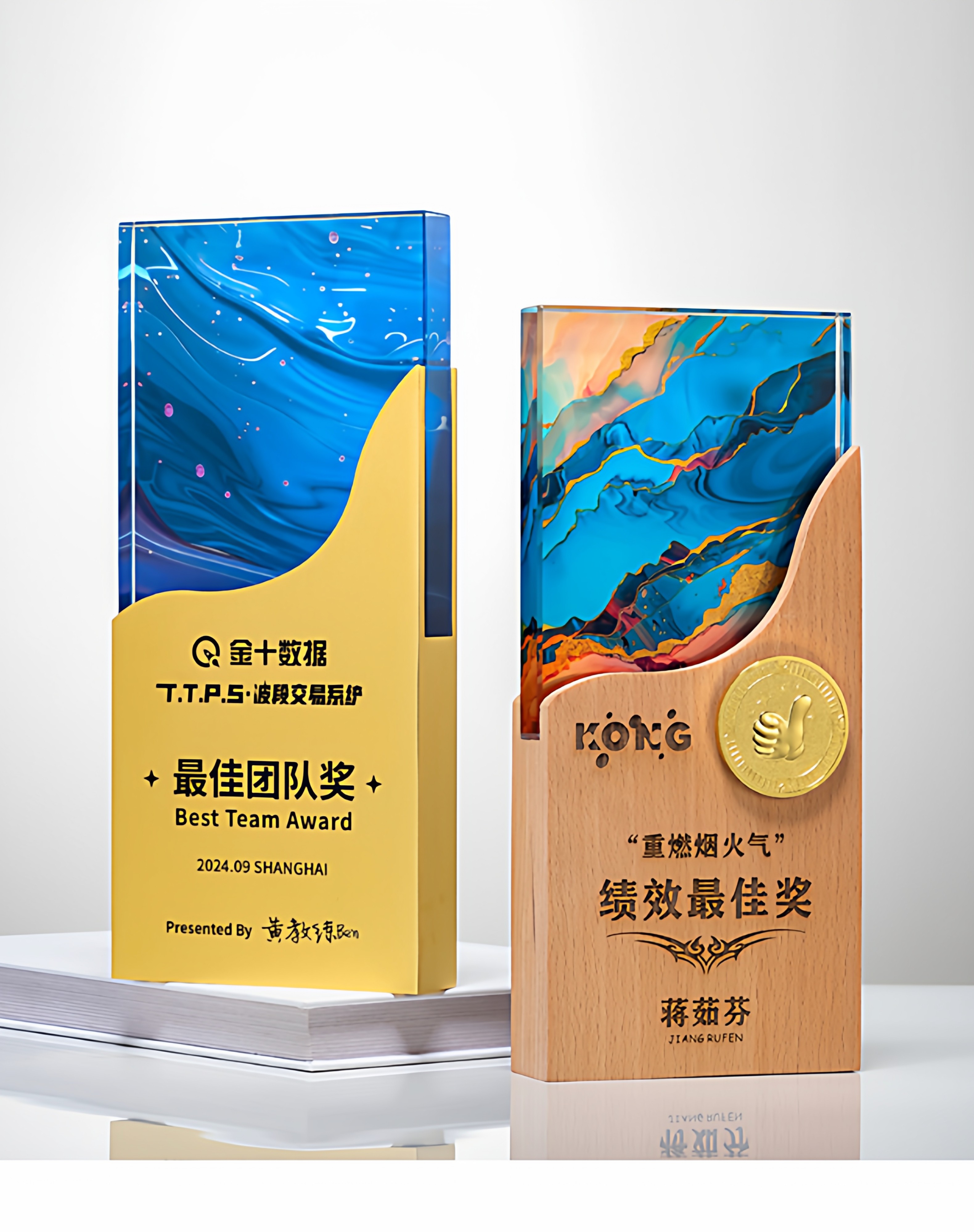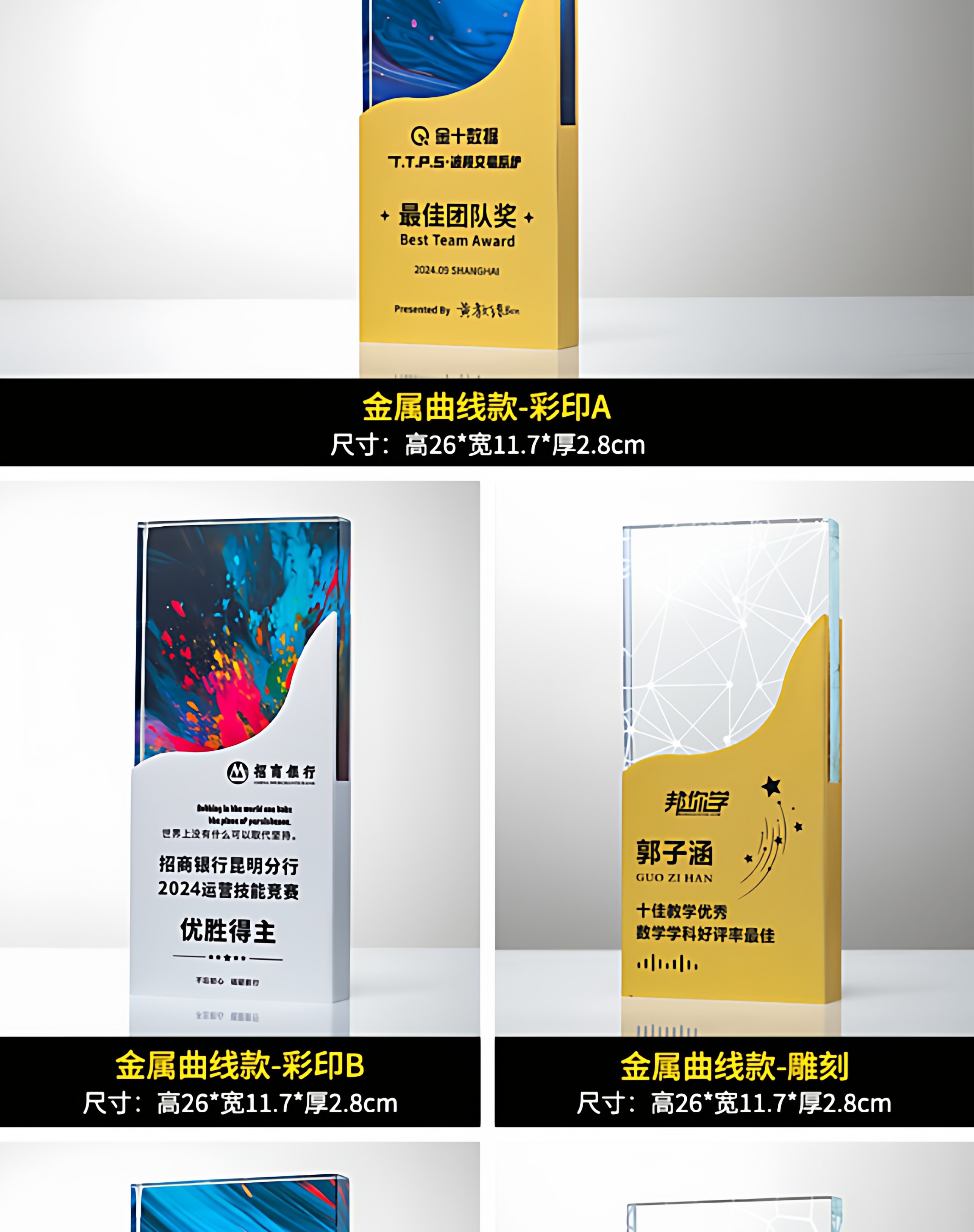 奖杯定制做授权牌经销年会优秀员工刻字金属铝板高端水晶立体奖牌
