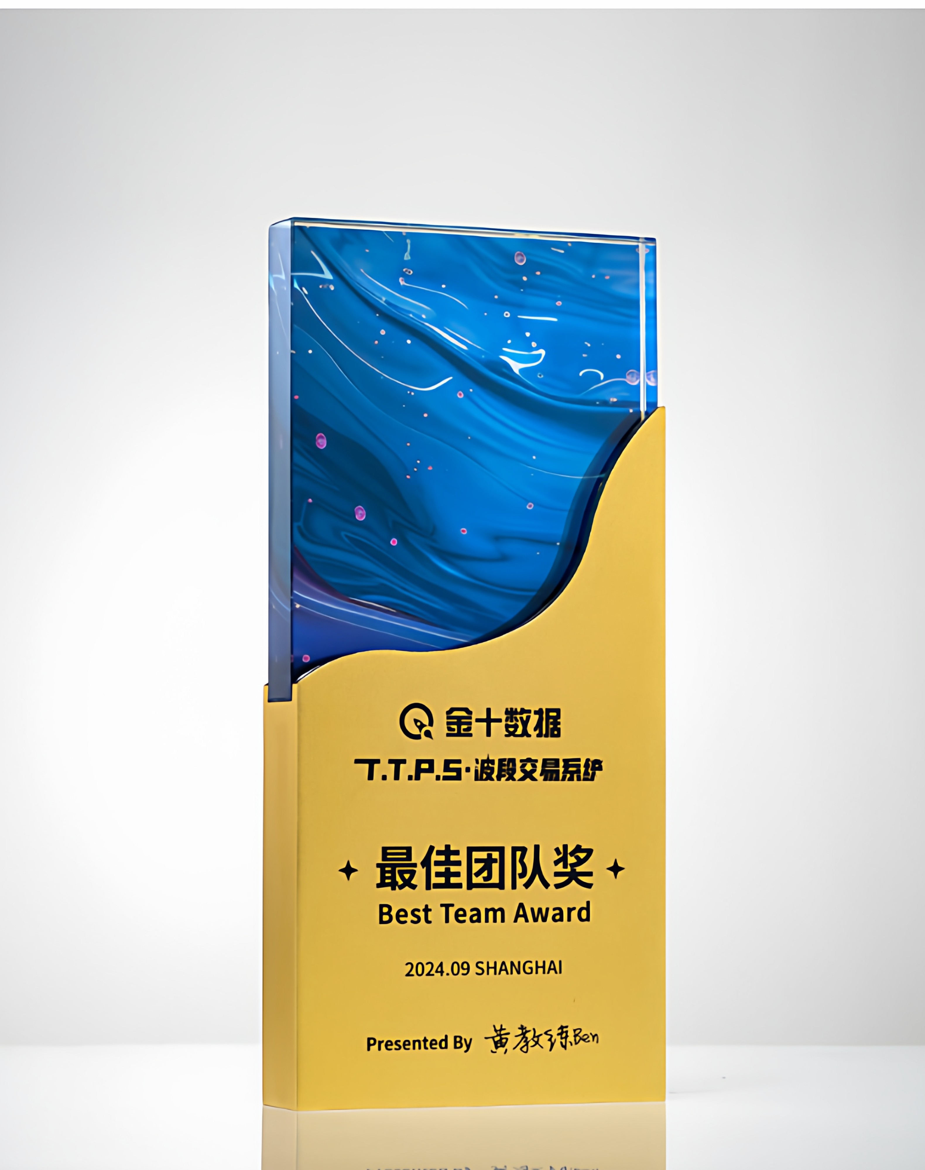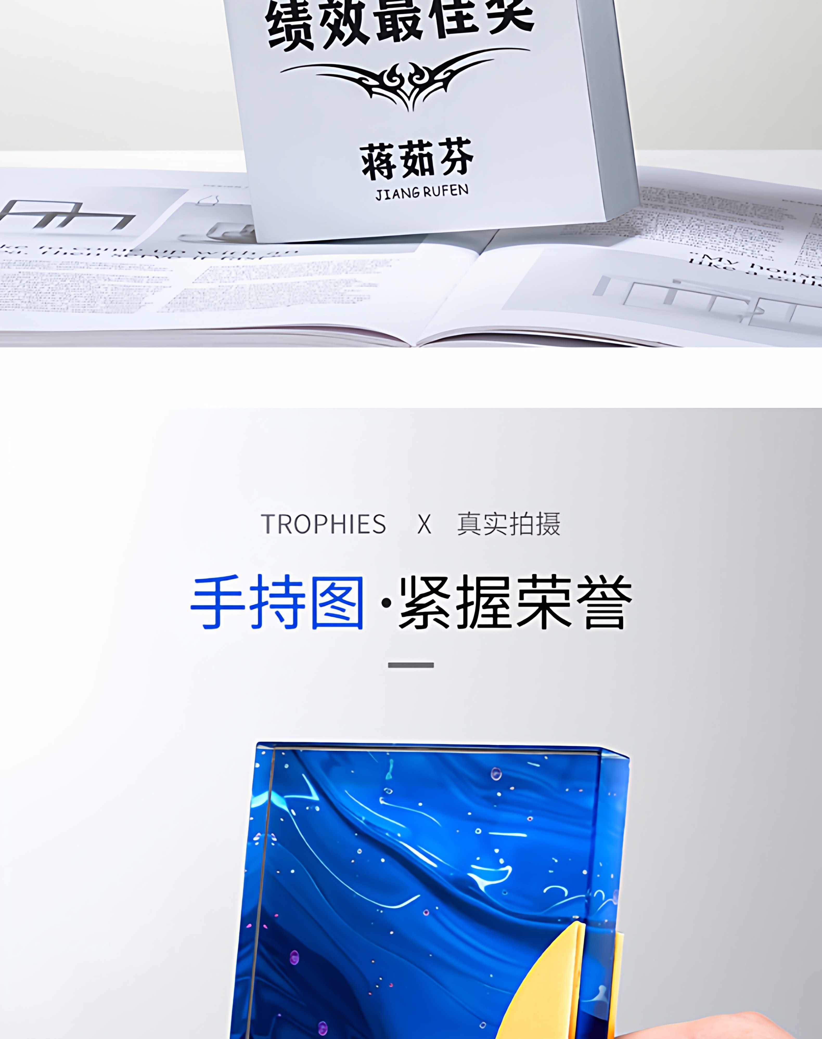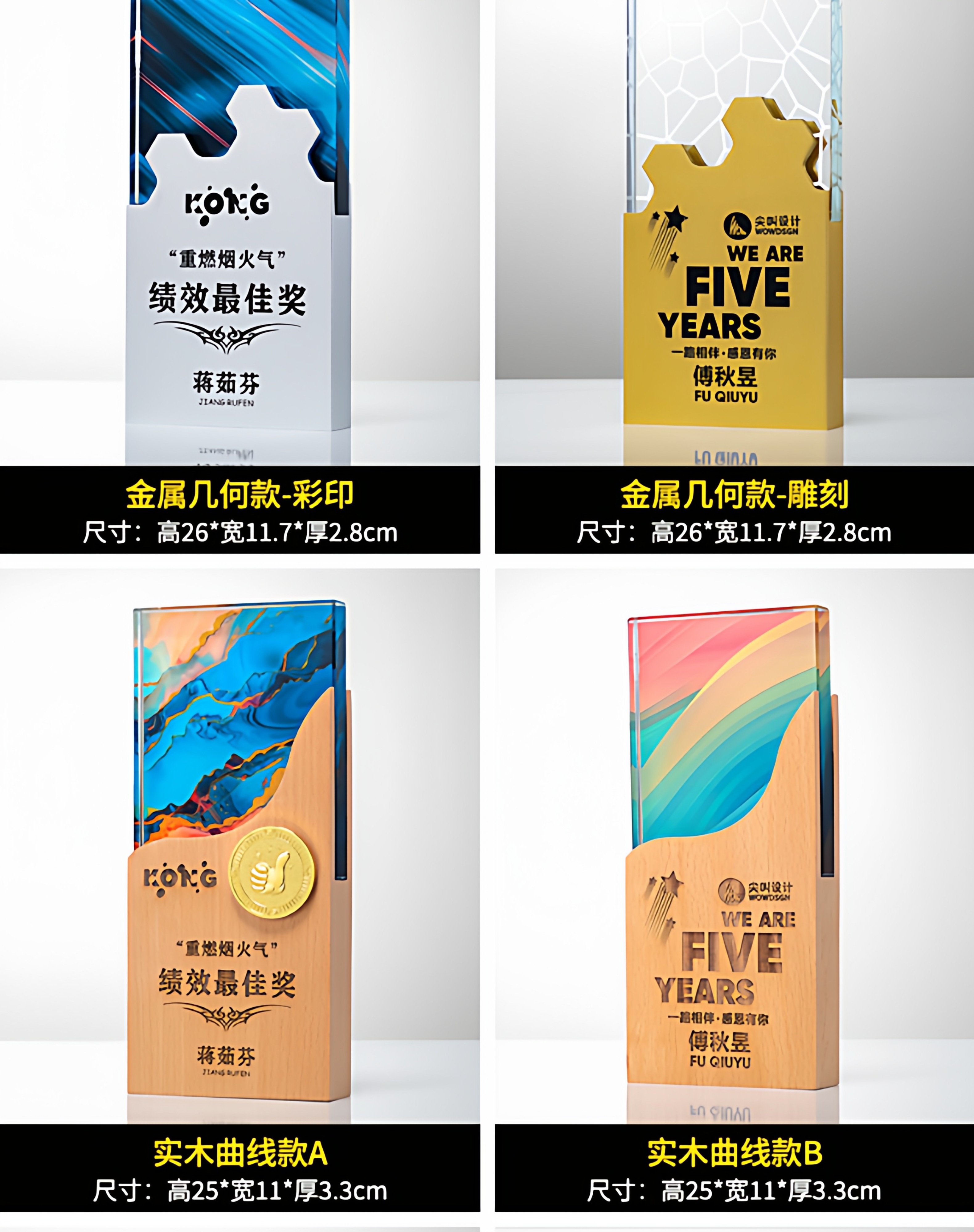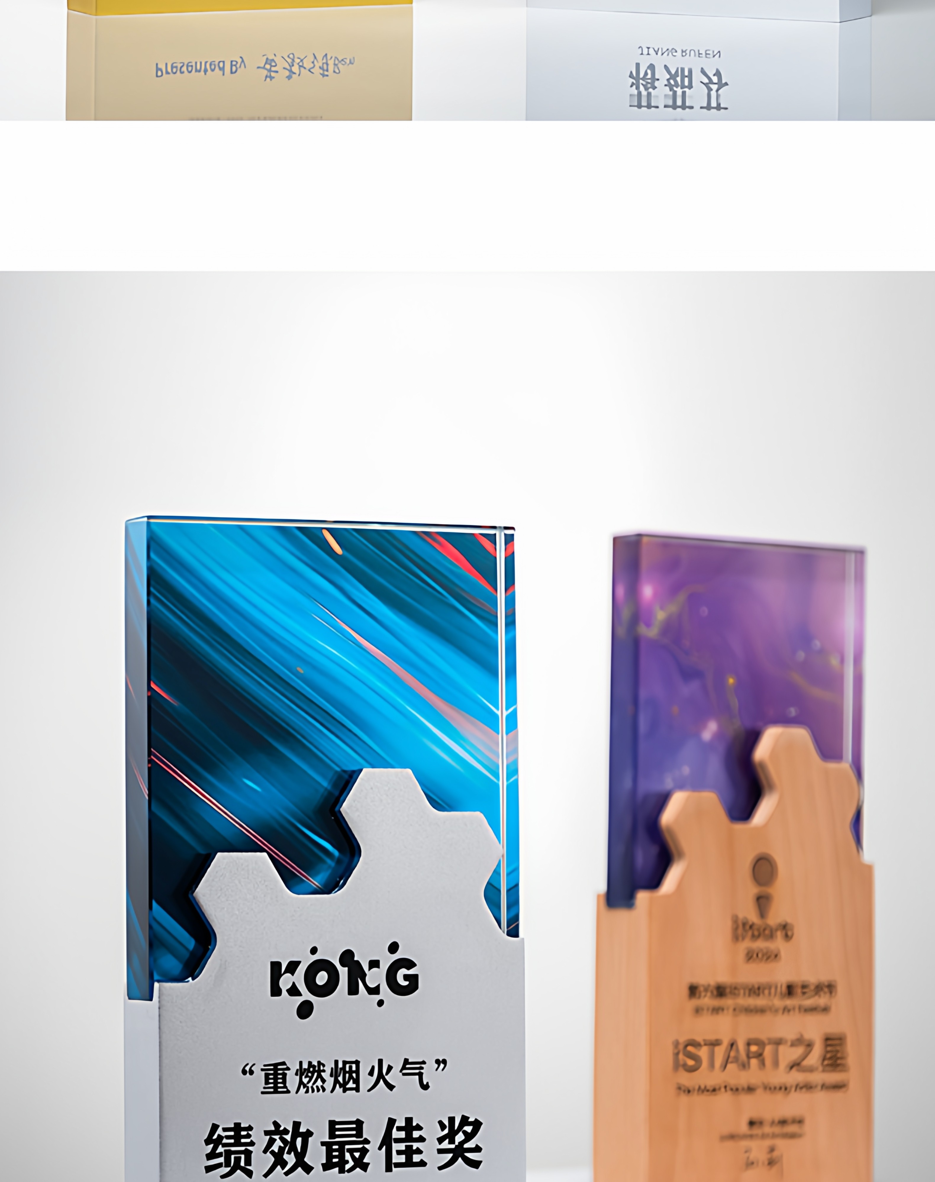 奖杯定制做授权牌经销年会优秀员工刻字金属铝板高端水晶立体奖牌
