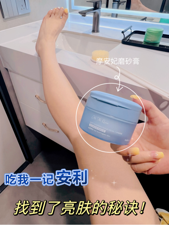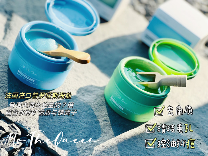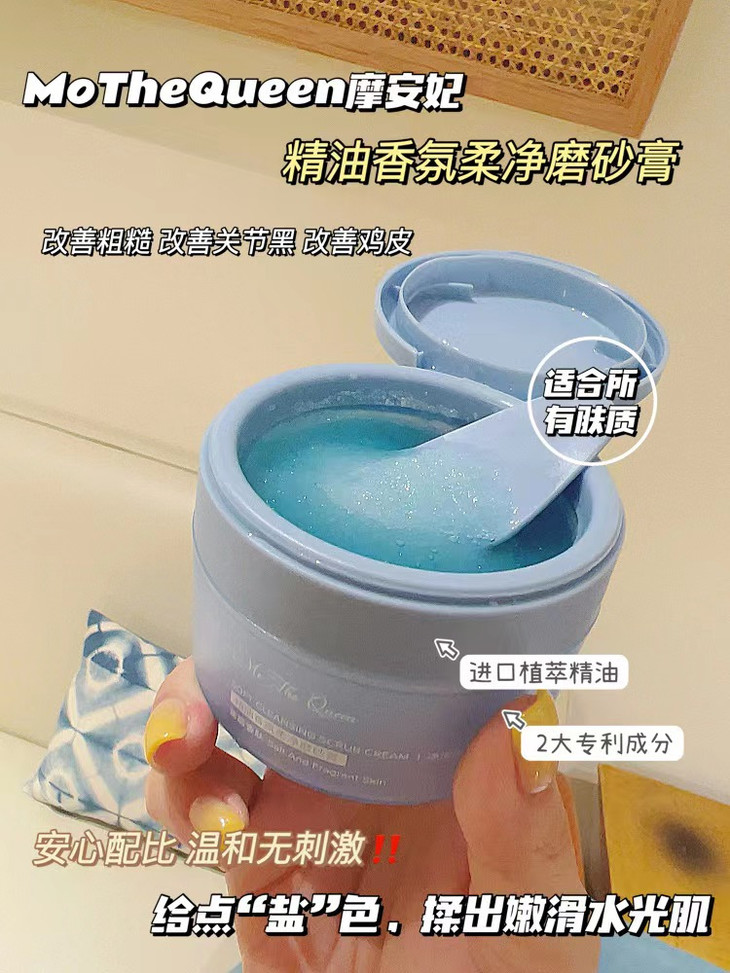 一般磨砂膏都是采用胡桃壳作为磨砂颗粒 只能达到基础的去角质效果 而 MoTheQueen的磨砂膏采用的是法国普罗旺斯海盐 是普通大海含盐量的 7 倍,蕴含多种矿物质与镁离子 不仅能去除老废角质,还有清洁毛孔、 控油抑痘、 舒缓肌肤的功效~ 哇~这不就是粗糙鸡皮girl们的菜么!