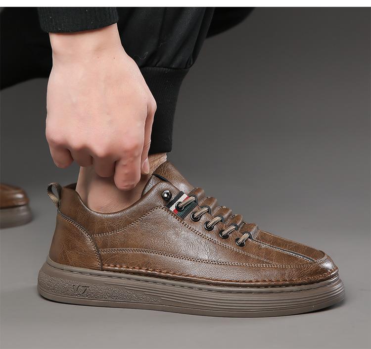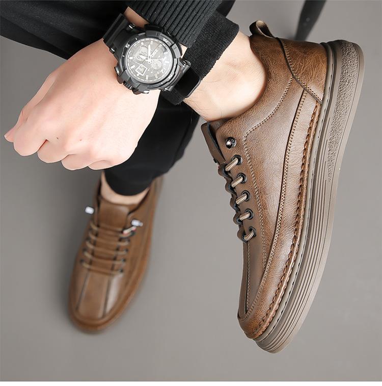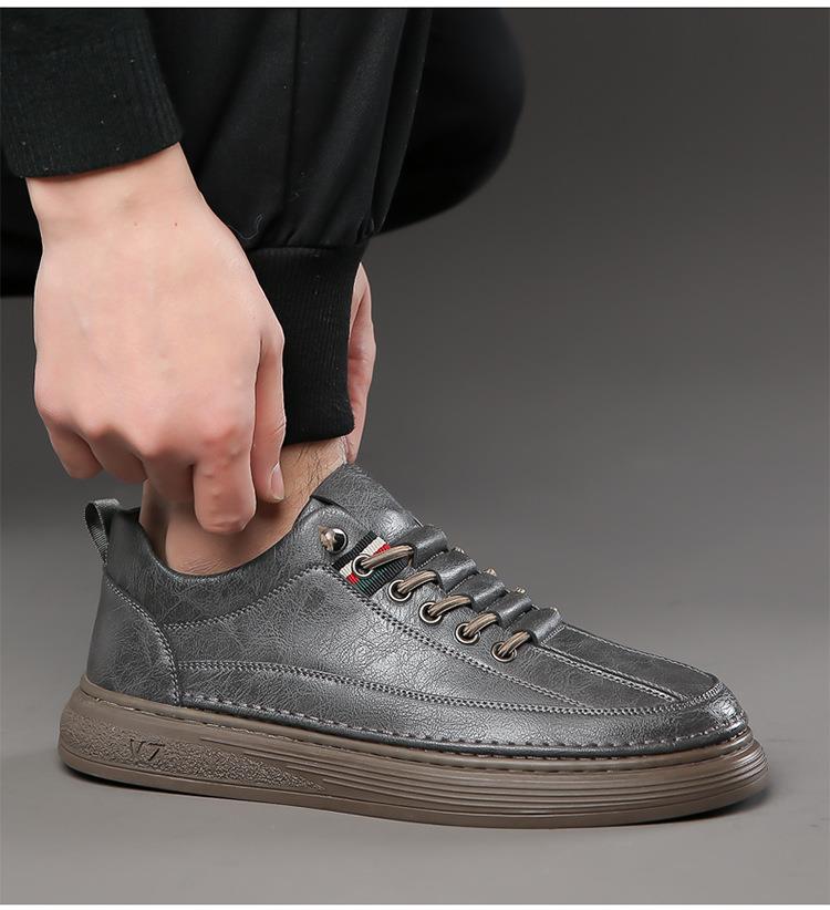 男士夏季真皮软面休闲运动板鞋男士春秋轻便软底开车皮鞋