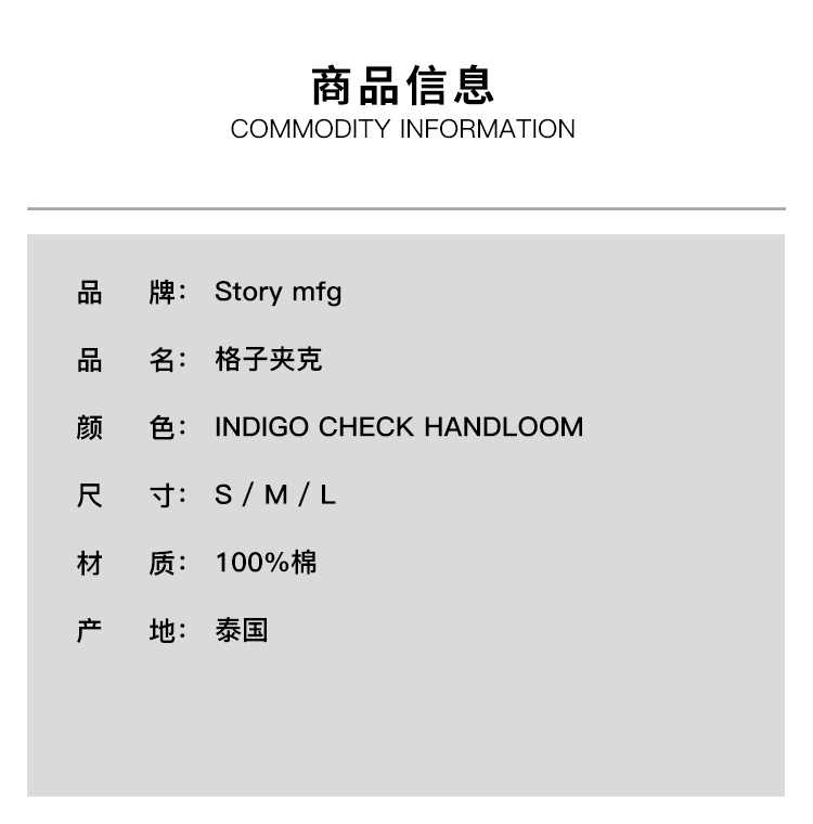 Story mfg SUNDAE JACKET 男女中性款天然染色格子短款夹克外套