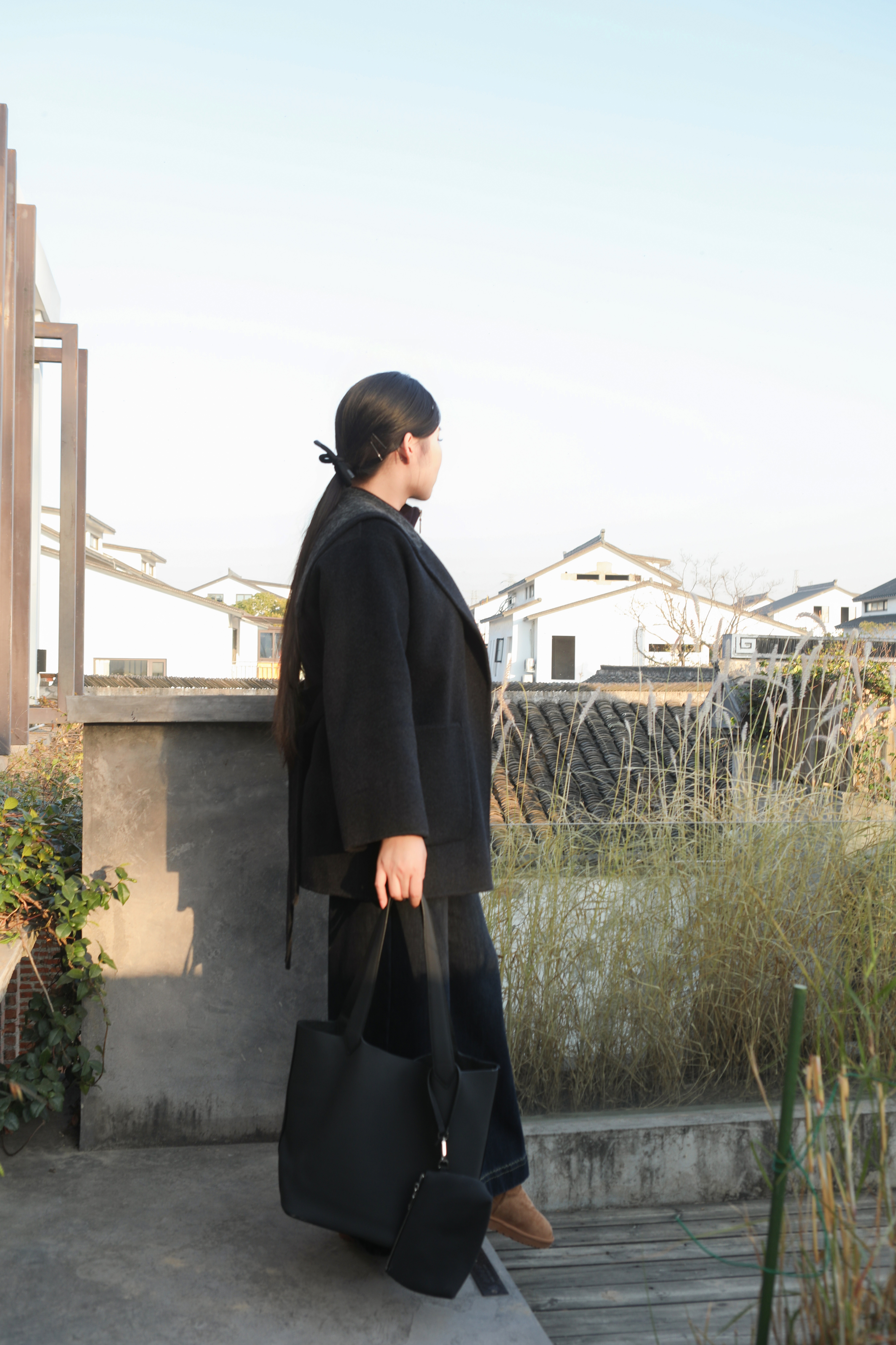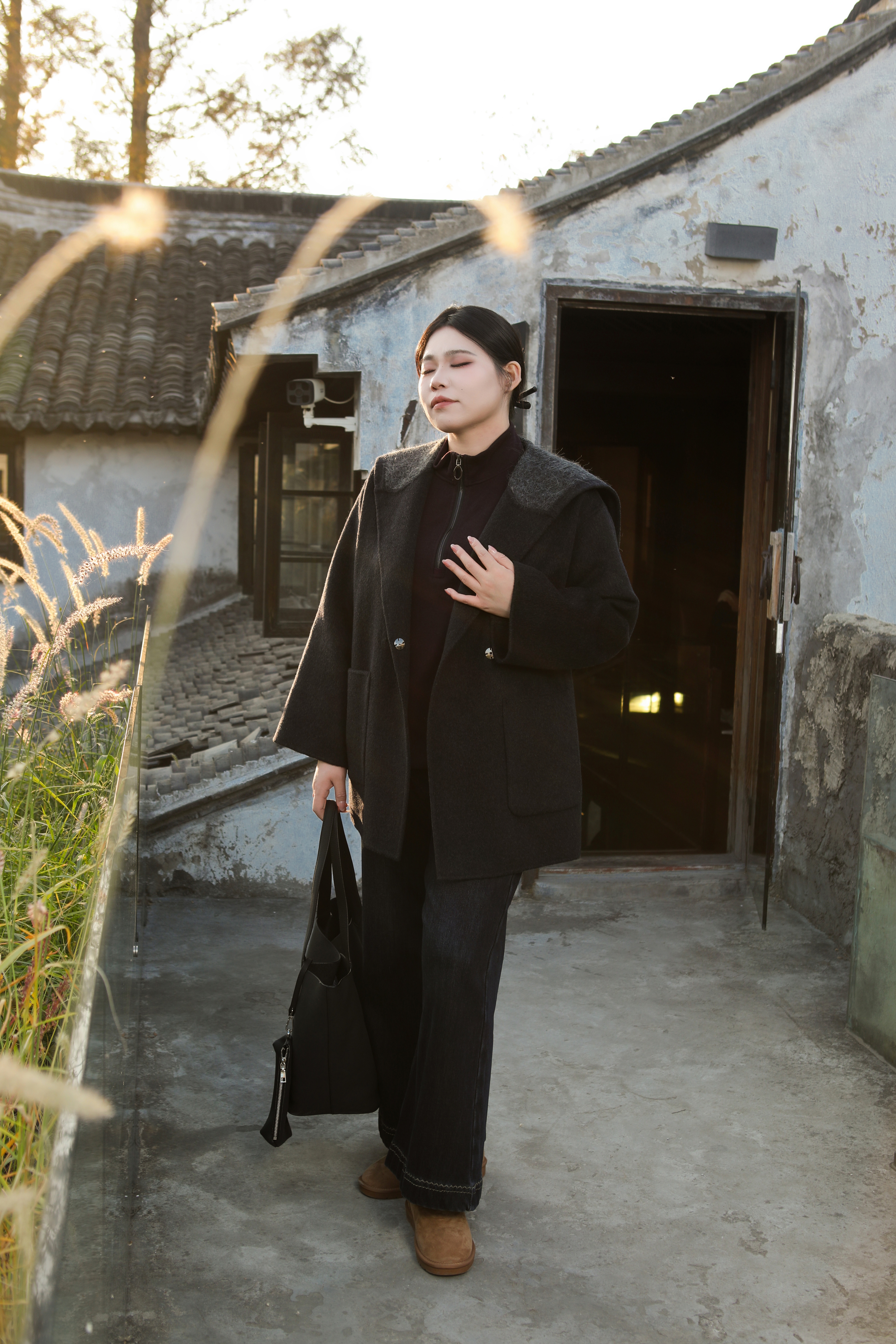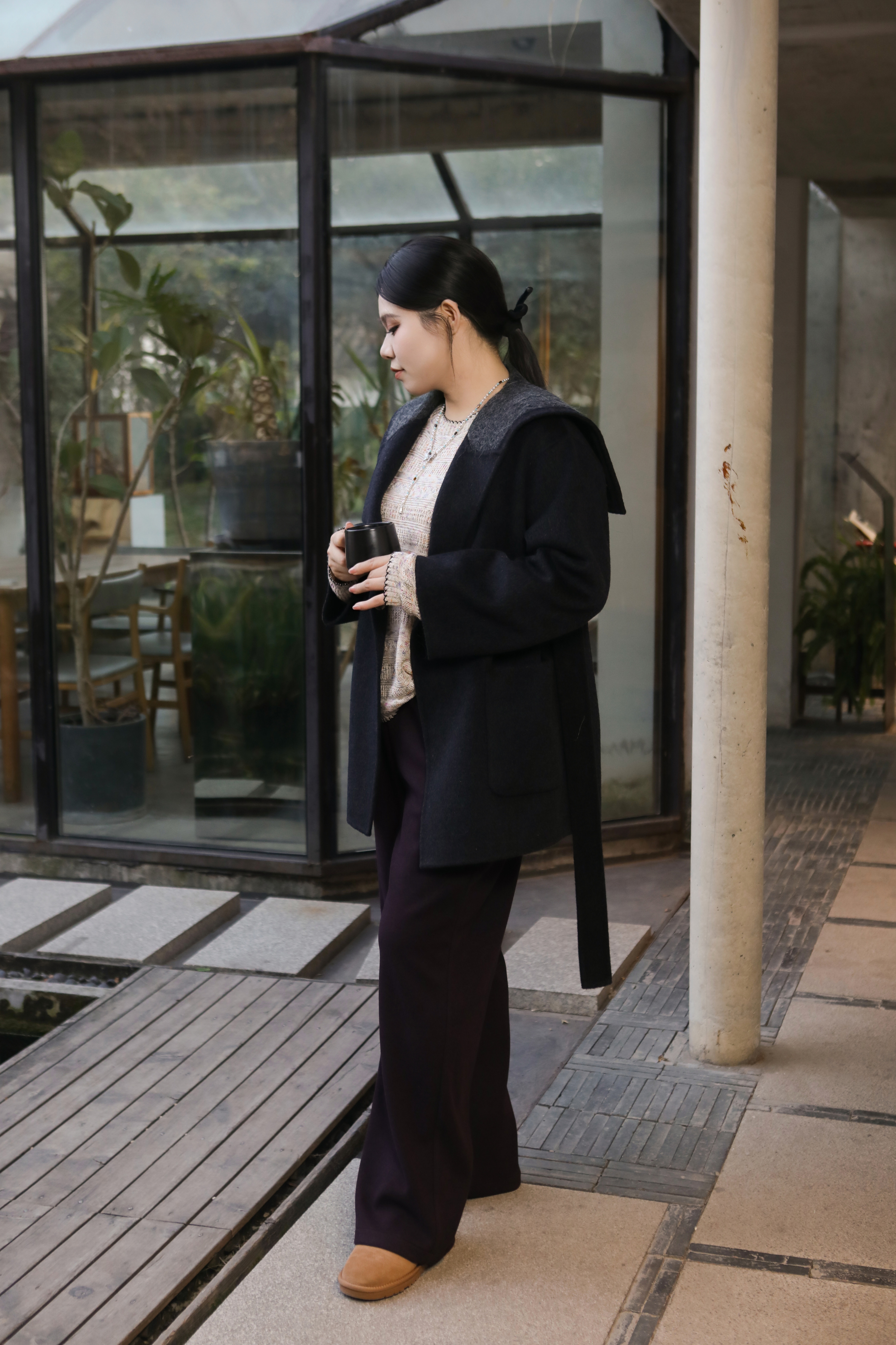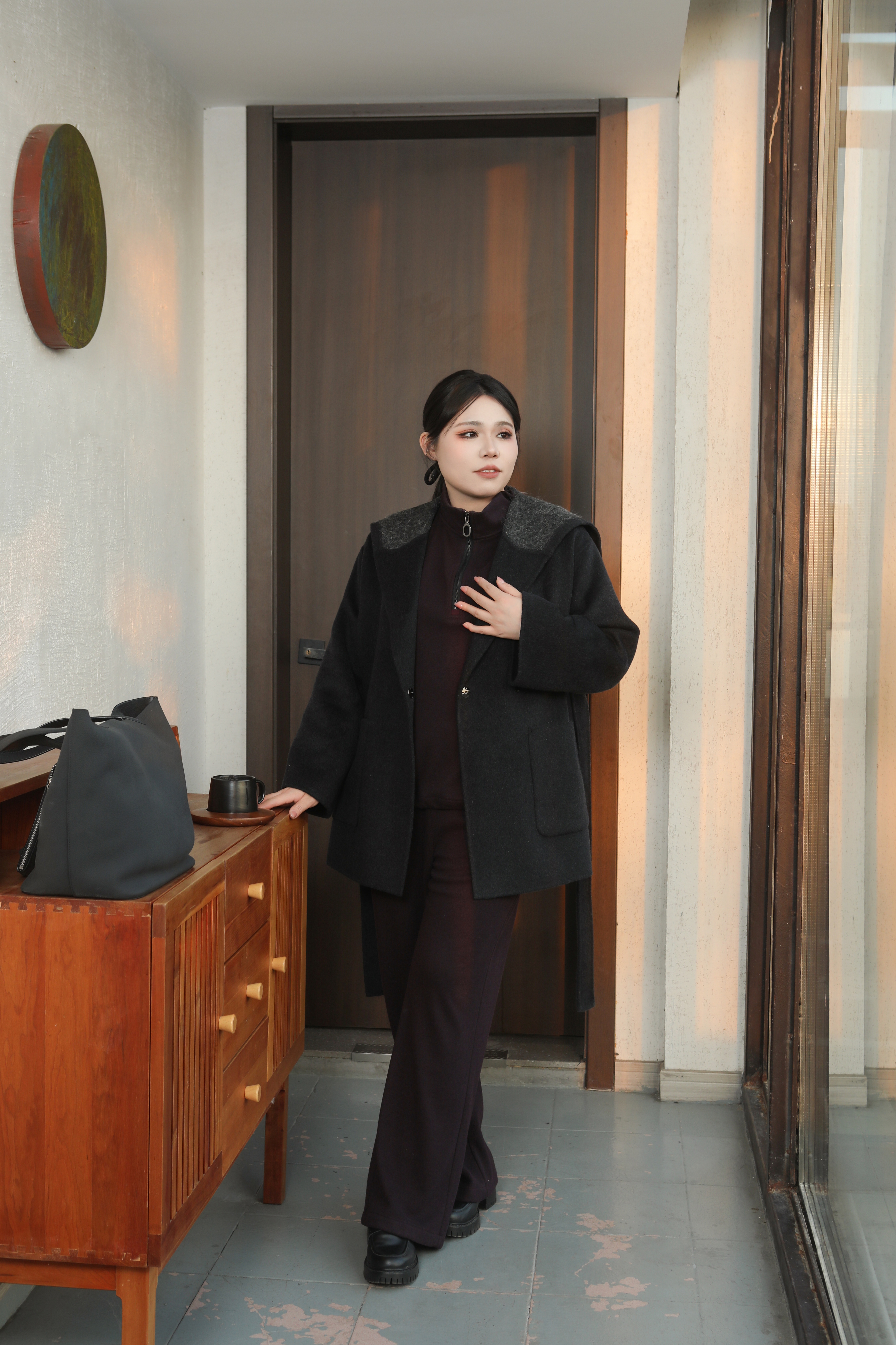 现货,秒拍秒发【绵羊毛双面呢大衣】宽松版,海军领披肩,经典高级黑灰色系,面料无弹,中长款,非常利落的秋冬大衣!面料:75.2%绵羊毛,14.6%聚酯纤维,8.1%莱赛尔,2.1%其他纤维;