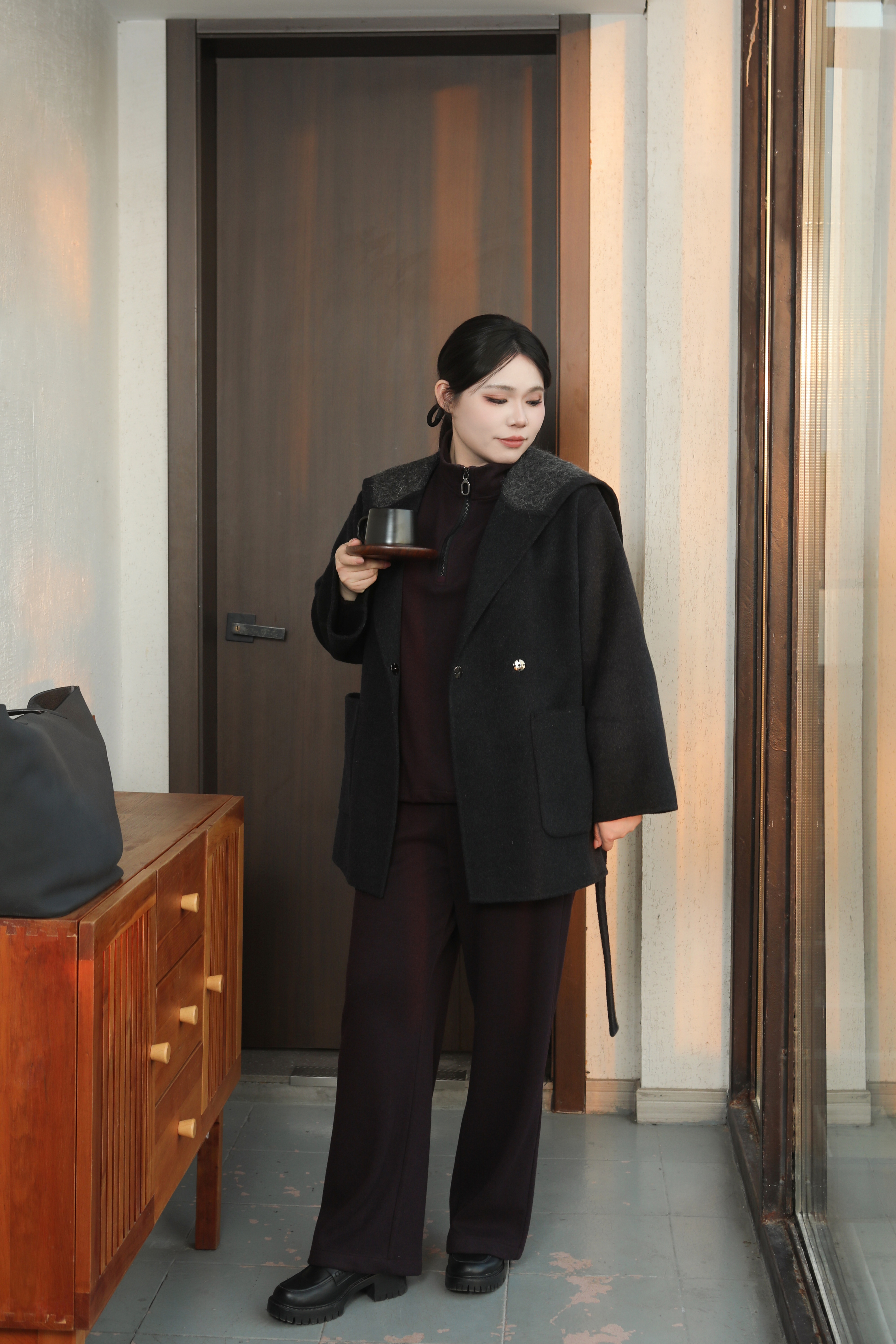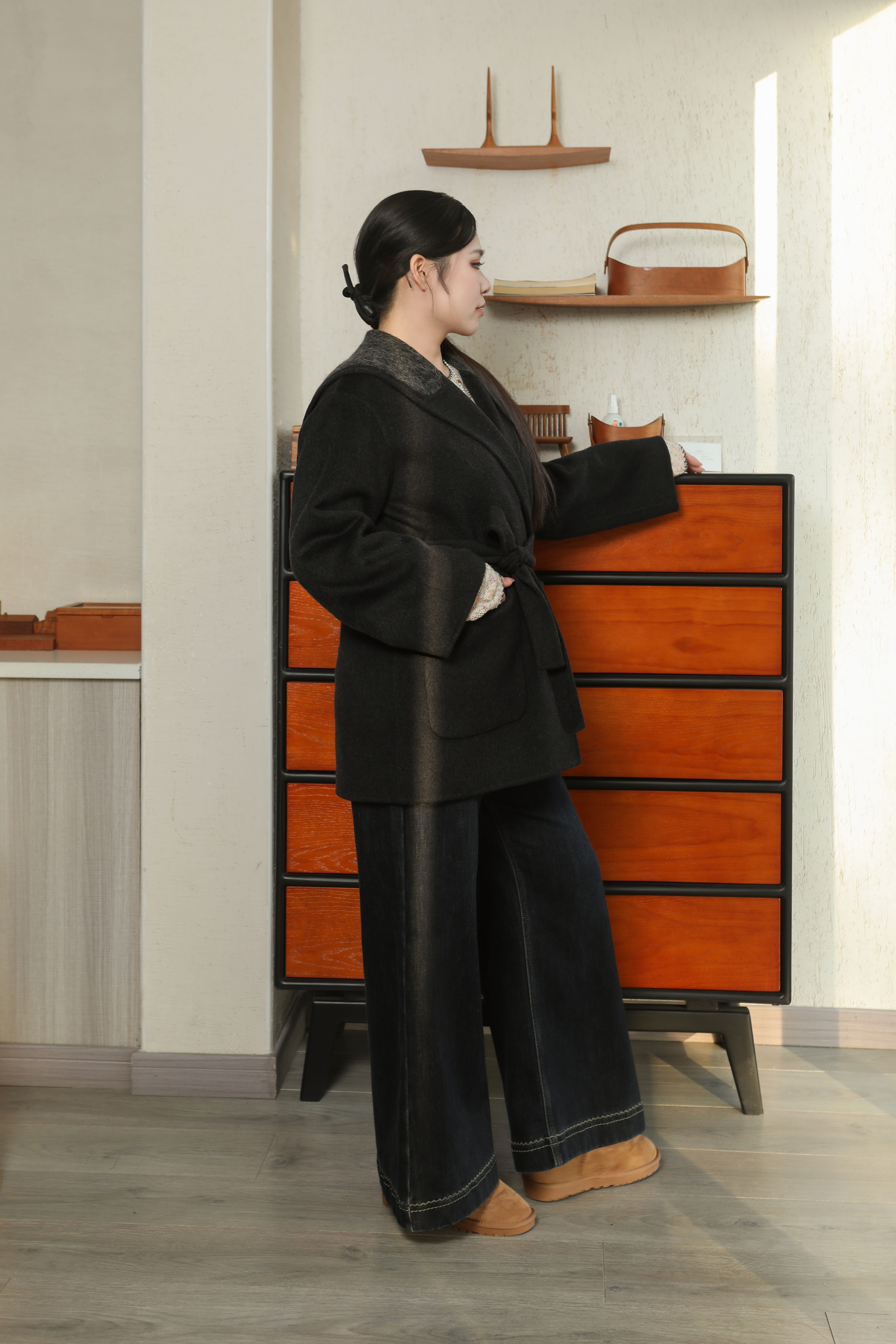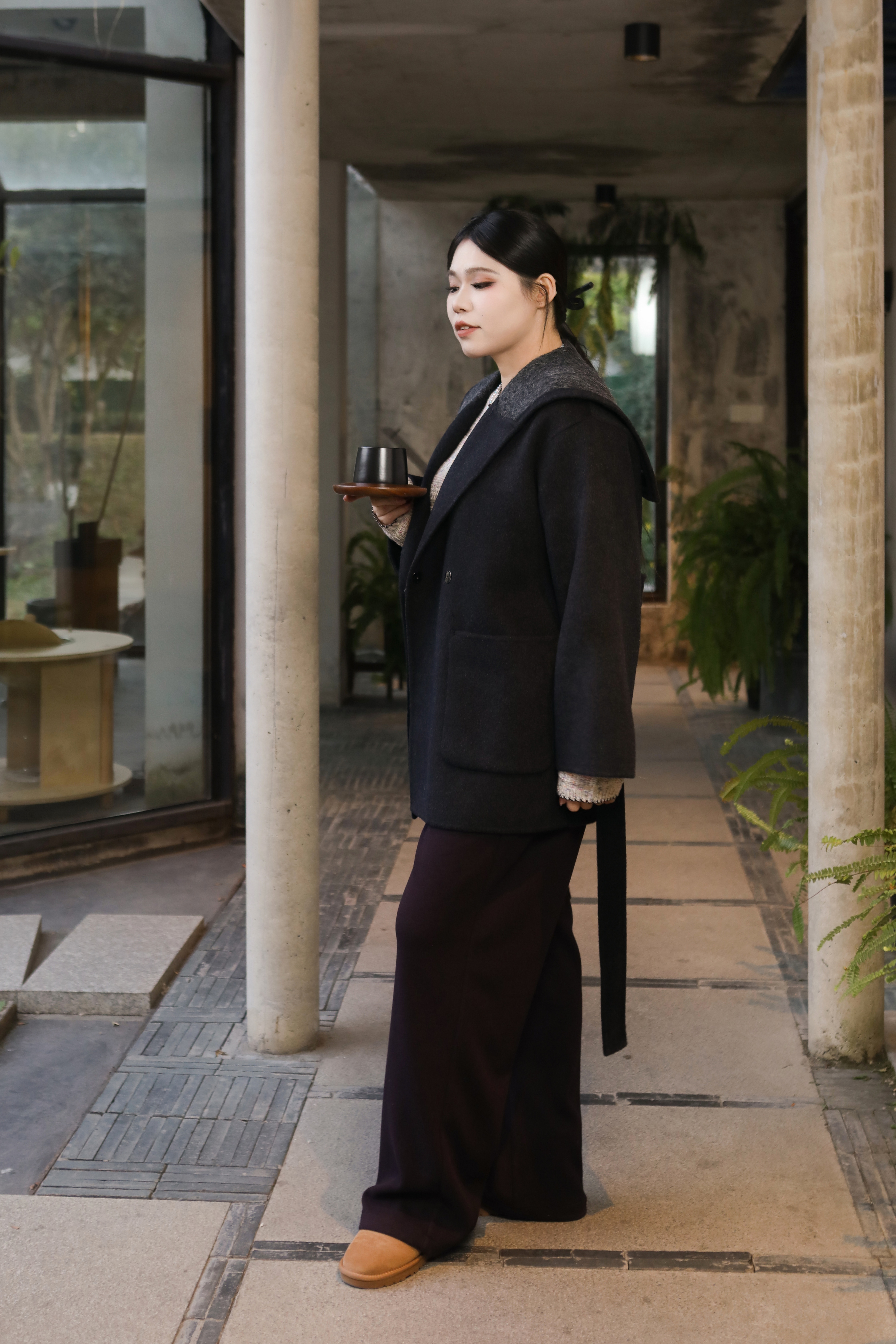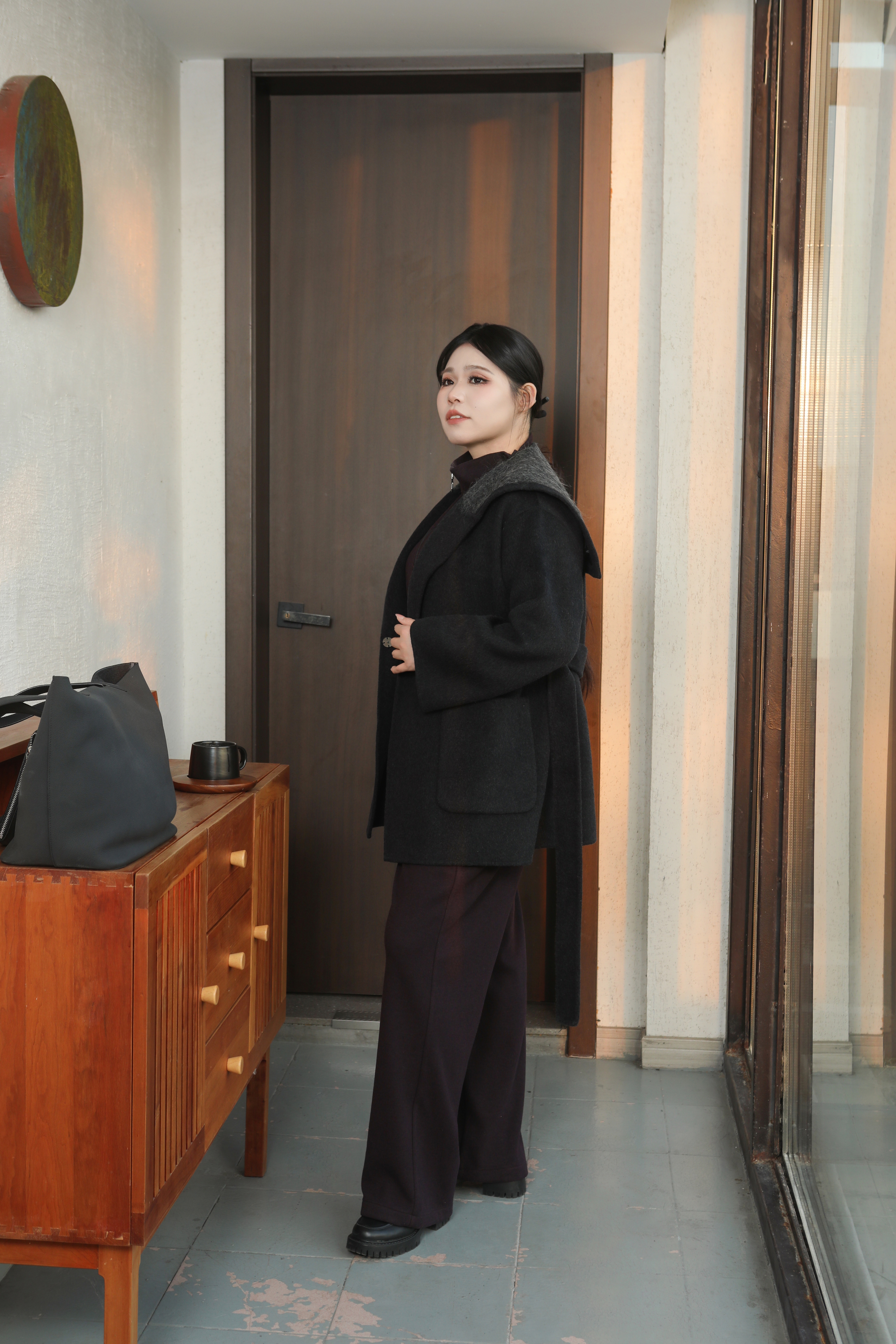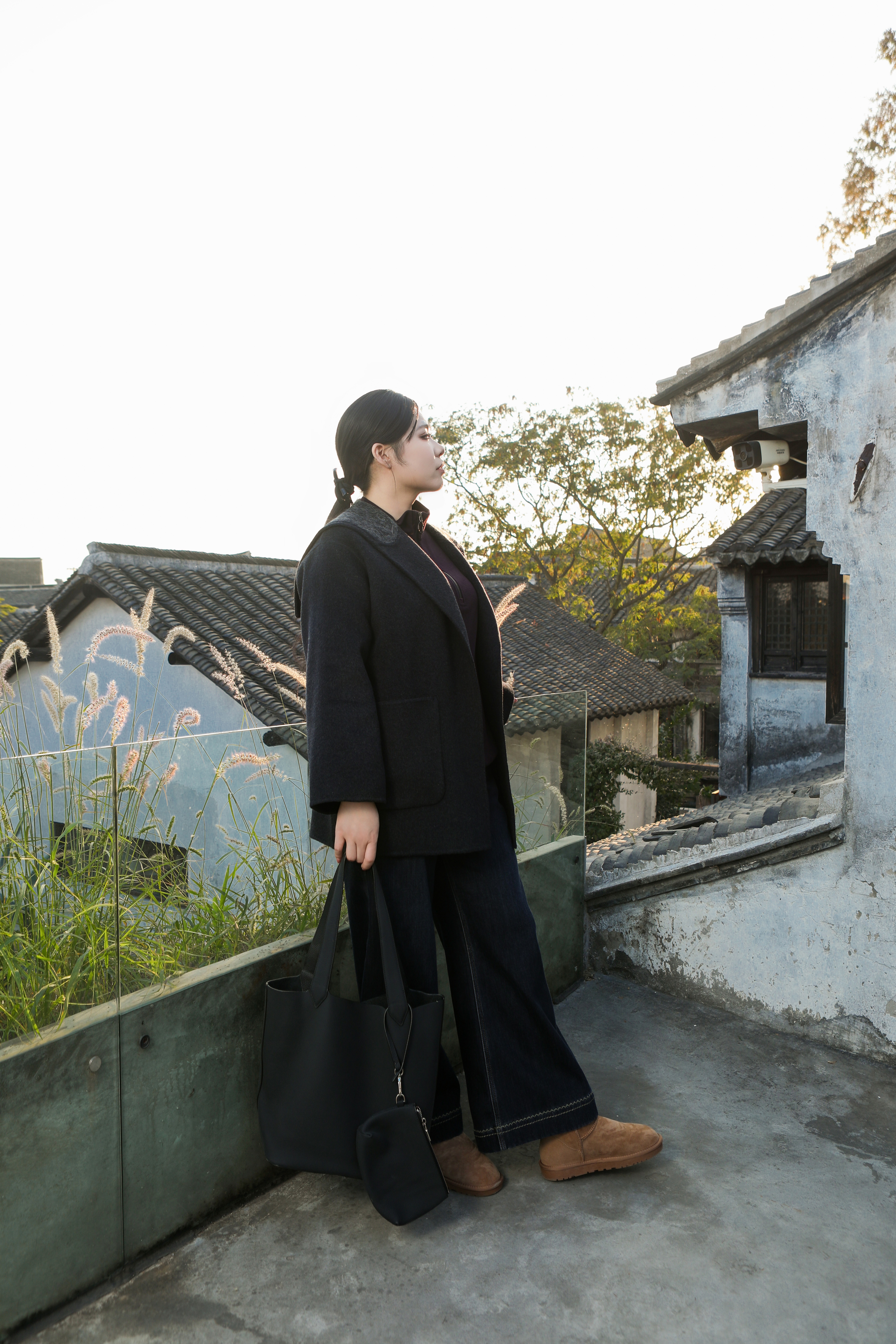 现货,秒拍秒发【绵羊毛双面呢大衣】宽松版,海军领披肩,经典高级黑灰色系,面料无弹,中长款,非常利落的秋冬大衣!面料:75.2%绵羊毛,14.6%聚酯纤维,8.1%莱赛尔,2.1%其他纤维;