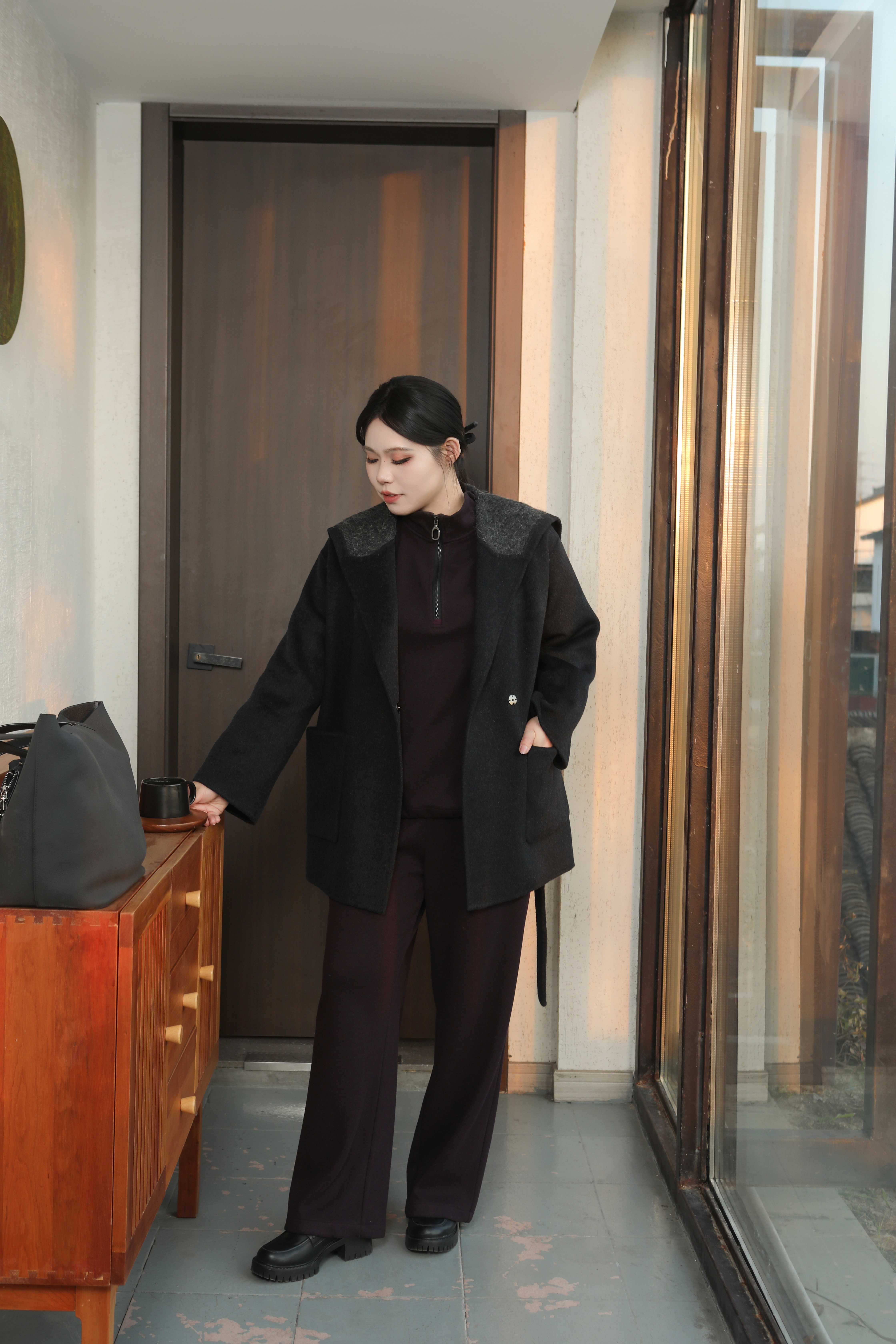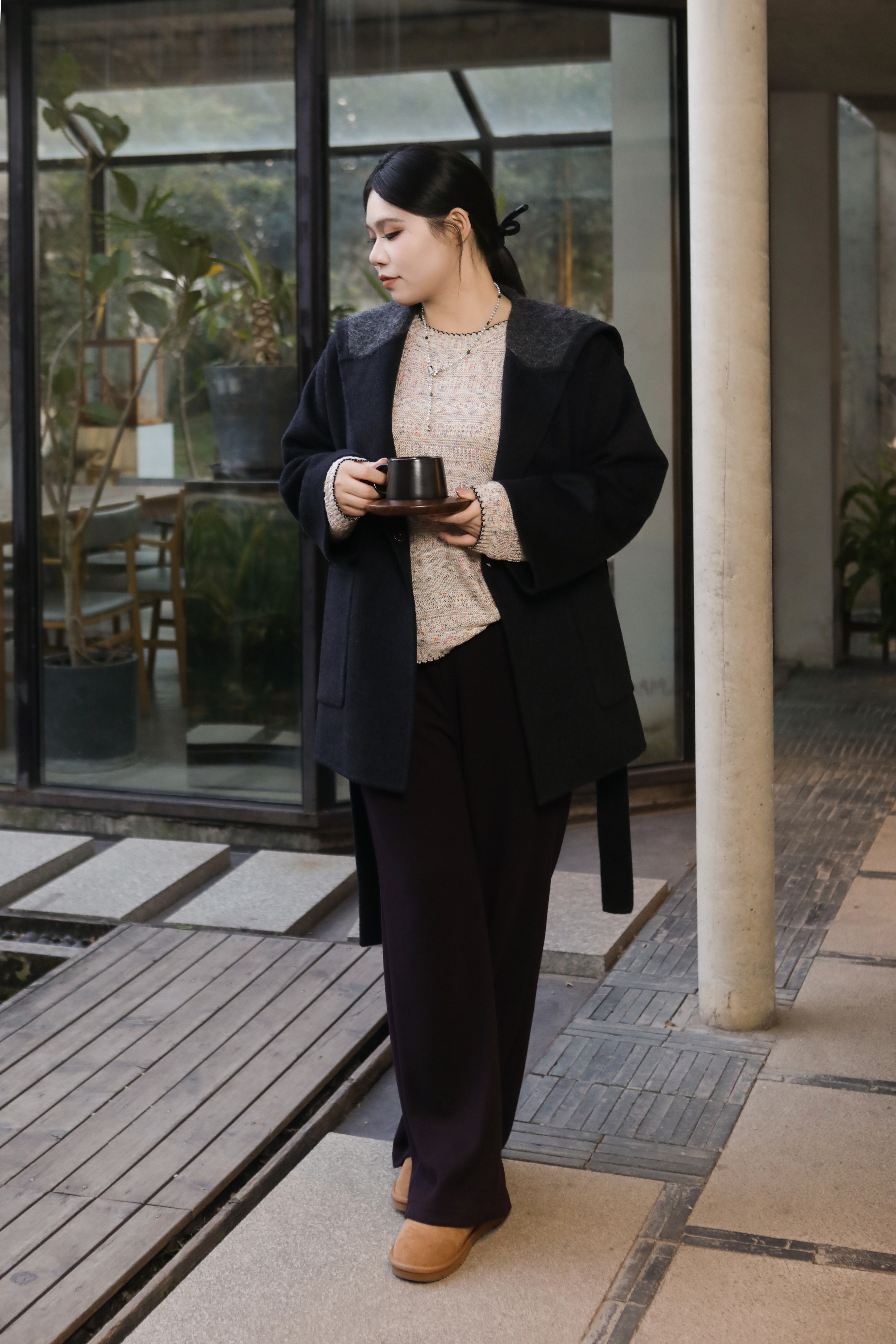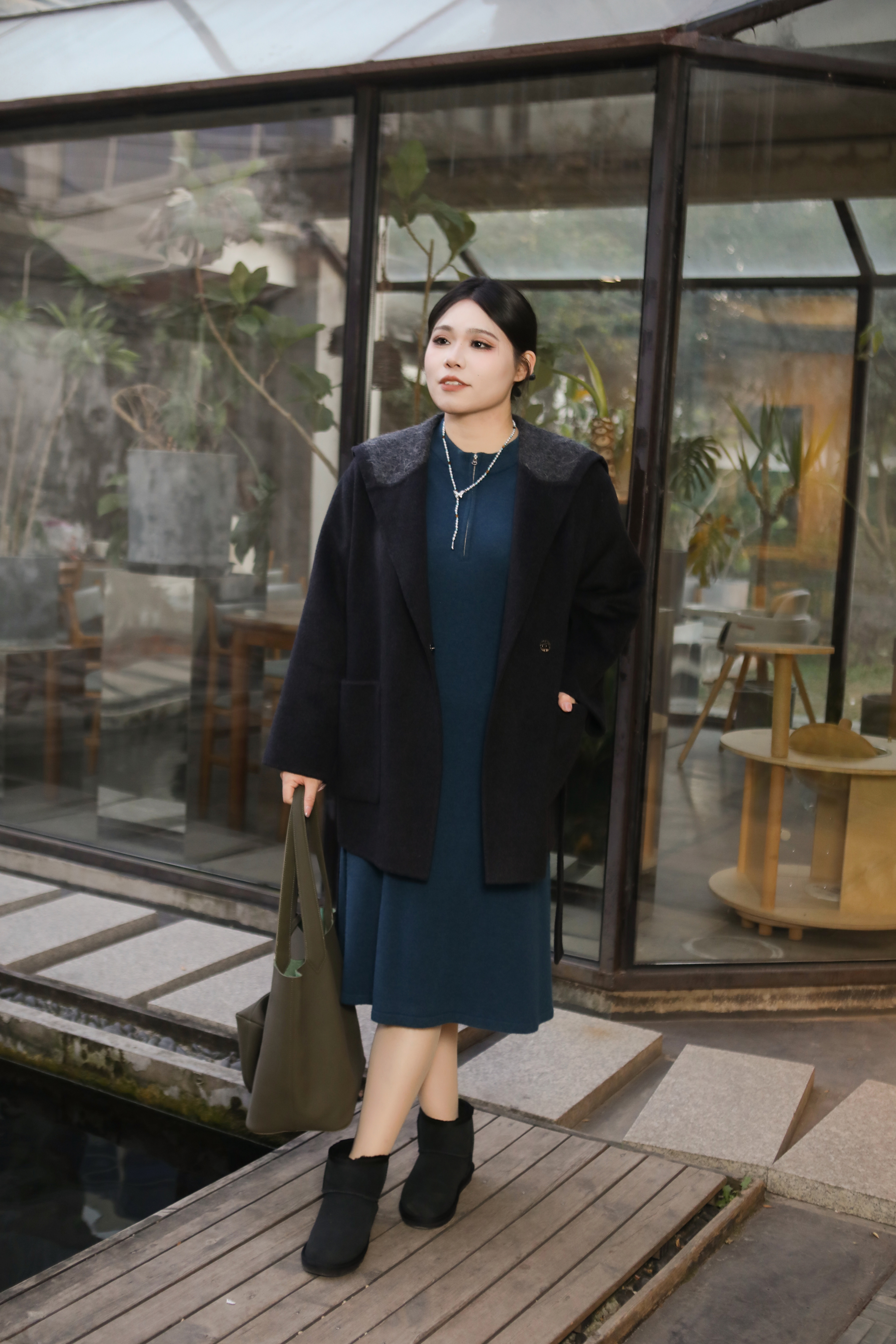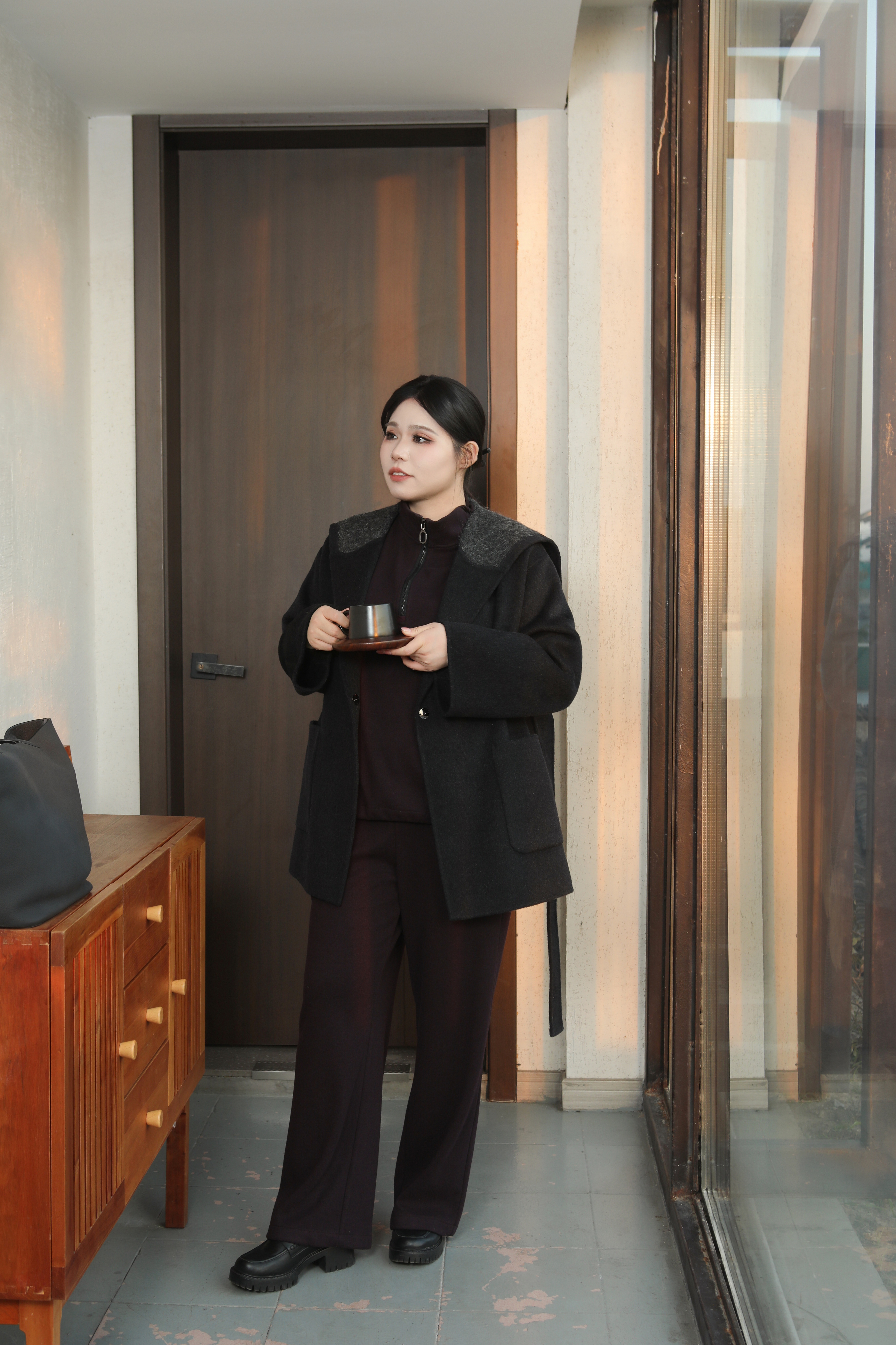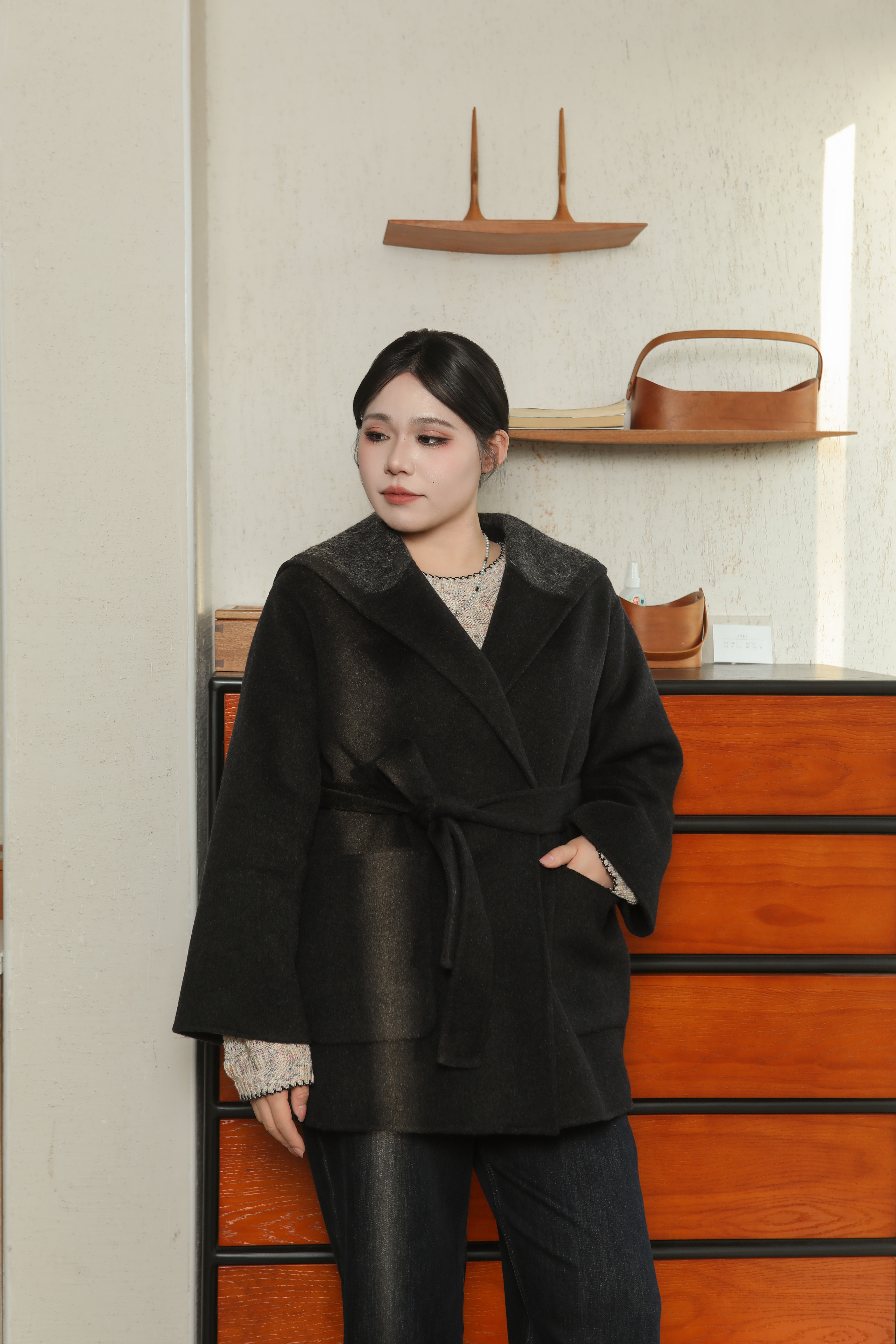 现货,秒拍秒发【绵羊毛双面呢大衣】宽松版,海军领披肩,经典高级黑灰色系,面料无弹,中长款,非常利落的秋冬大衣!面料:75.2%绵羊毛,14.6%聚酯纤维,8.1%莱赛尔,2.1%其他纤维;