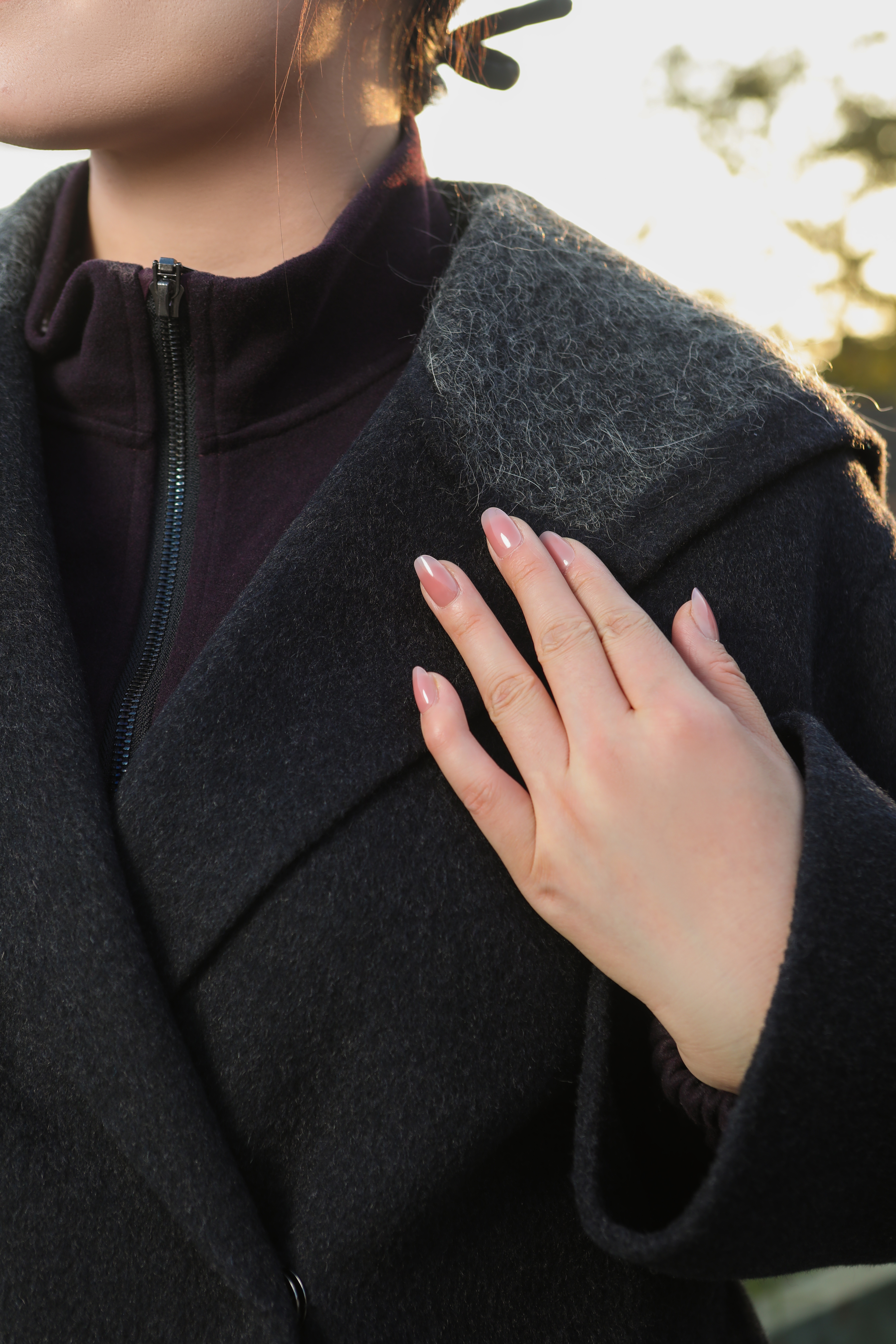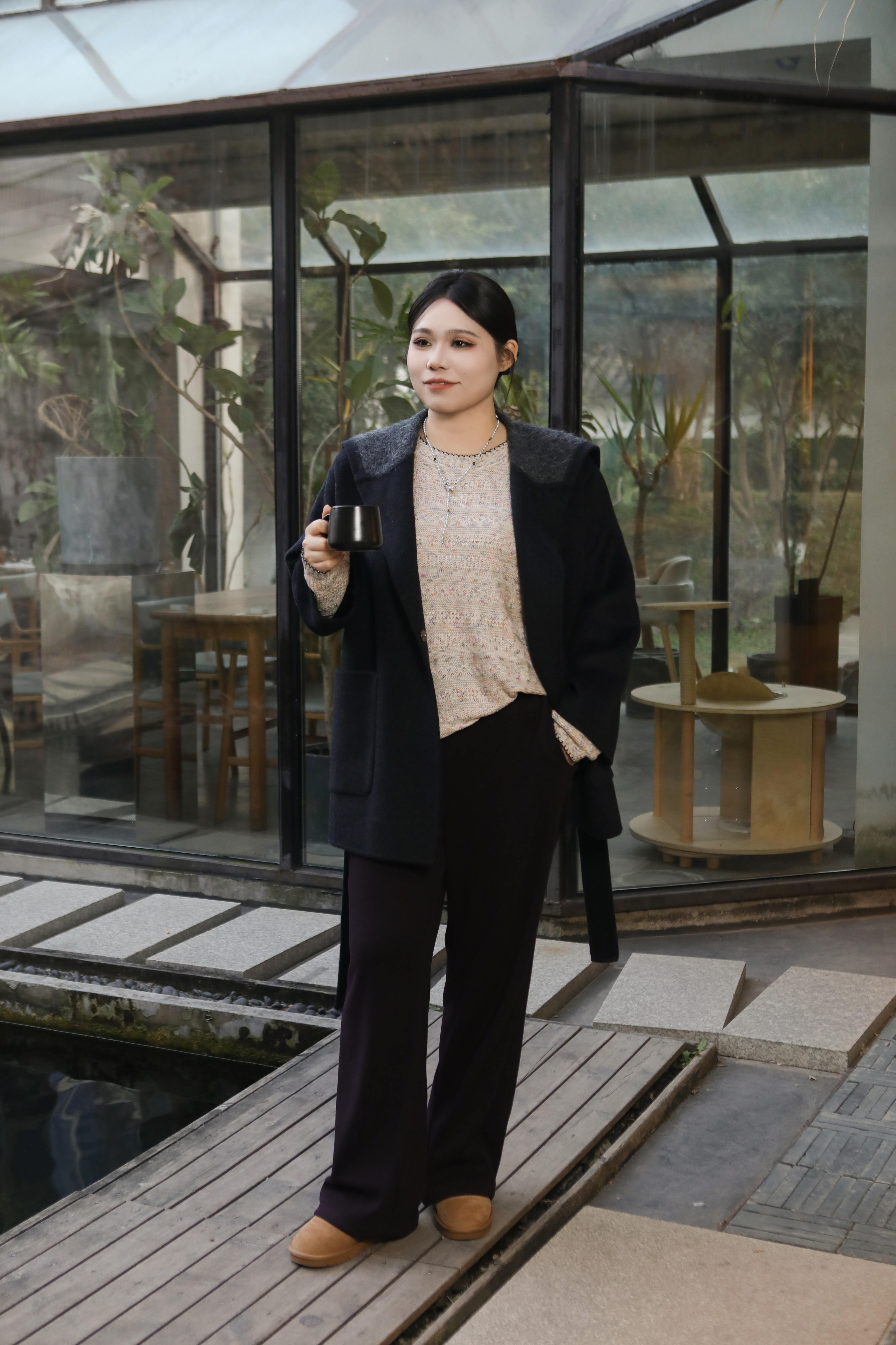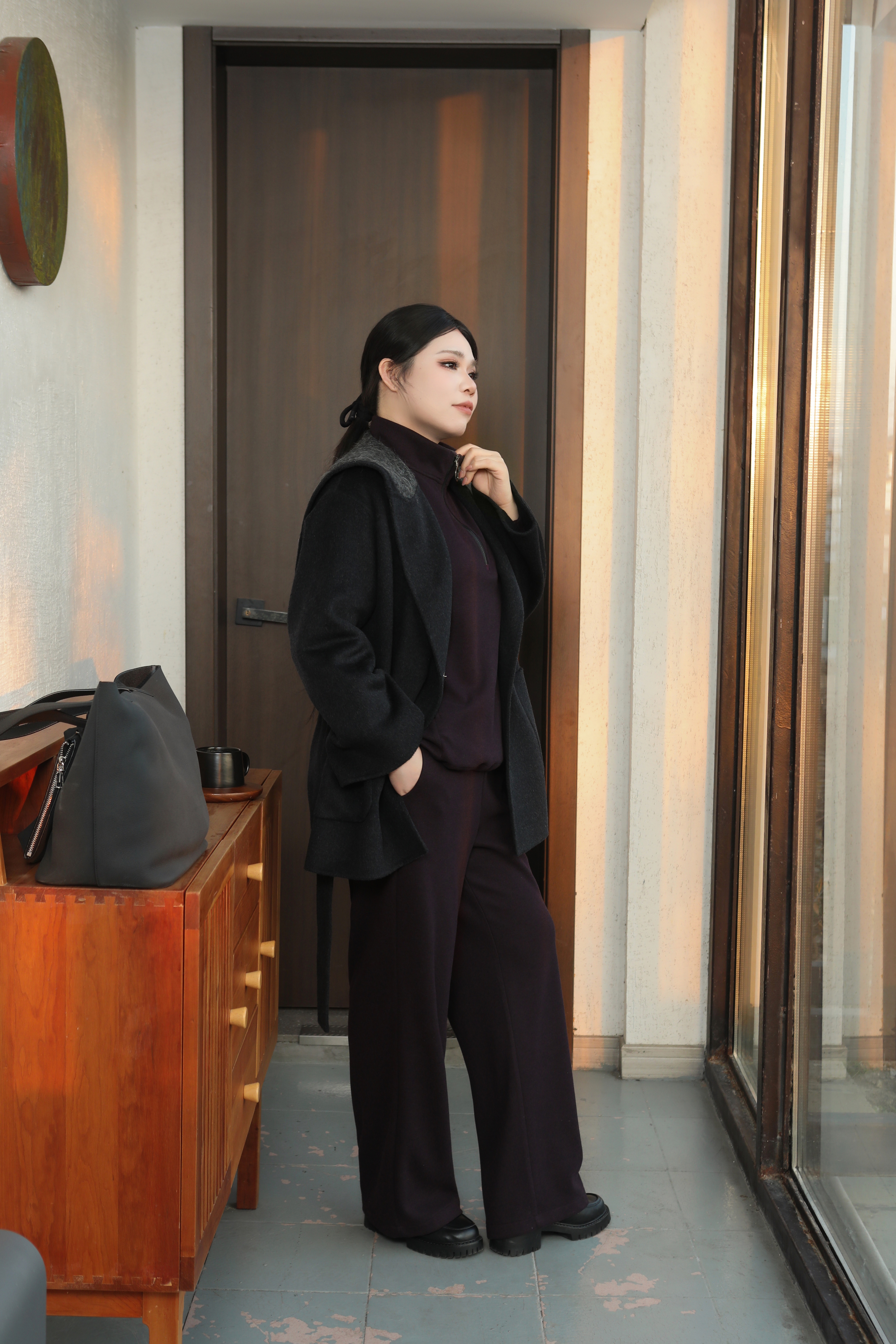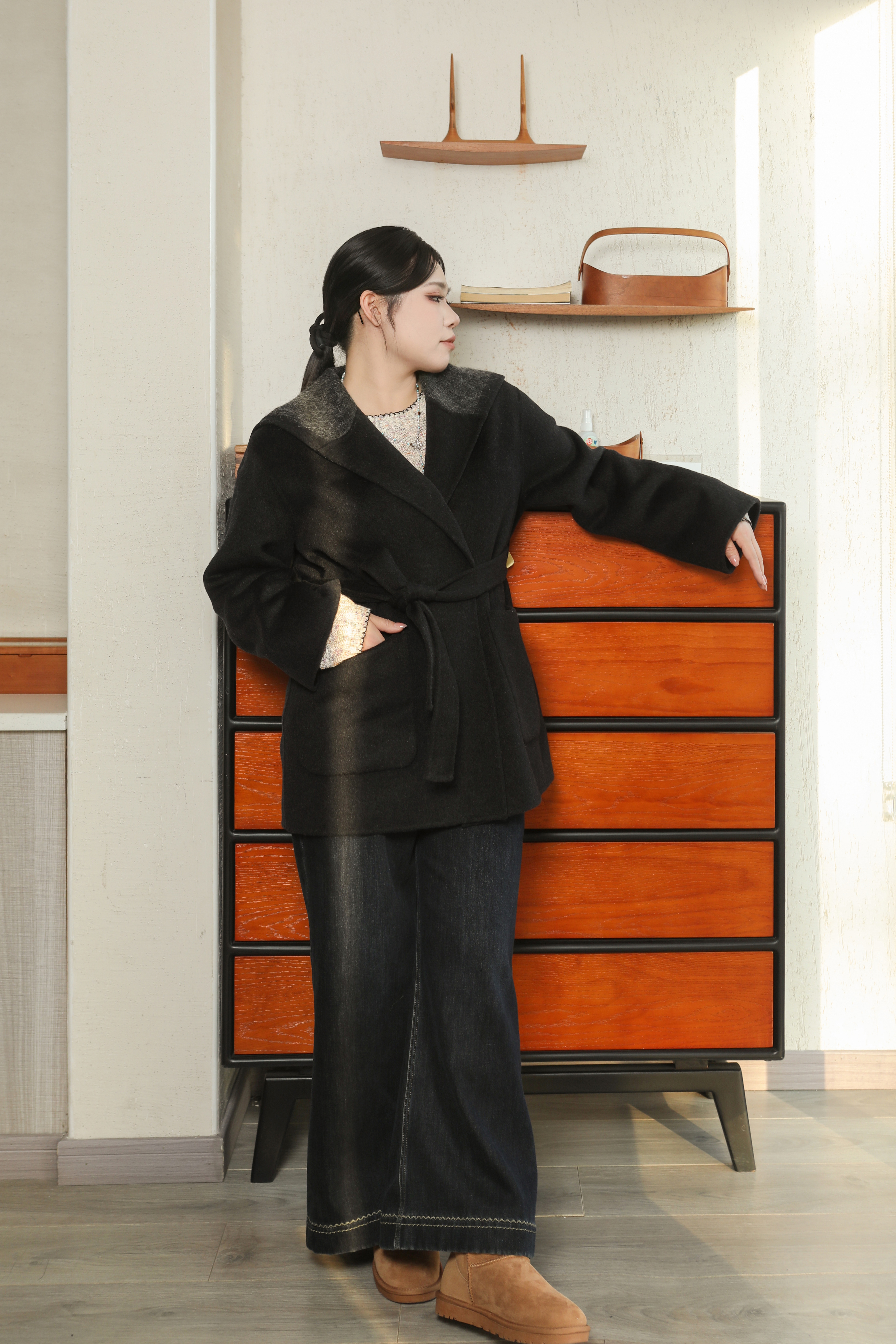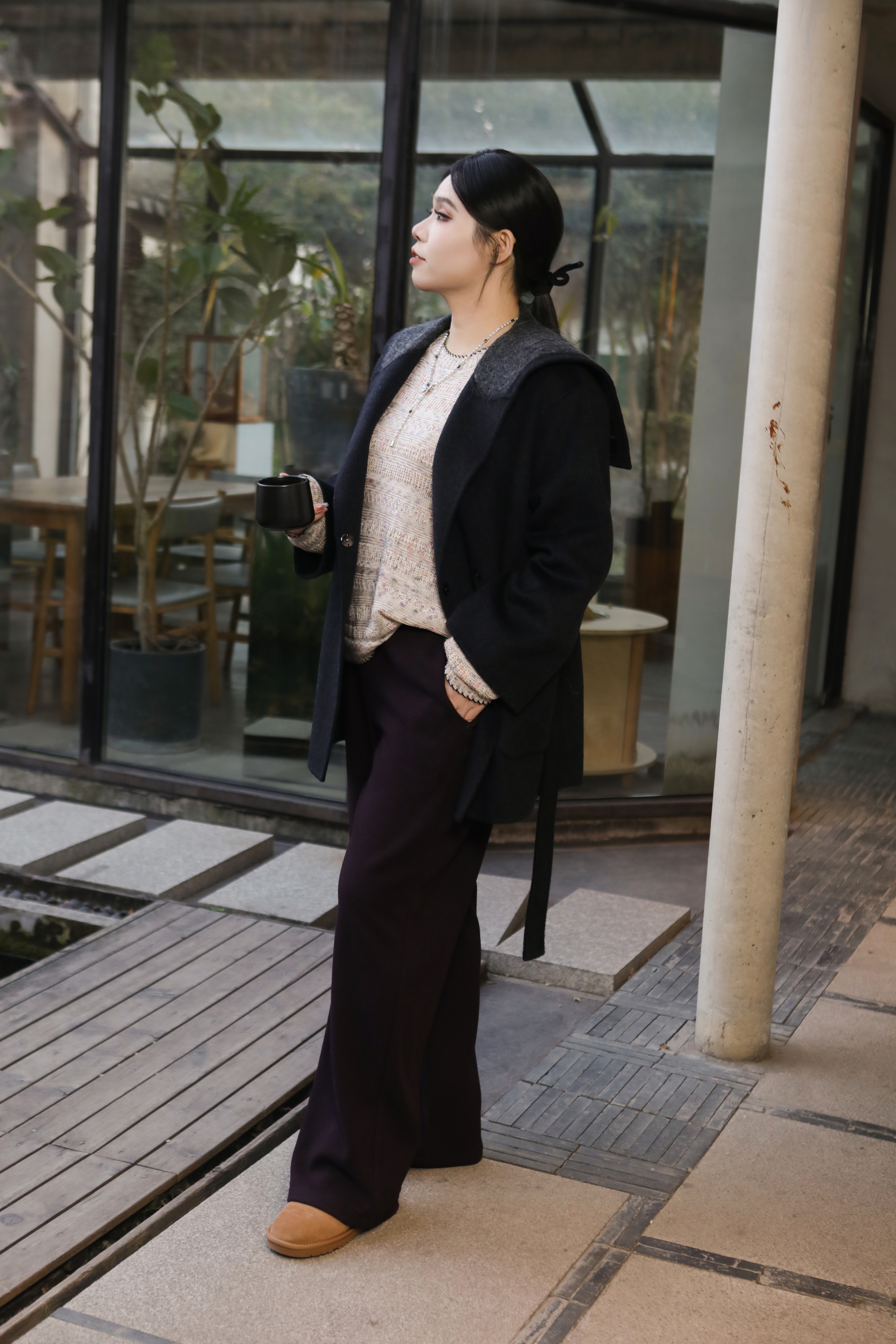 现货,秒拍秒发【绵羊毛双面呢大衣】宽松版,海军领披肩,经典高级黑灰色系,面料无弹,中长款,非常利落的秋冬大衣!面料:75.2%绵羊毛,14.6%聚酯纤维,8.1%莱赛尔,2.1%其他纤维;