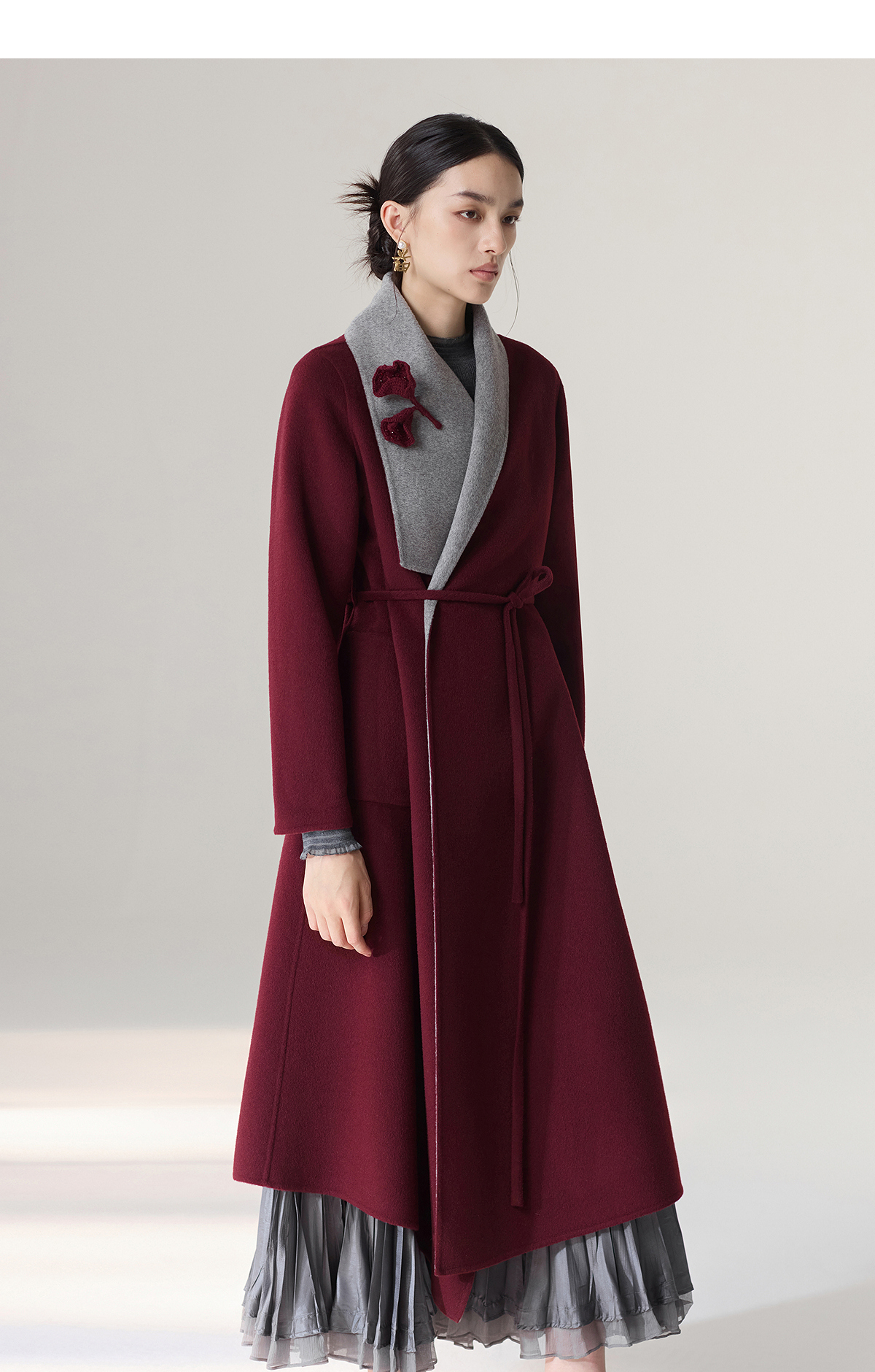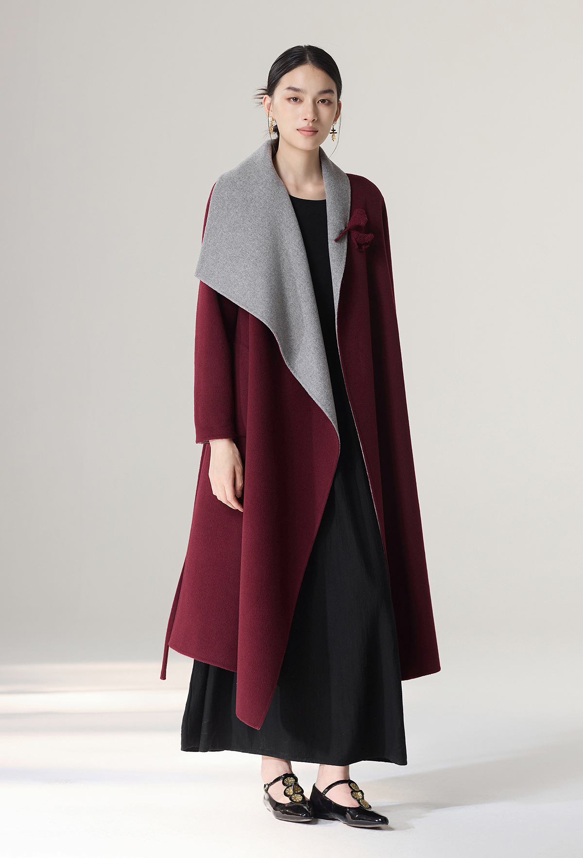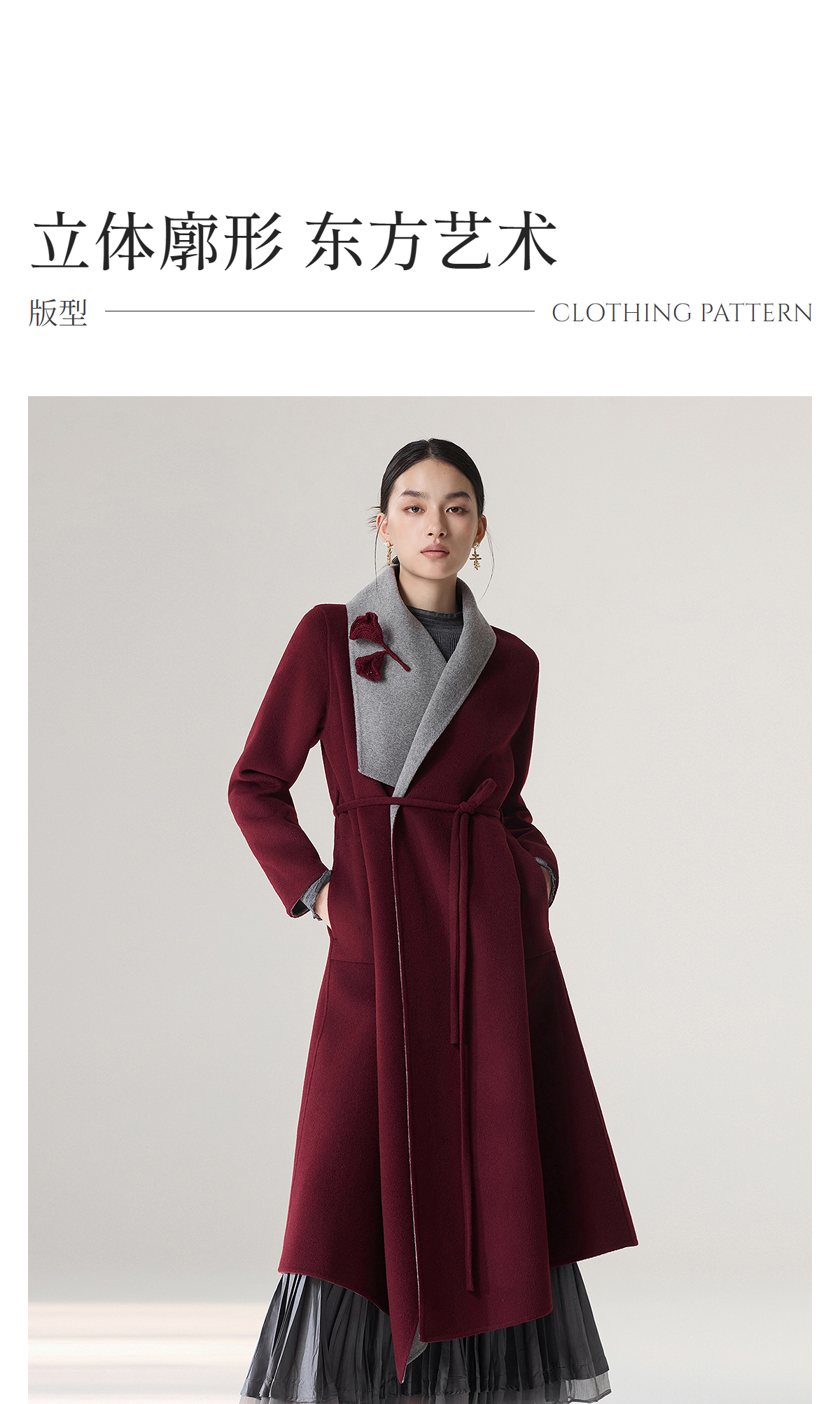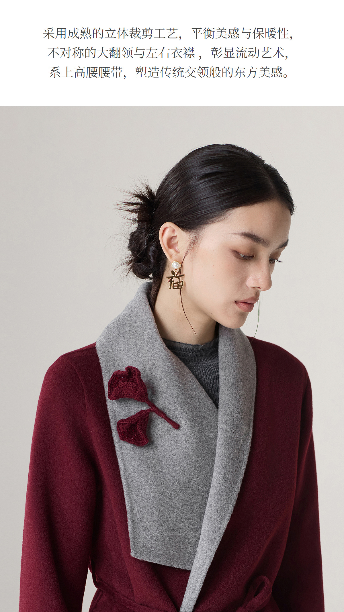 【林栖设计小店】绵羊毛双面呢外套手钩花翻领气质长款2025秋冬新款大衣女1954014